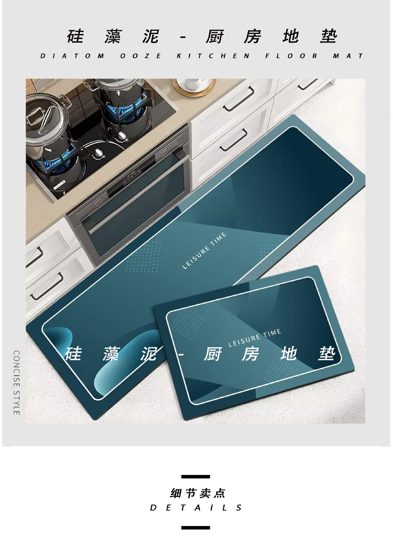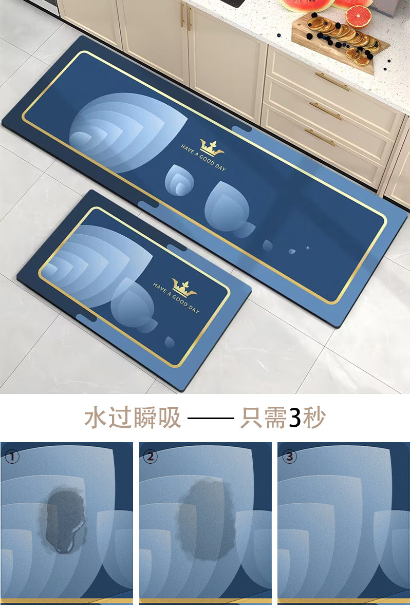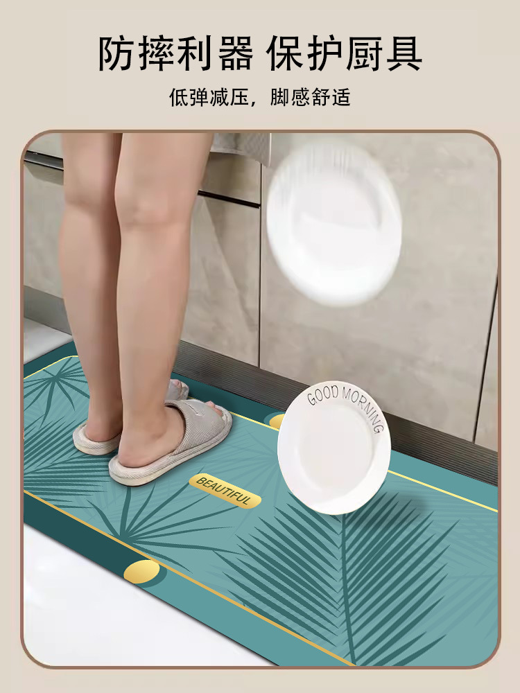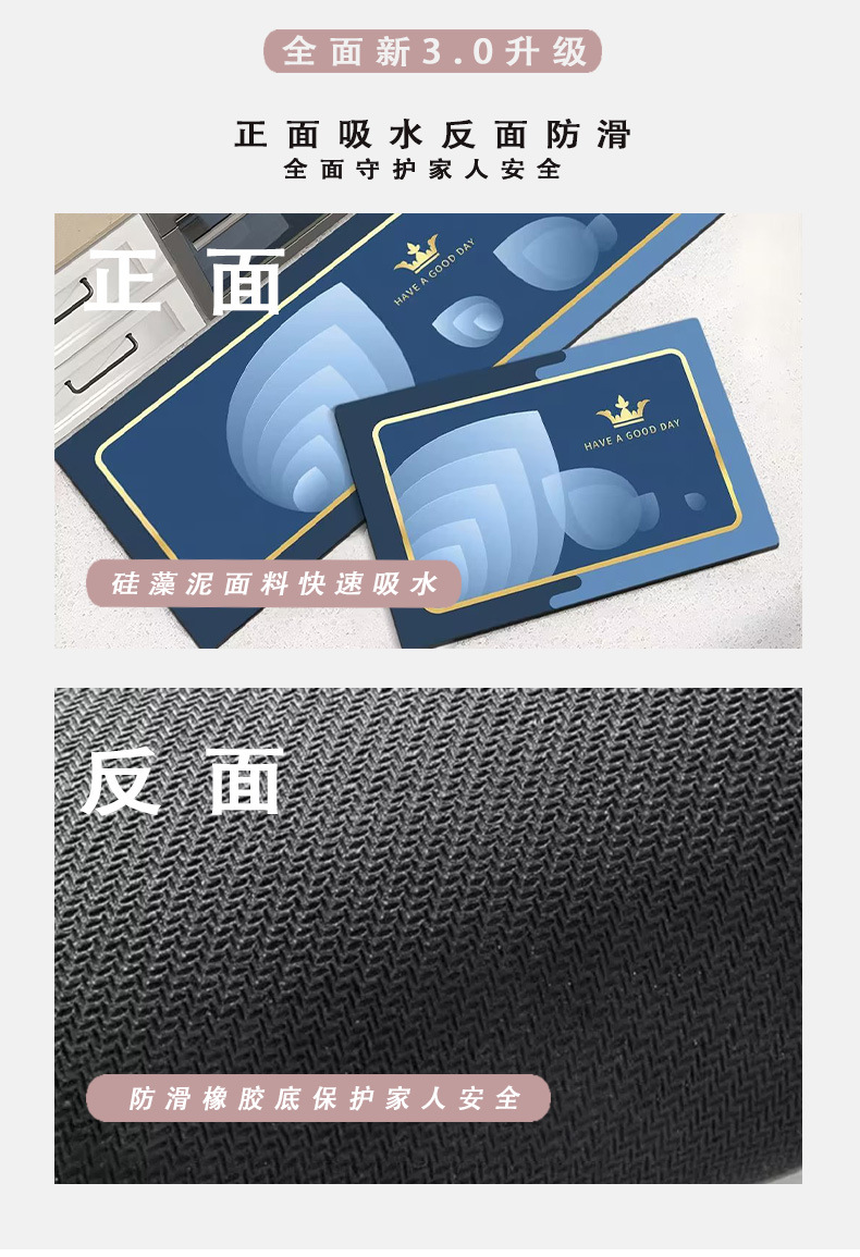 厨房地垫防滑防油可擦免洗长方形硅藻泥吸水脚垫耐脏减震橡胶地垫