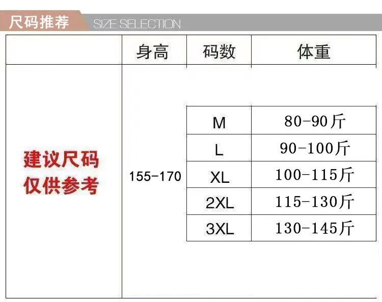 | 3XL(建议130-145斤) | USD $2.34 | 999999 piece available |