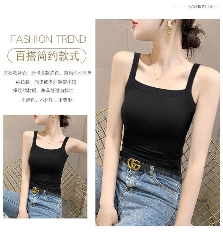 冰丝螺纹吊带女春夏秋季防走光内搭修身外穿打底背心无袖上衣薄款