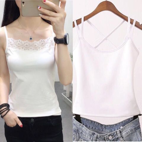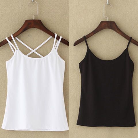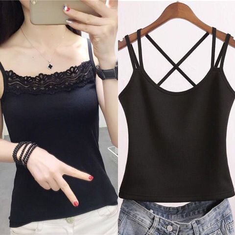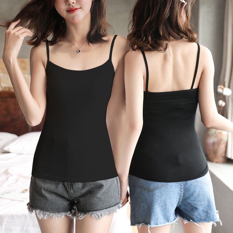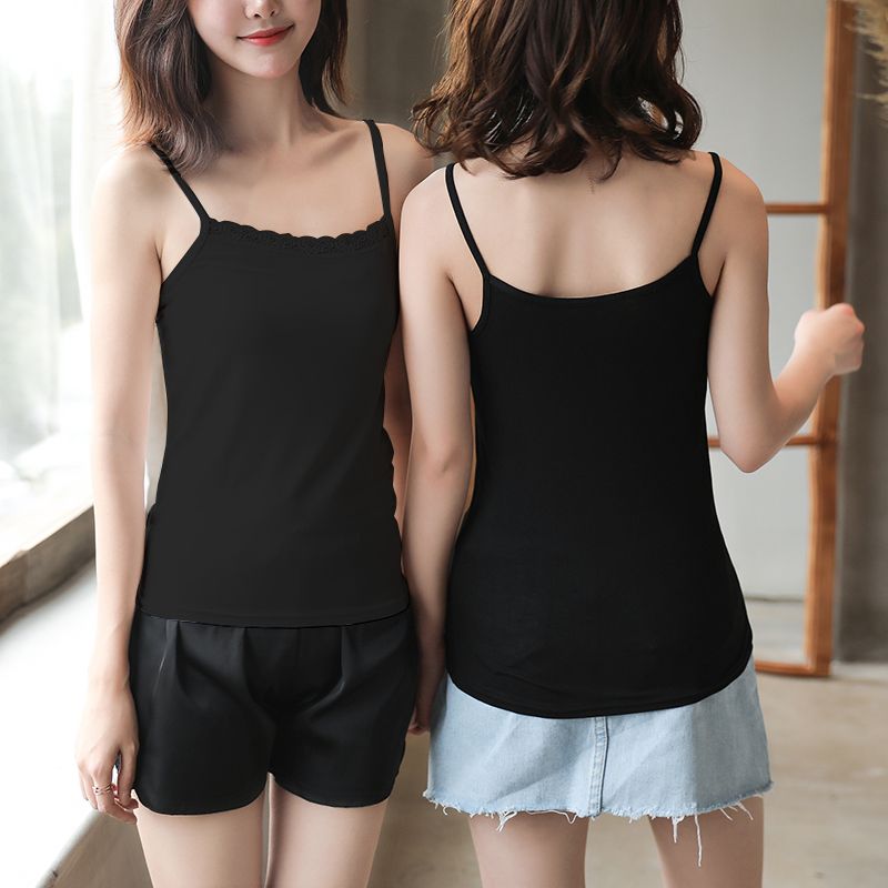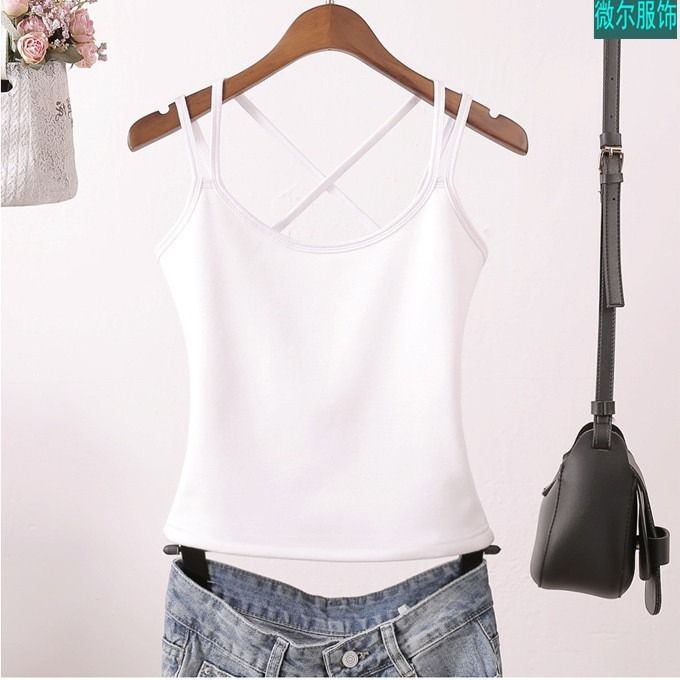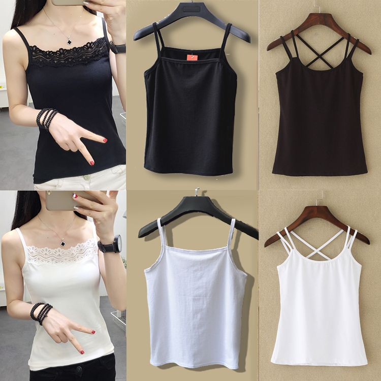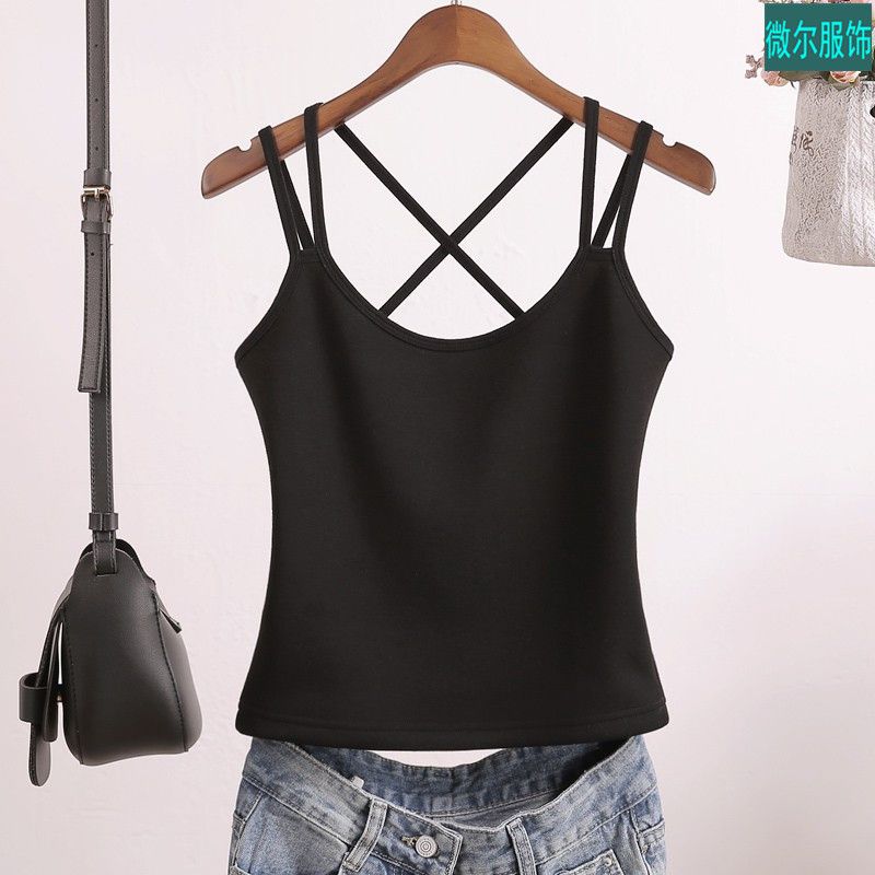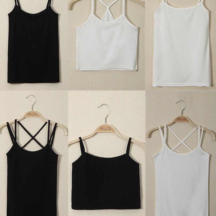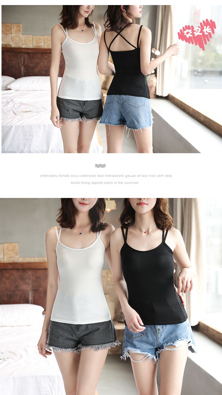 吊带背心女新款春夏秋冬大码美背性感交叉带打底吊带内外穿黑白色