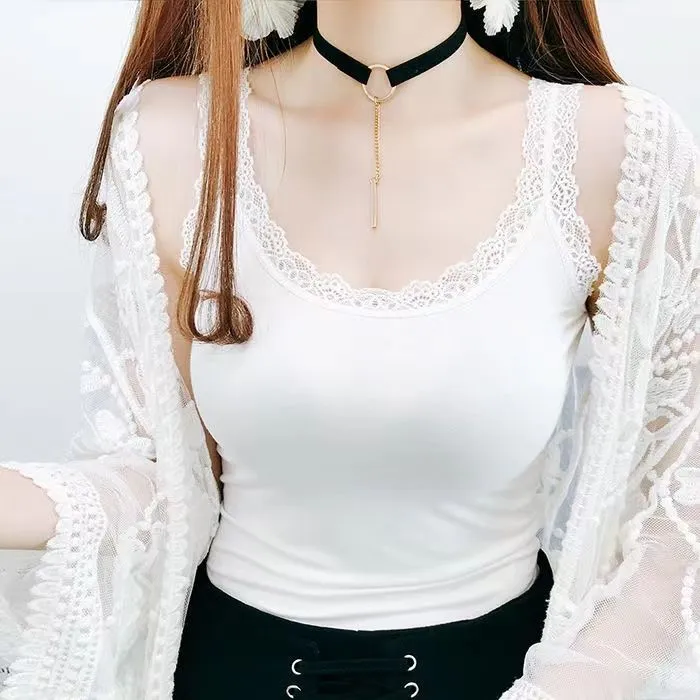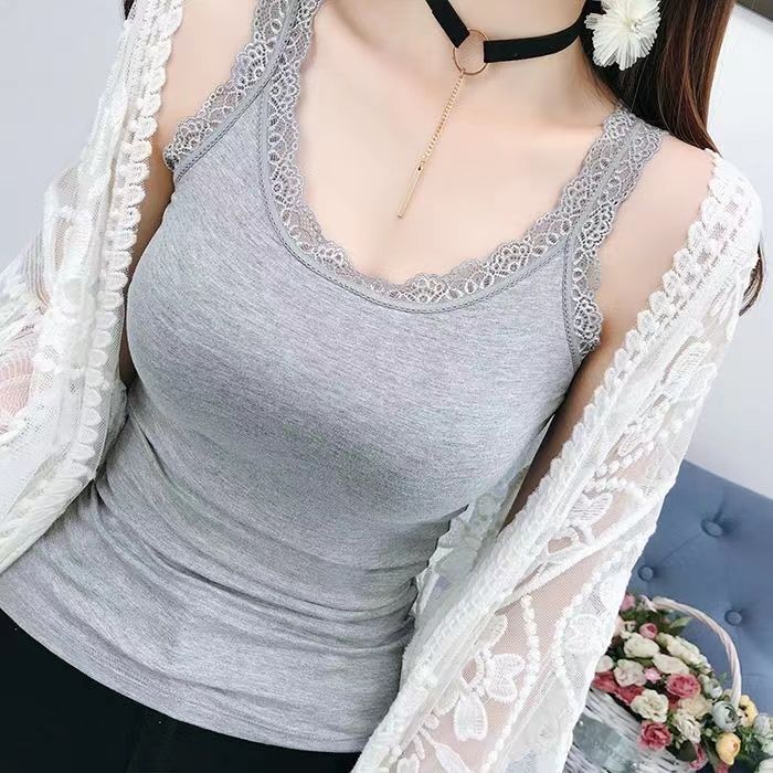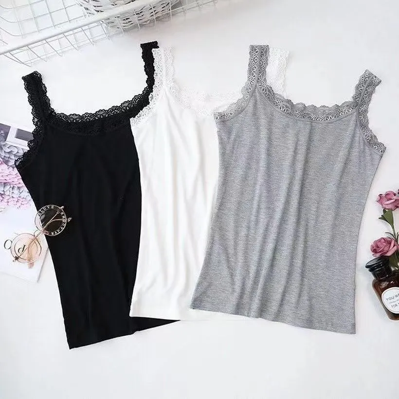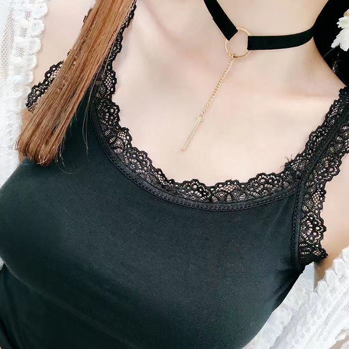 莫代尔棉蕾丝边吊带背心女内衣夏季韩版百搭薄款无袖大码打底上衣