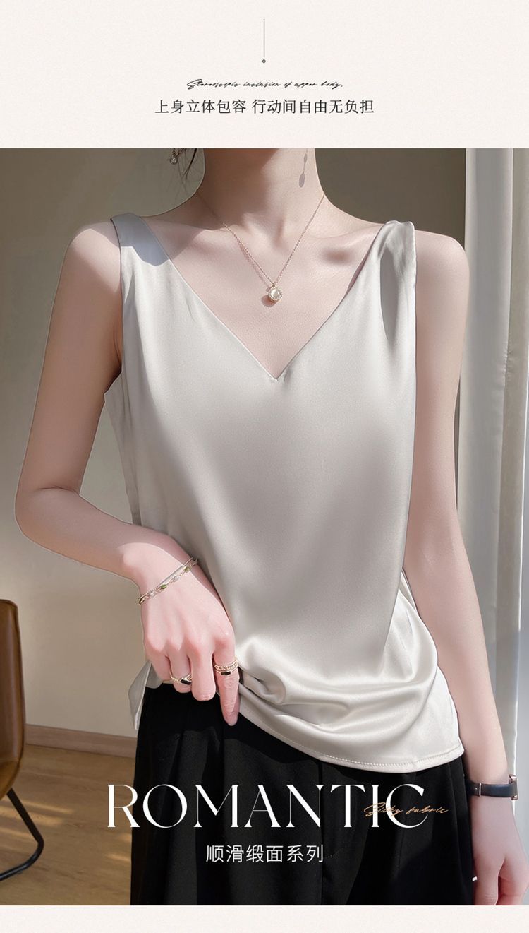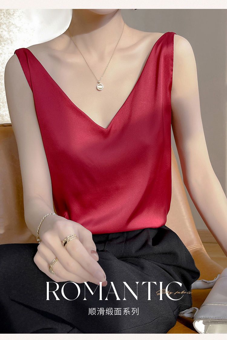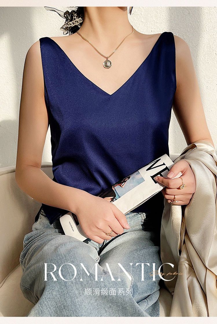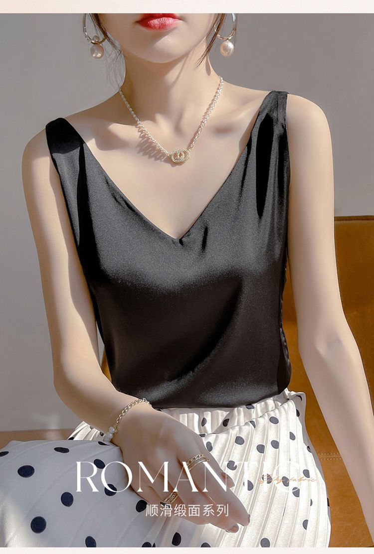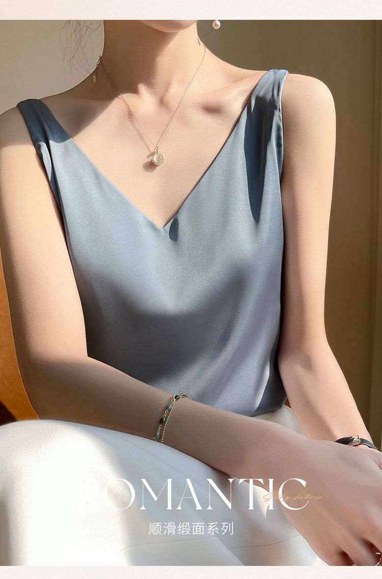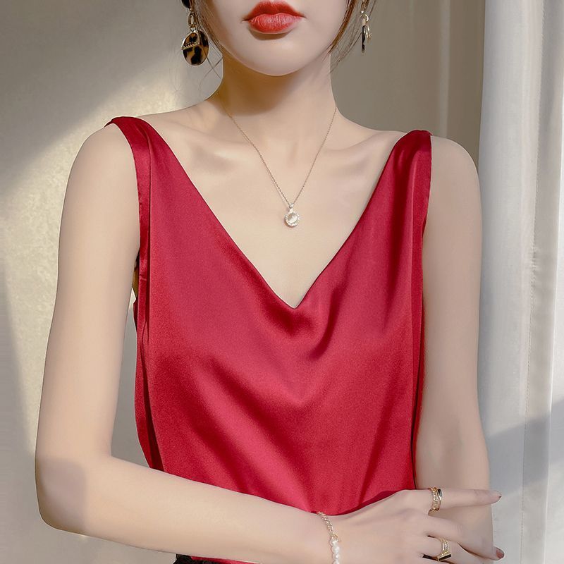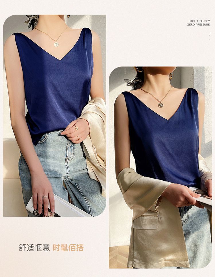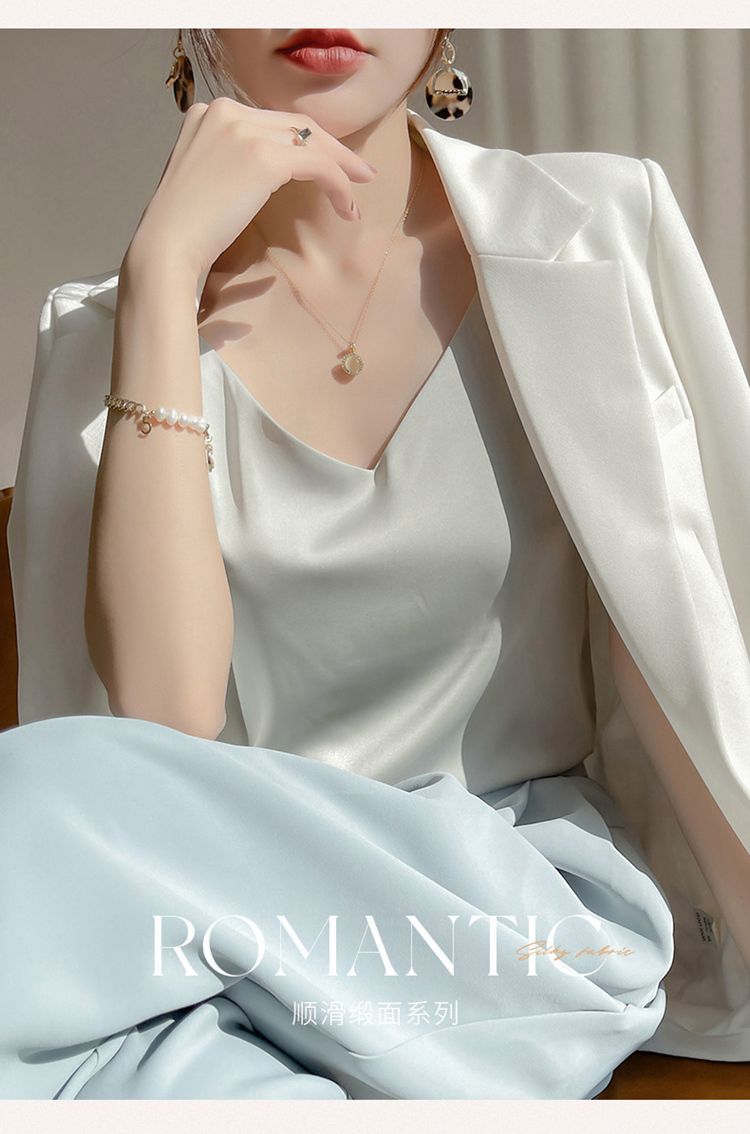 法式真丝吊带背心女内搭打底配西装桑蚕丝绸缎面美背外穿性感无袖