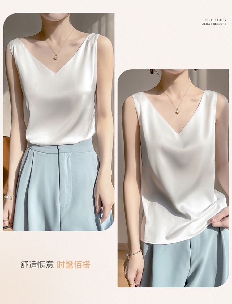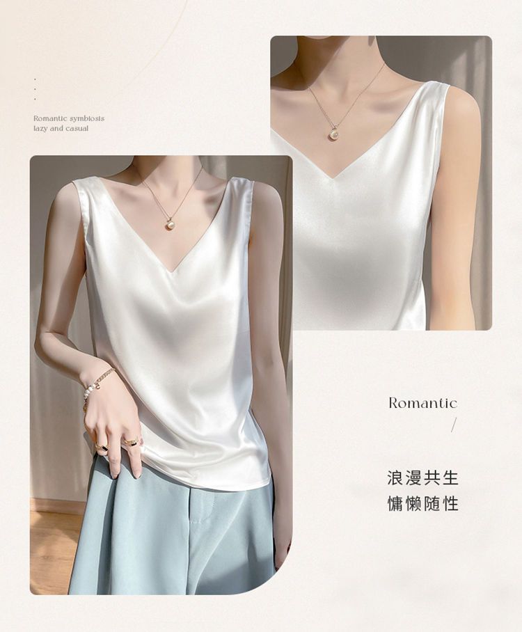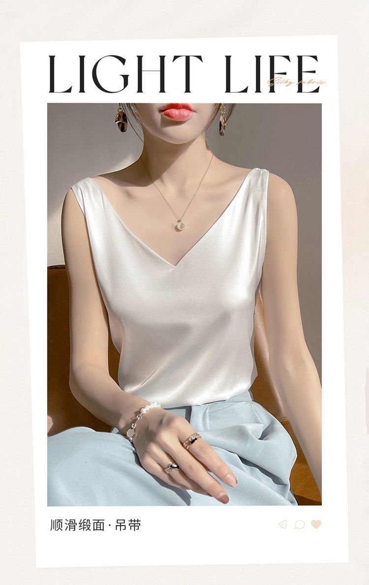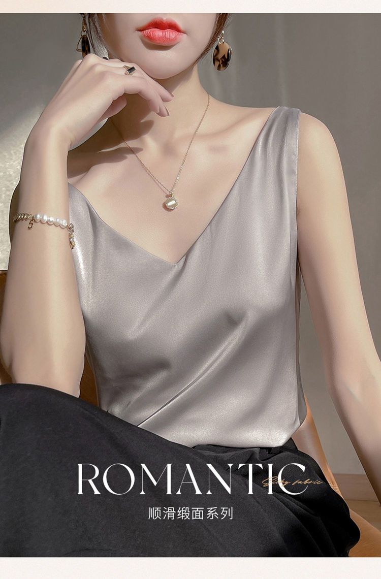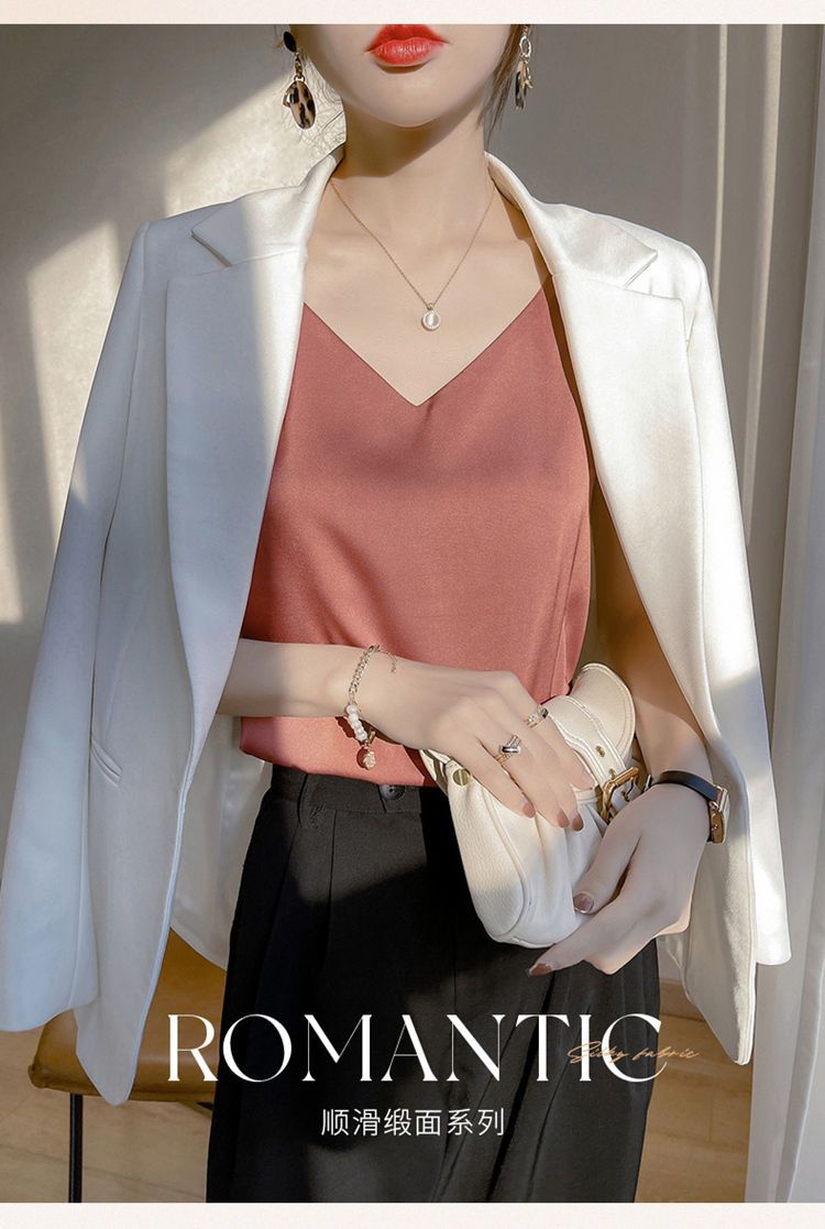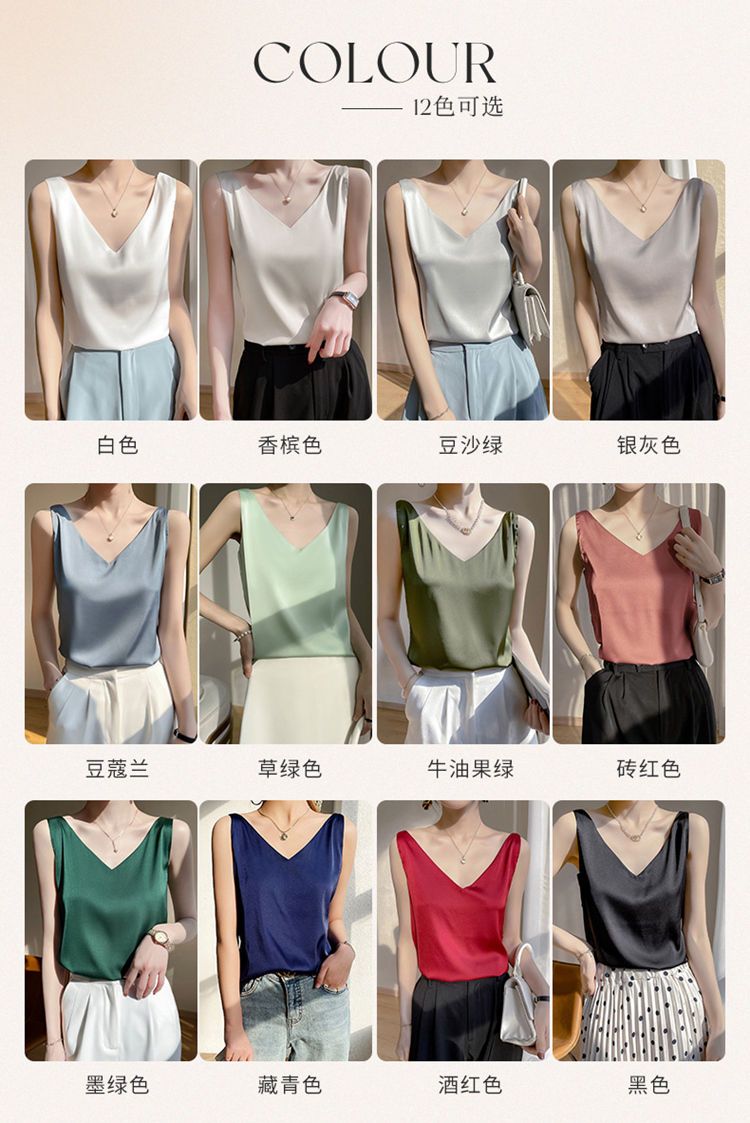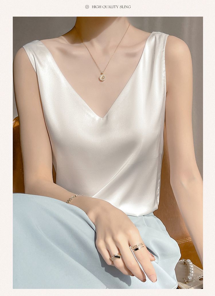法式真丝吊带背心女内搭打底配西装桑蚕丝绸缎面美背外穿性感无袖