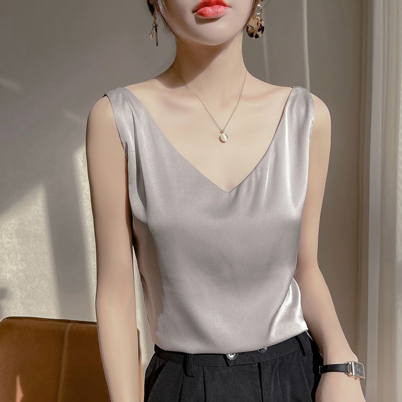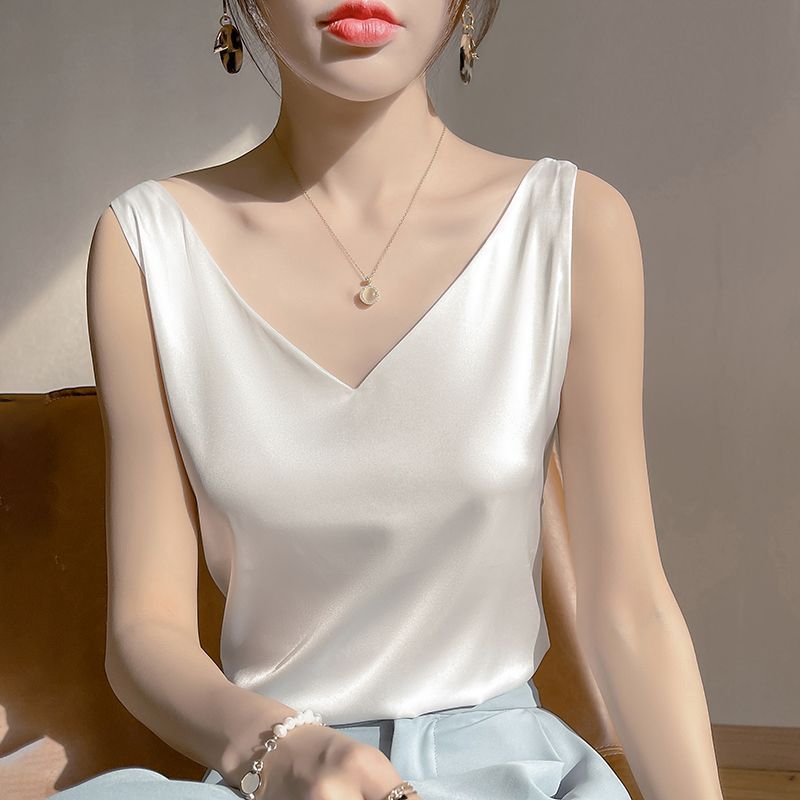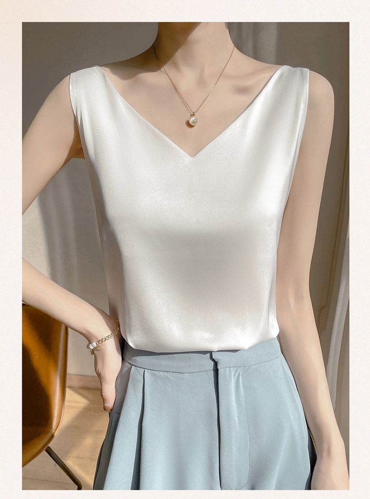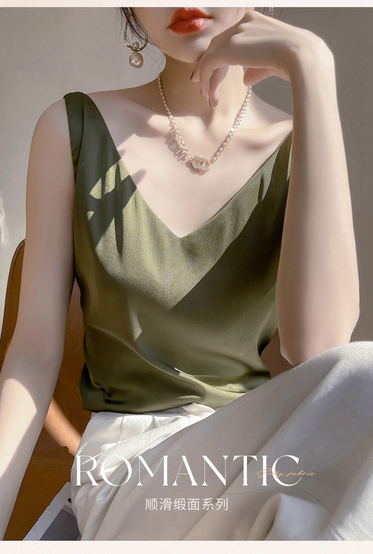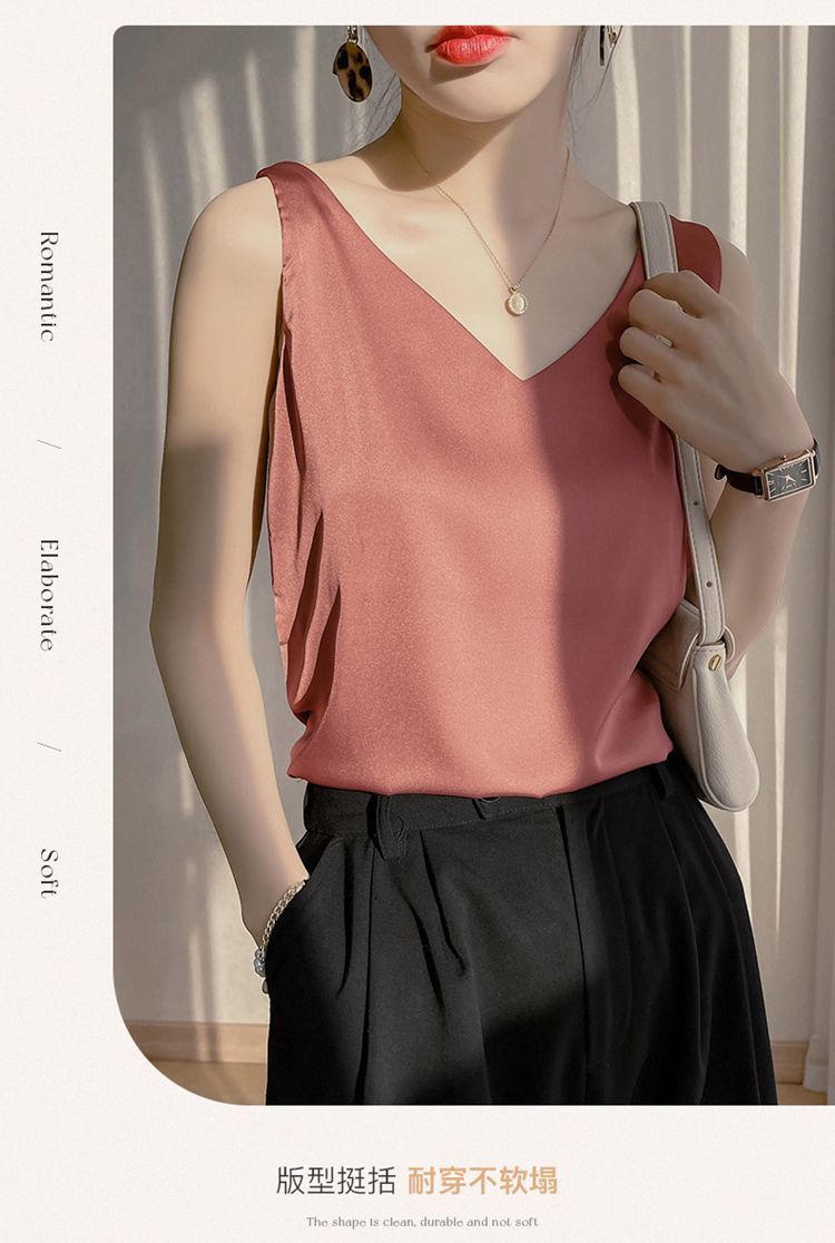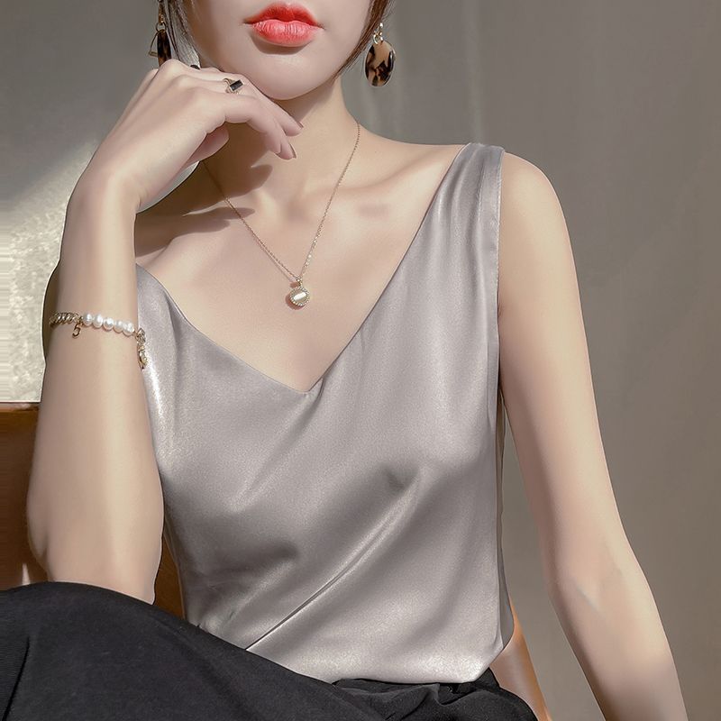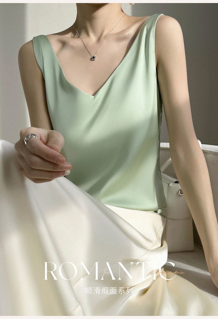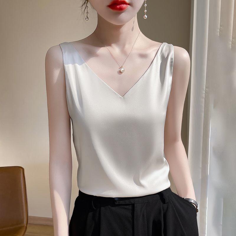 法式真丝吊带背心女内搭打底配西装桑蚕丝绸缎面美背外穿性感无袖