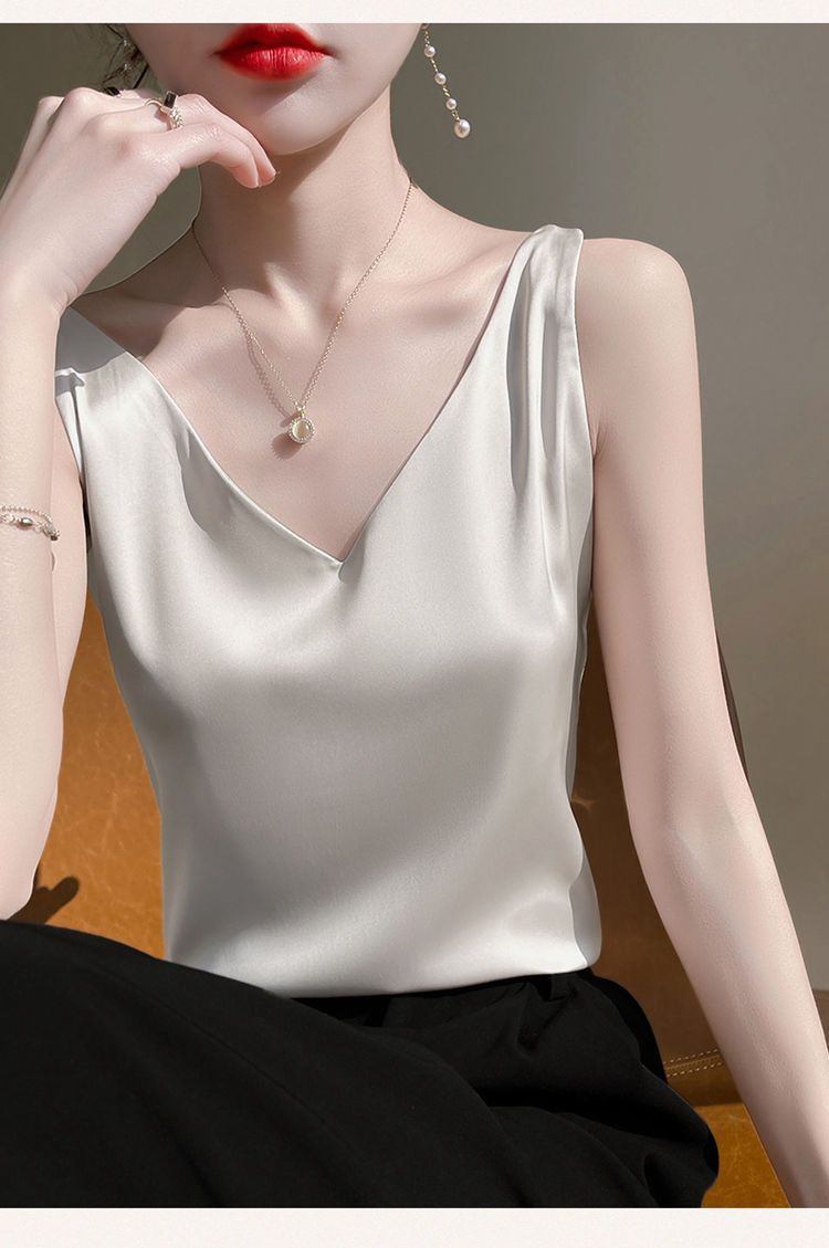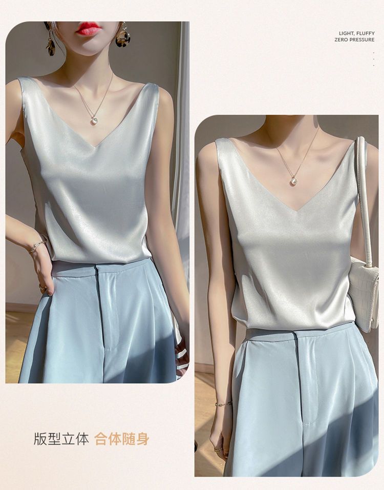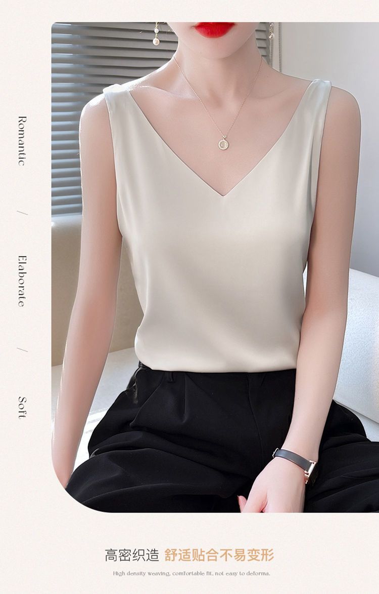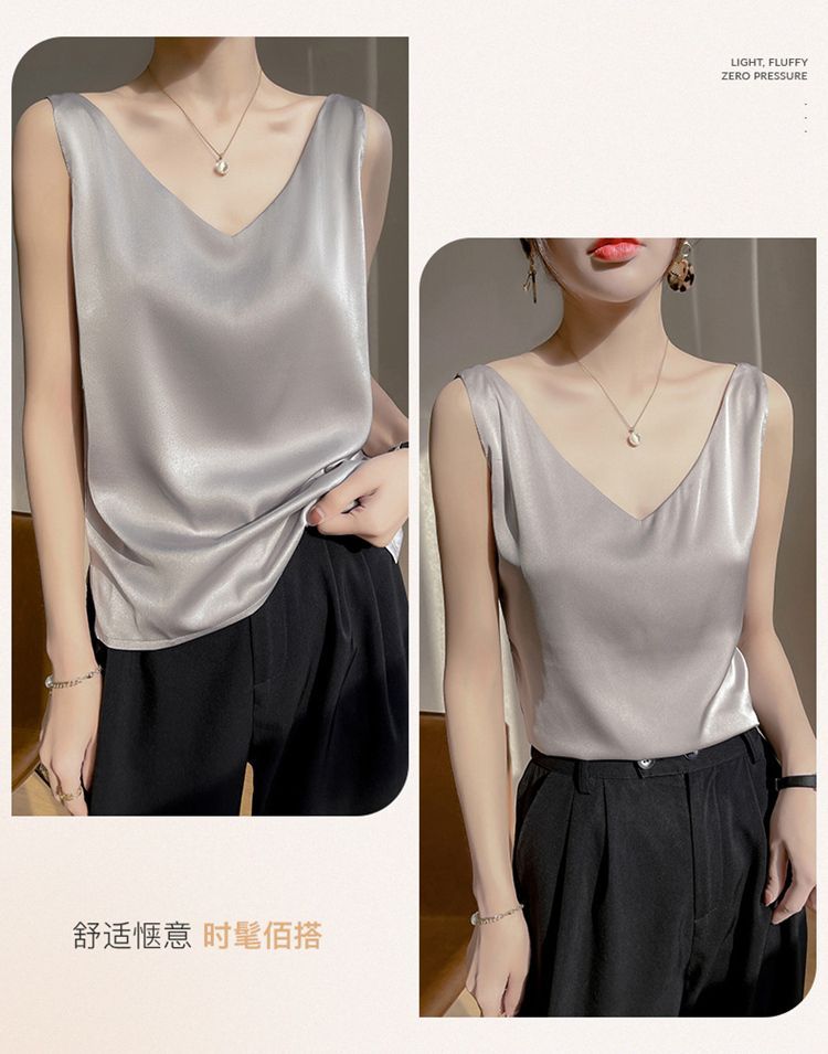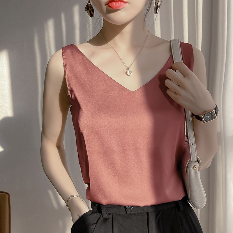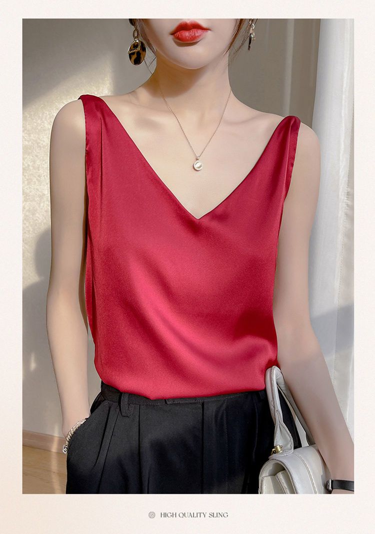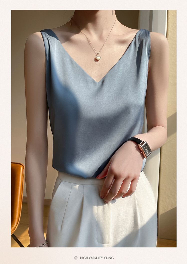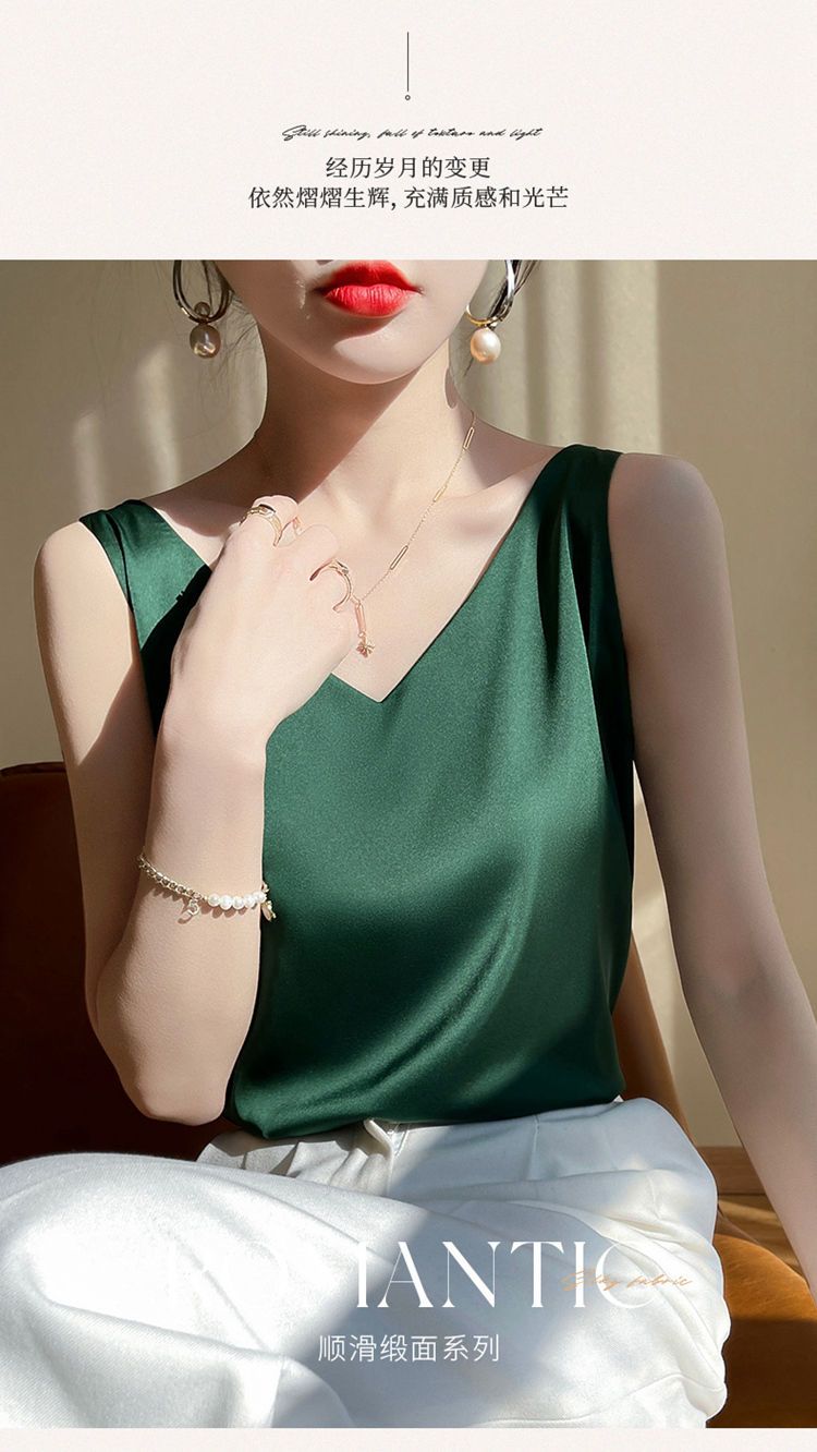 法式真丝吊带背心女内搭打底配西装桑蚕丝绸缎面美背外穿性感无袖