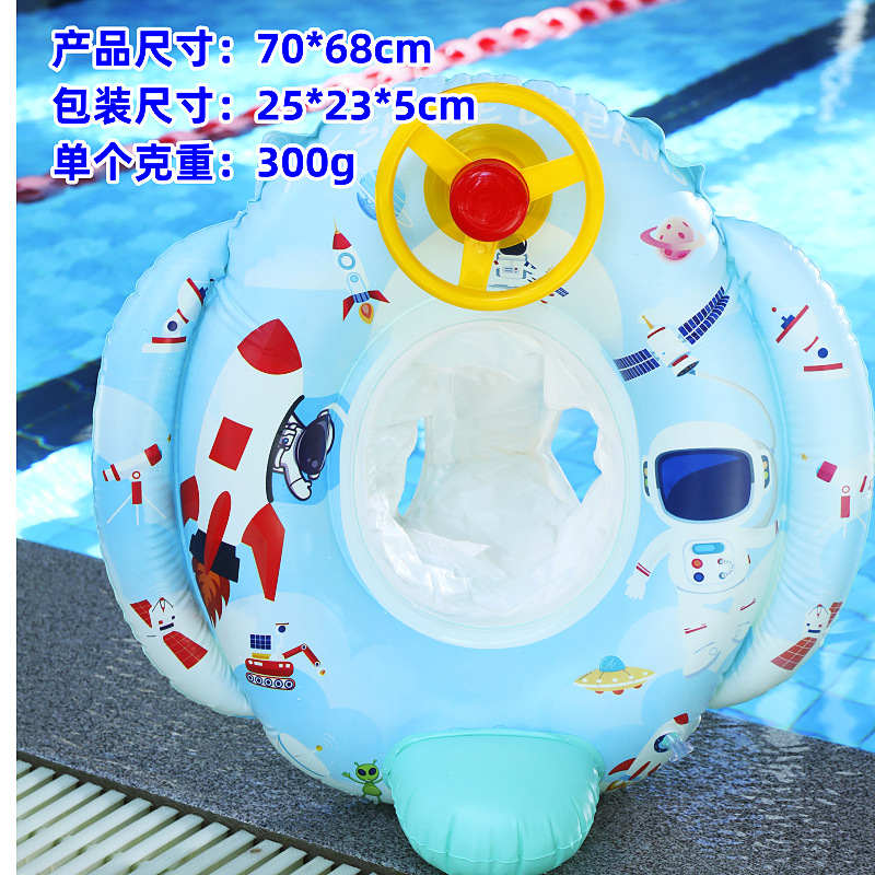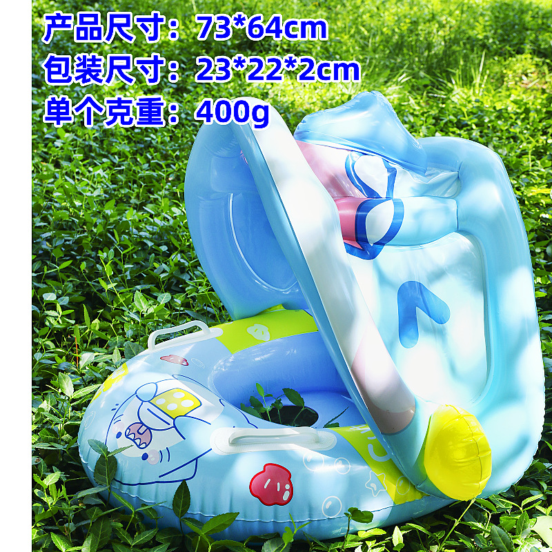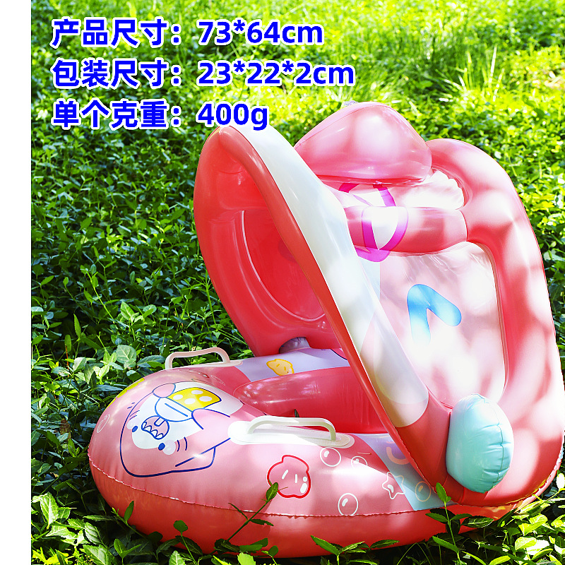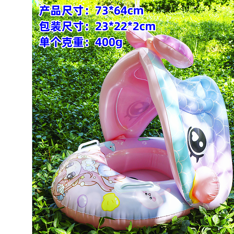 带蓬美人鱼艇 儿童戏水游泳座圈 把手款粉色鱼鳞跨境遮阳蓬游泳圈