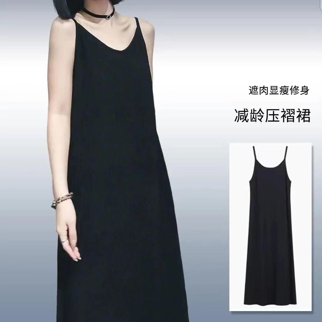 大码吊带连衣裙新款打底背心显瘦夏季长裙宽松无袖中长款吊带裙秋
