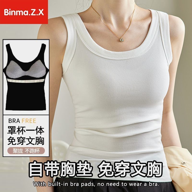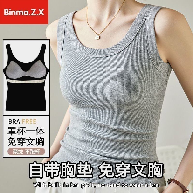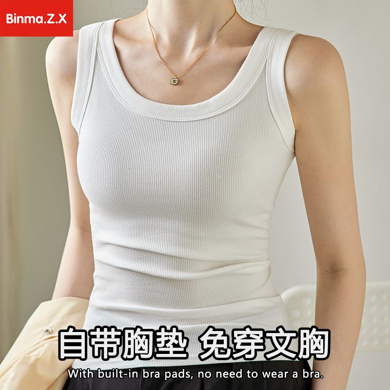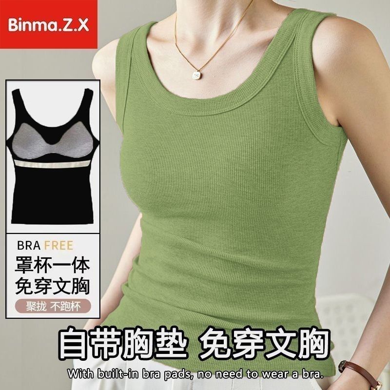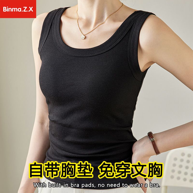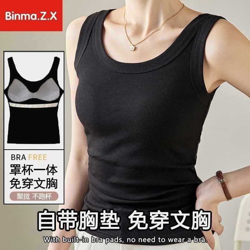 宾玛在线免穿文胸宽肩带背心女夏螺纹吊带加胸垫内搭打底无袖上衣