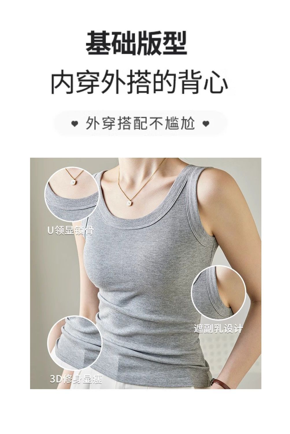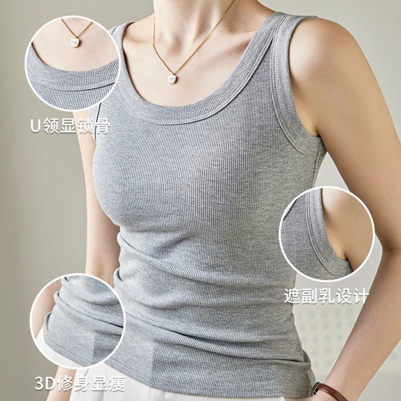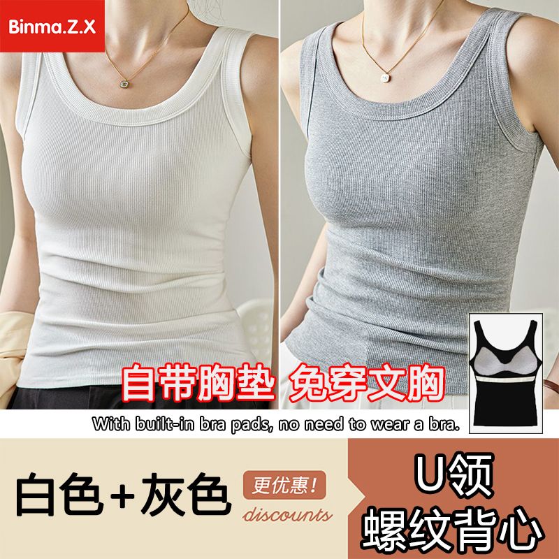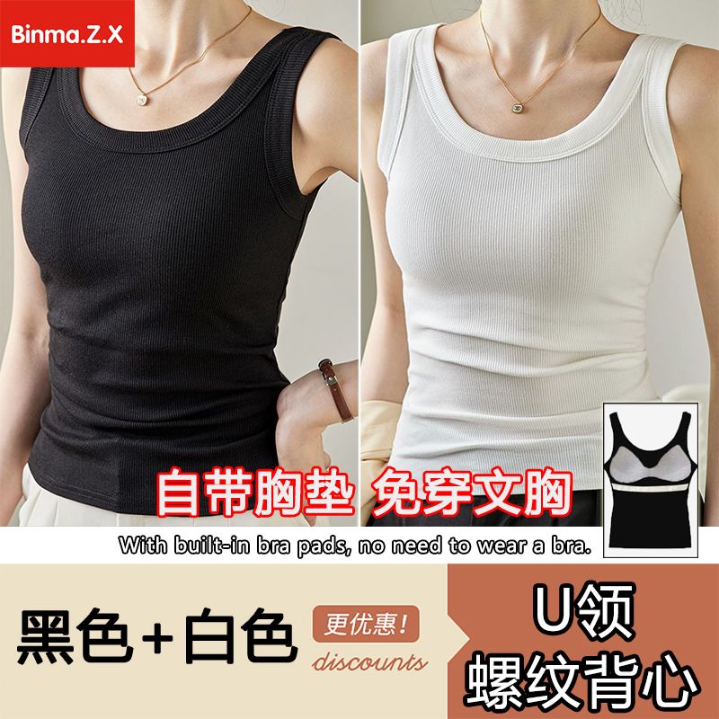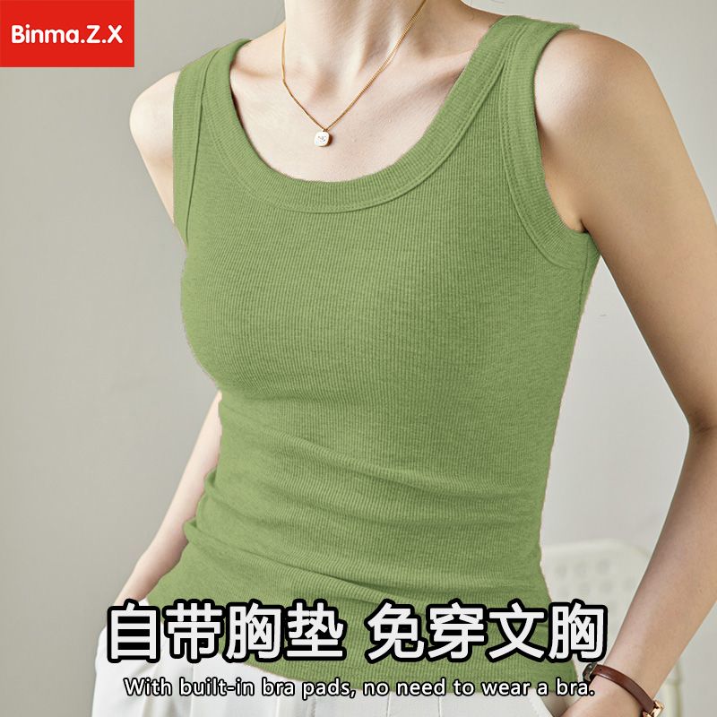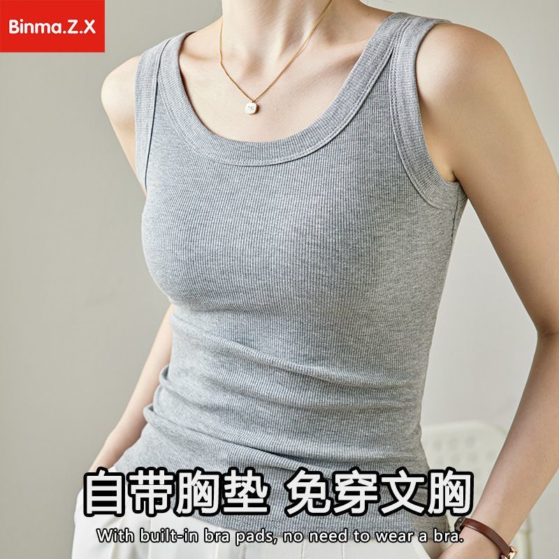 宾玛在线免穿文胸宽肩带背心女夏螺纹吊带加胸垫内搭打底无袖上衣