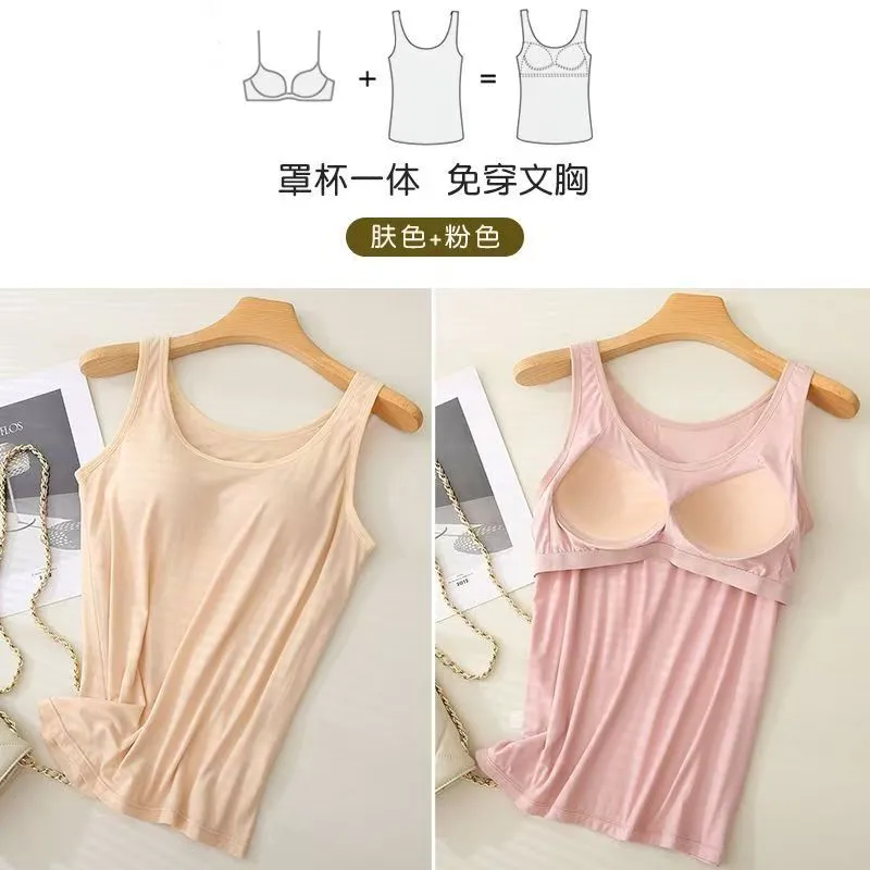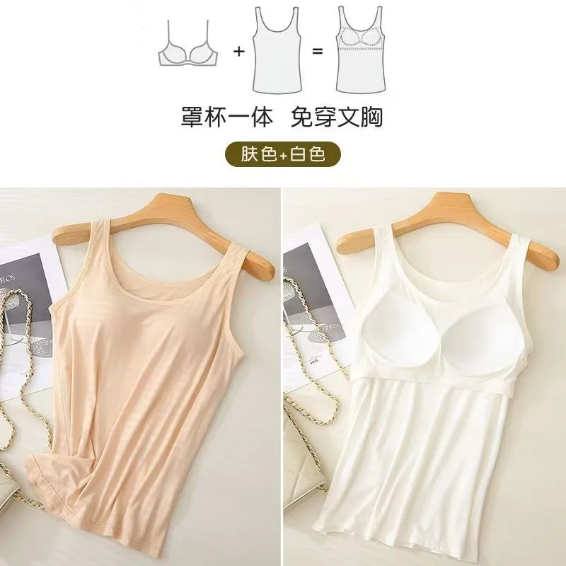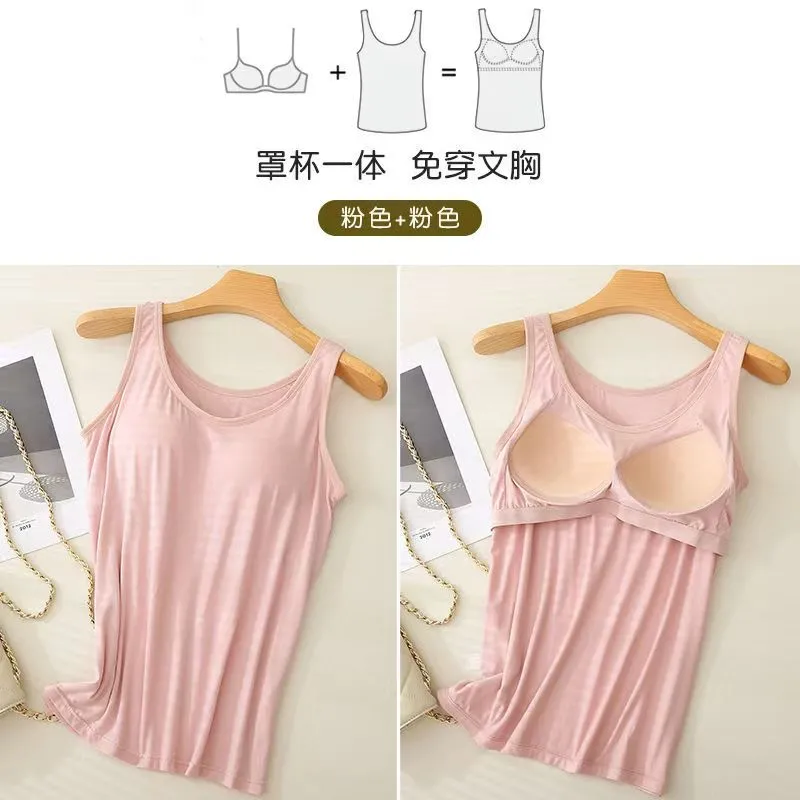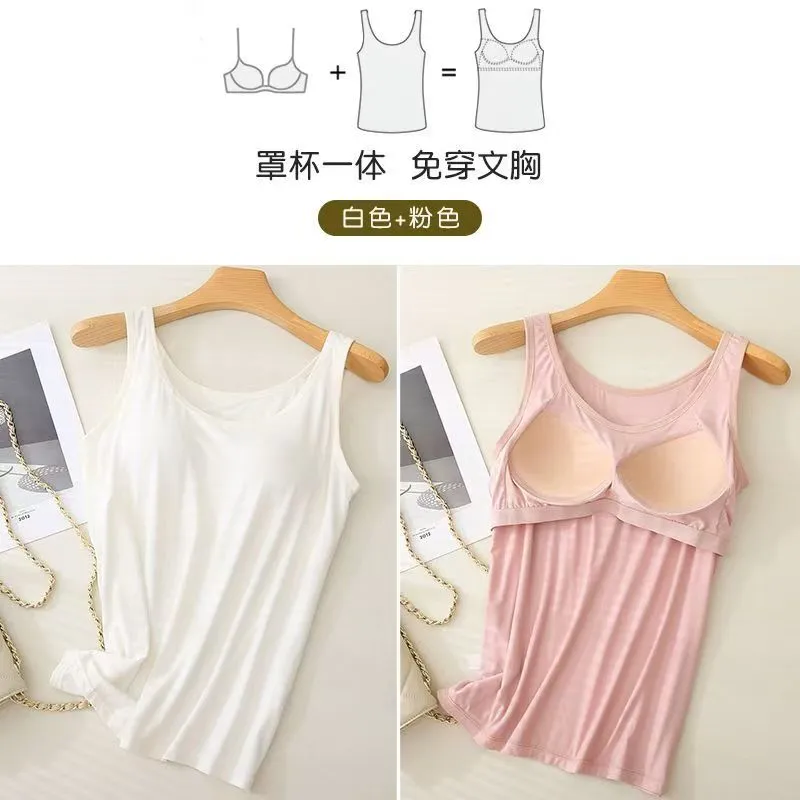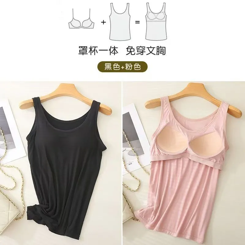 带胸垫背心女夏季罩杯一体免穿文胸打底内衣吊带无袖上衣内搭外穿