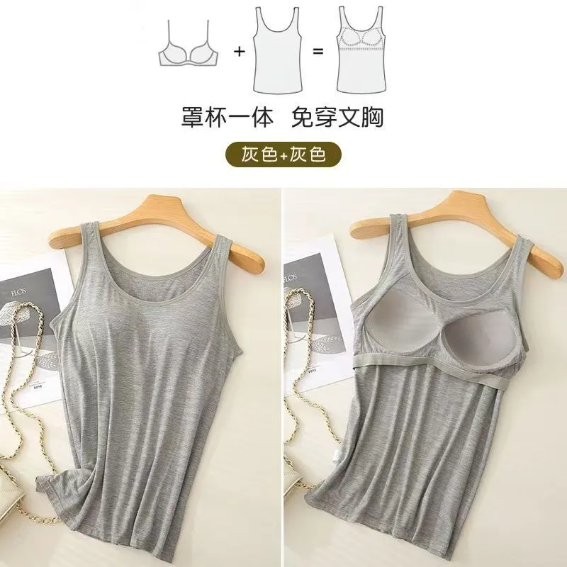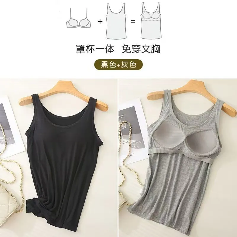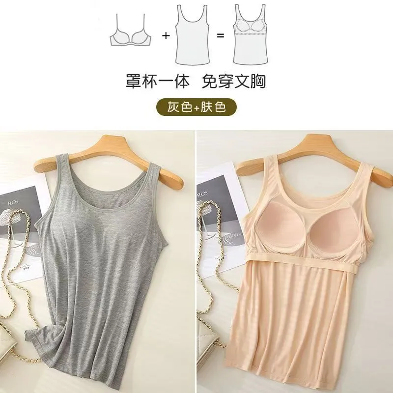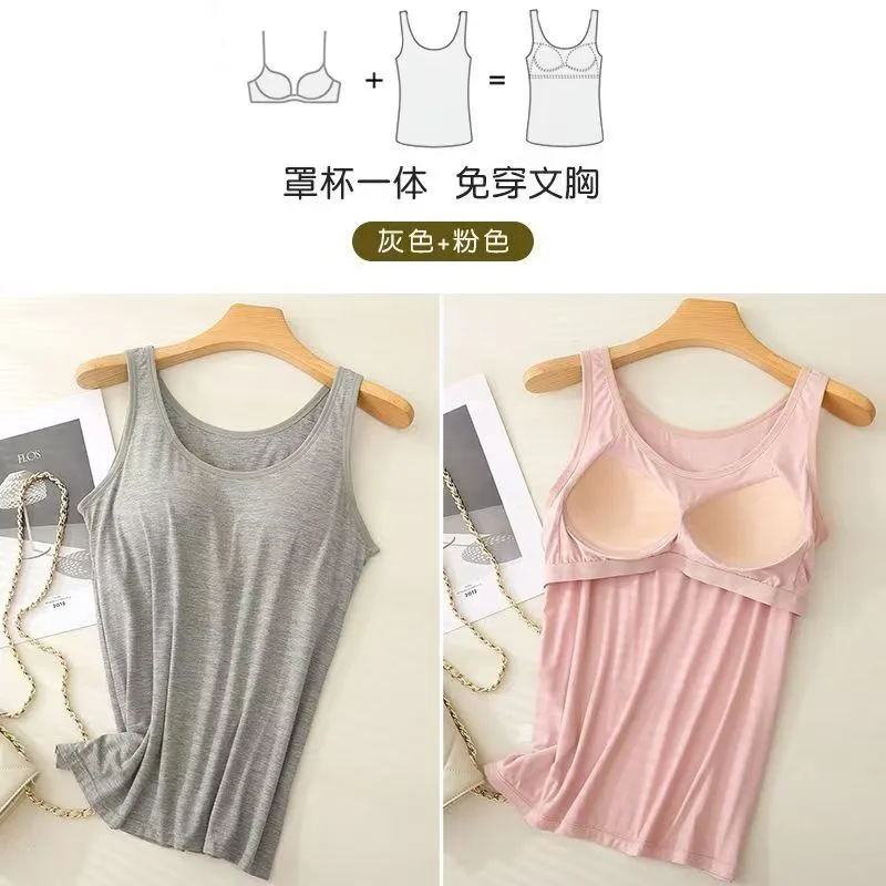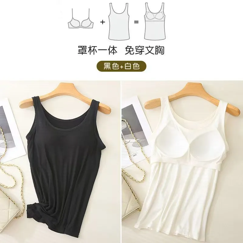 带胸垫背心女夏季罩杯一体免穿文胸打底内衣吊带无袖上衣内搭外穿