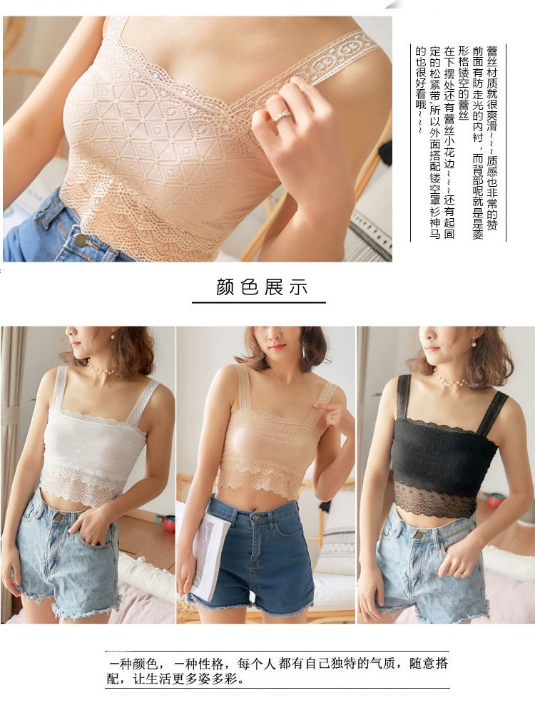 1/3 蕾丝裹胸女夏打底内衣美背短款防走光吊带小背心上衣学生抹胸