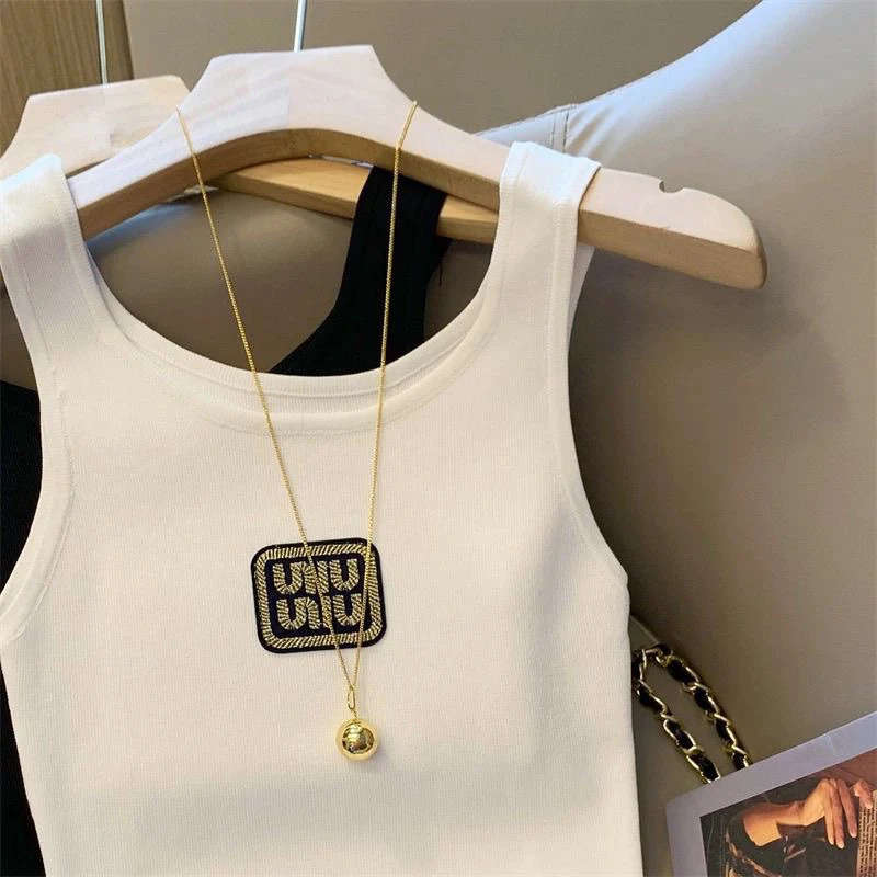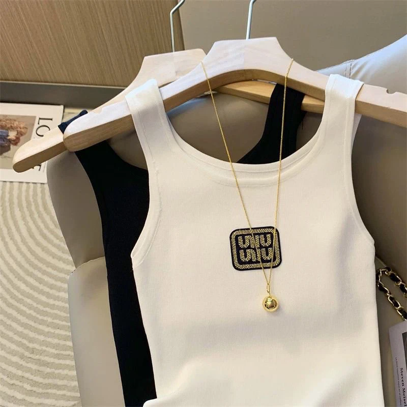 小香风字母刺绣短款吊带背心针织显瘦夏季打底新款修身无袖上衣女