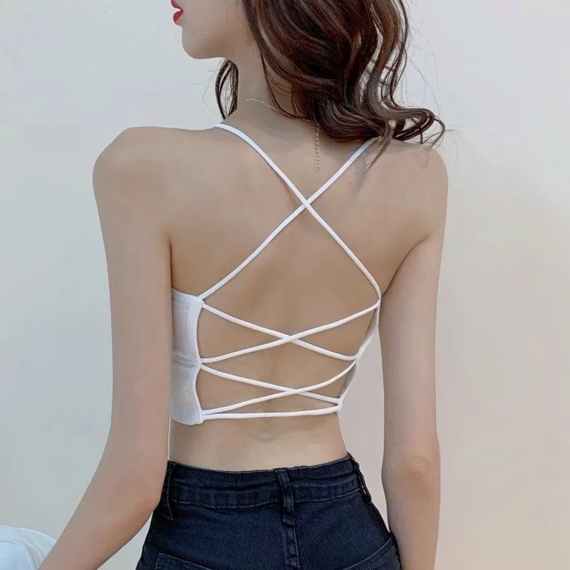交叉美背内衣少女学生韩版无钢圈性感防走光抹胸可外穿吊带背心
