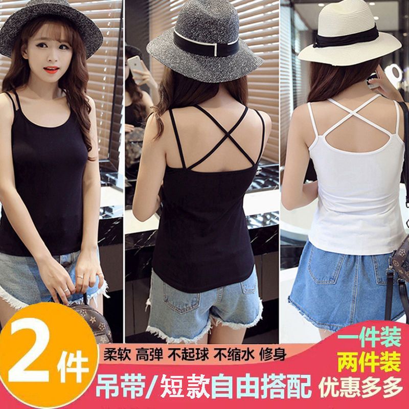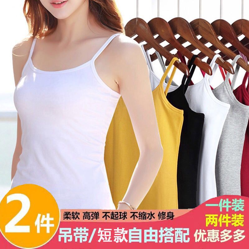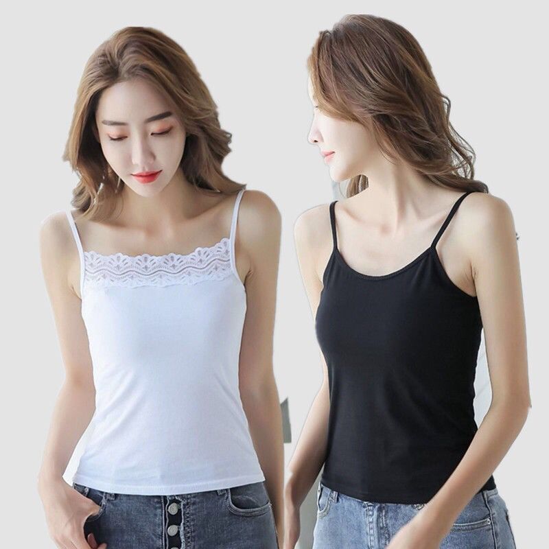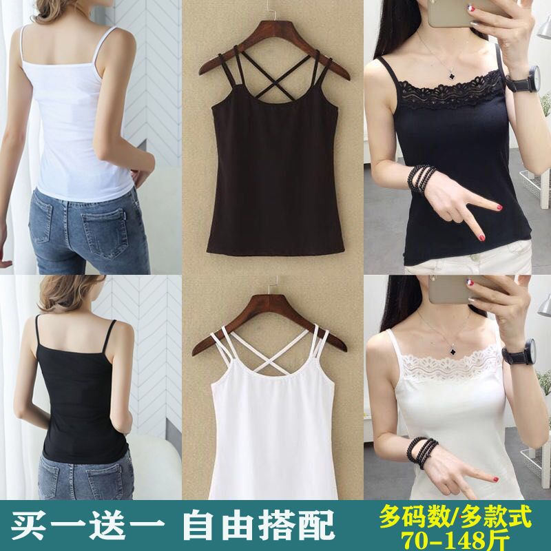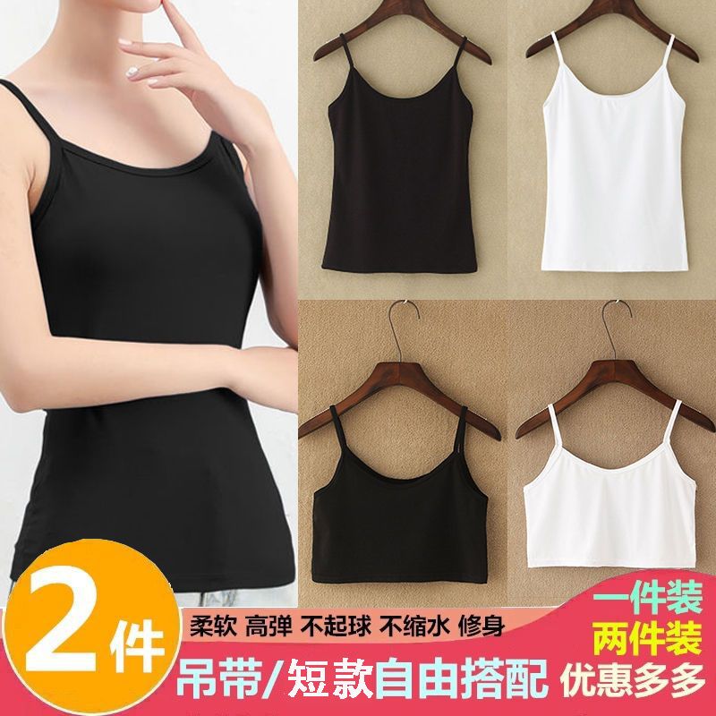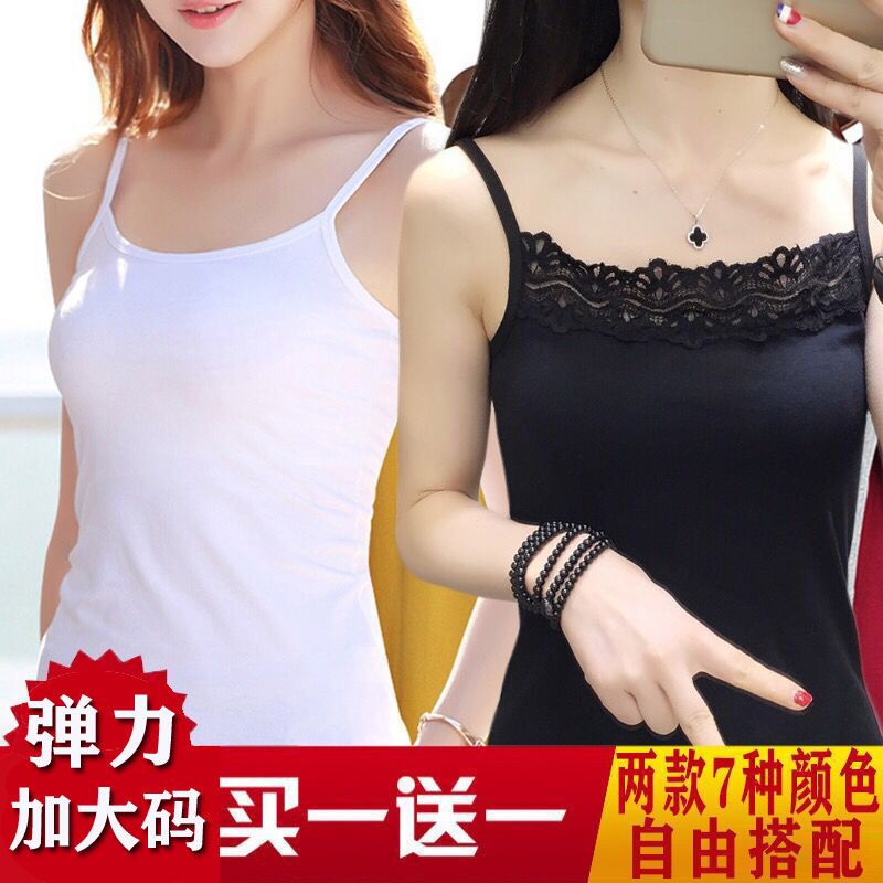 2件吊带背心女打底外穿无袖上衣百搭性感蕾丝边黑白色吊带女内搭