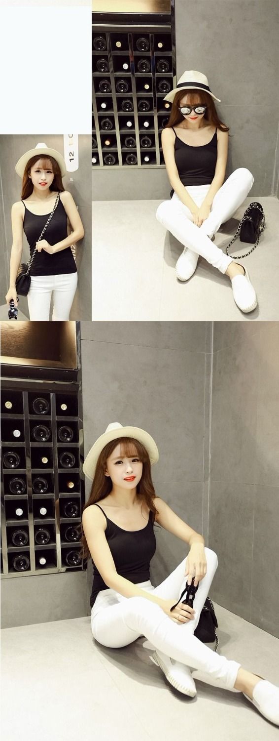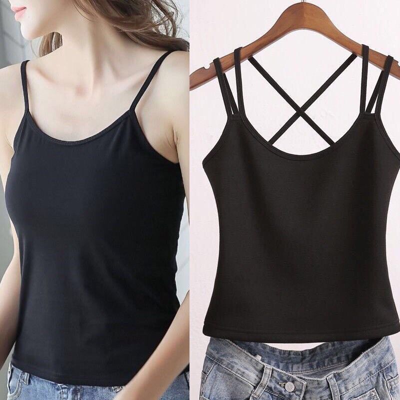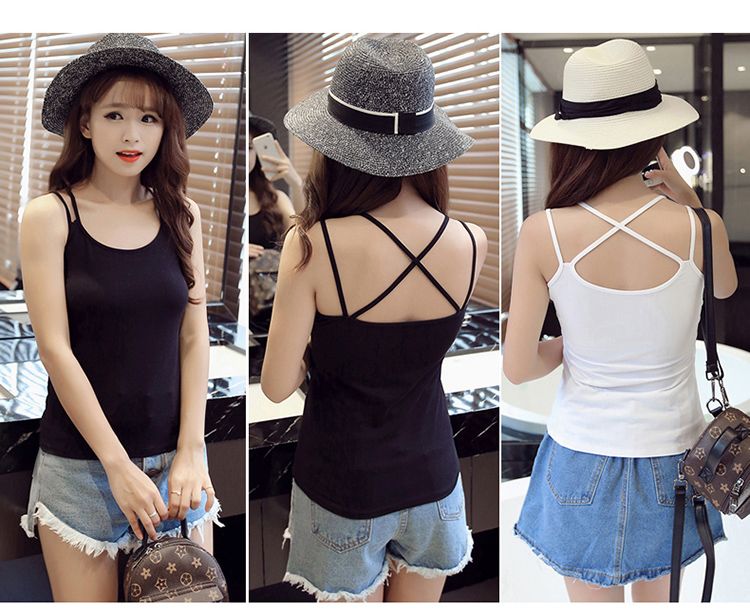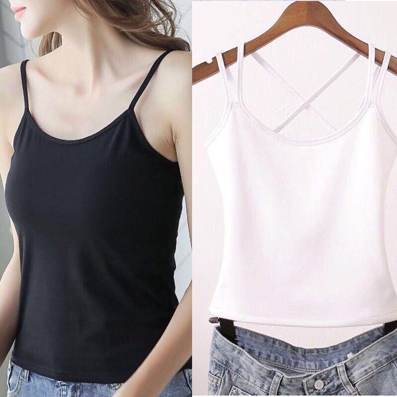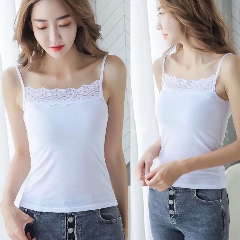 2件吊带背心女打底外穿无袖上衣百搭性感蕾丝边黑白色吊带女内搭
