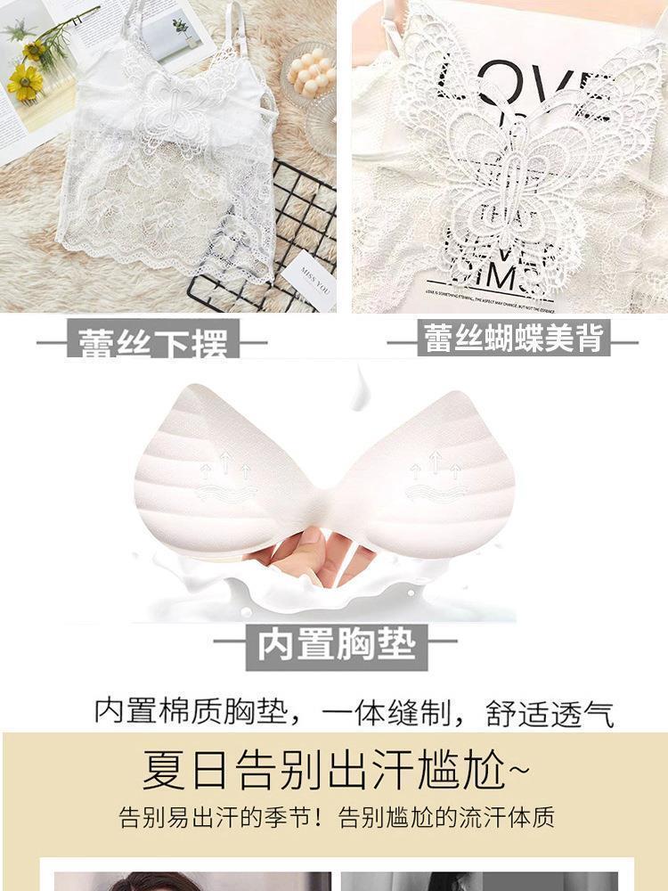 【85-160斤】蝴蝶爆款蕾丝美背小吊带背心女外穿打底上衣抹胸夏薄
