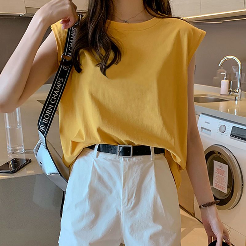 2025春夏新款港味纯色无袖t恤女内搭打底衫工字吊带背心女外穿