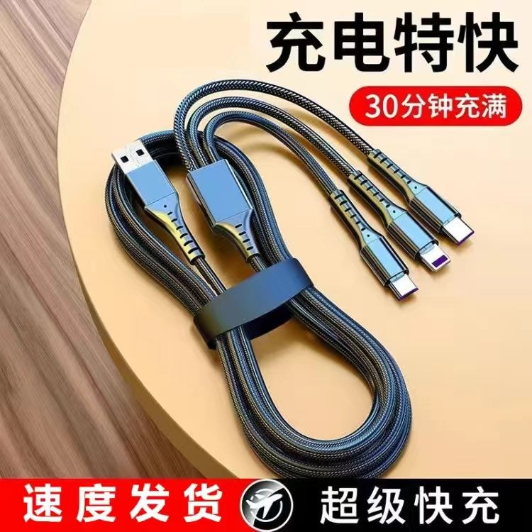 6A快速充电线三合一拖三数据线手机适用苹果华为VIVO小米OPPO车载