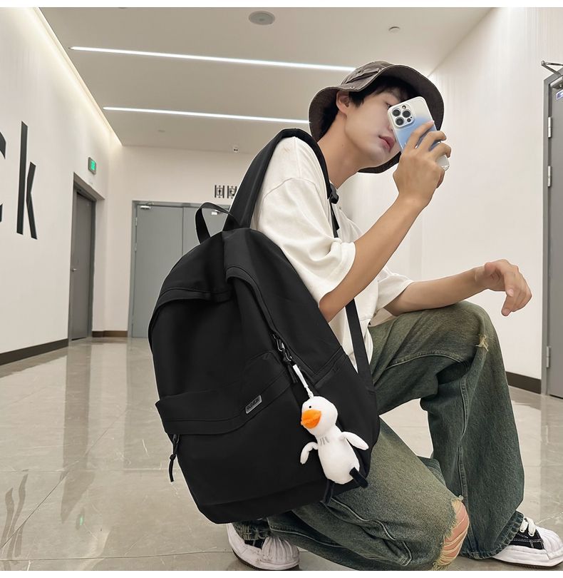 2025日系简约拉链尼龙双肩背包男生15英寸超大容量旅行书包书包男