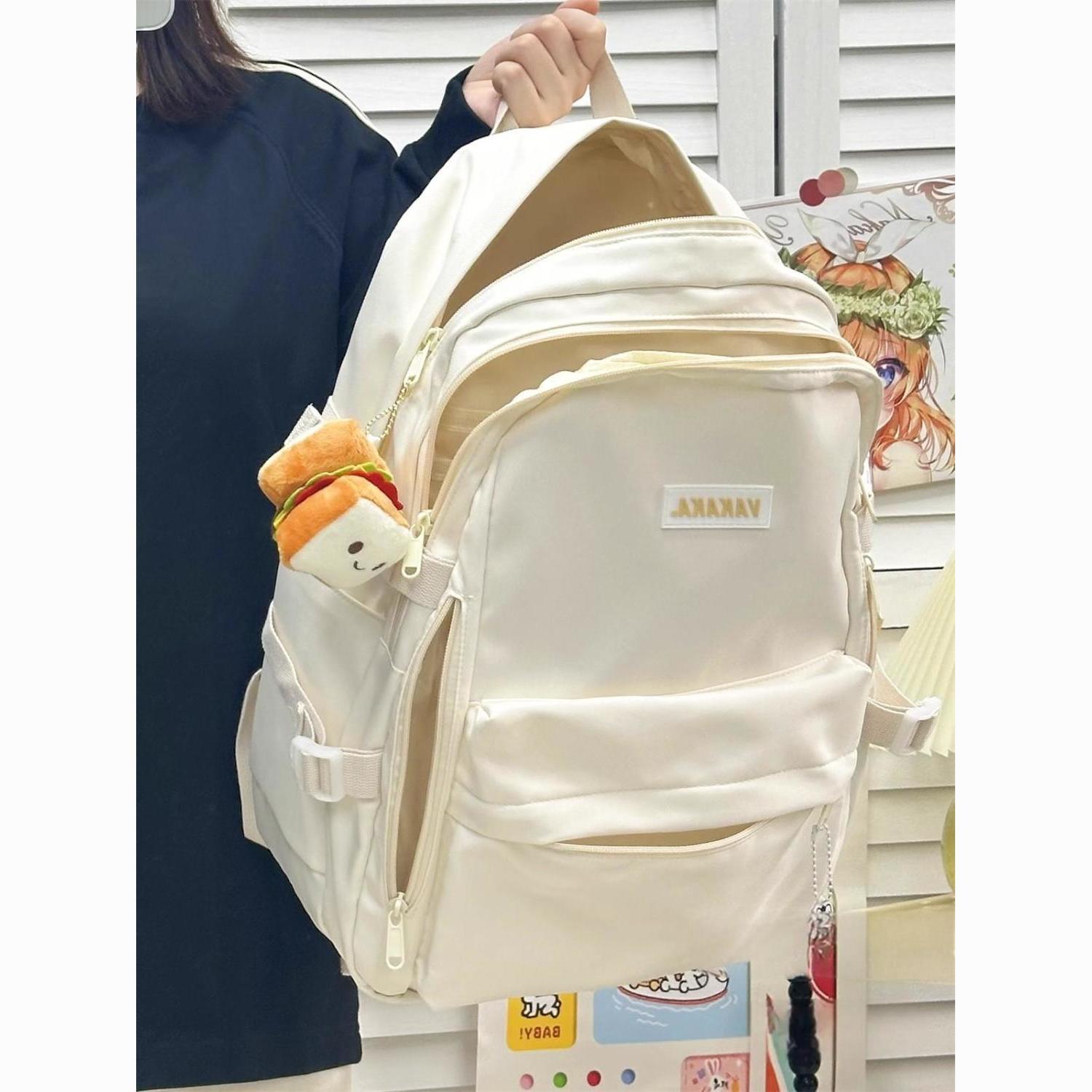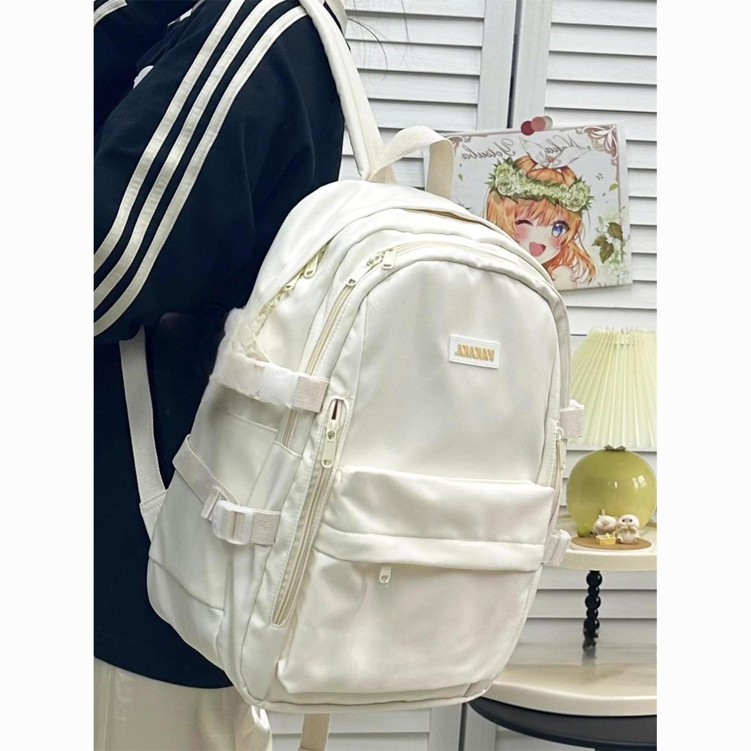 ins日系小众初中高中学生书包大容量电脑包百搭双肩包复古背包女