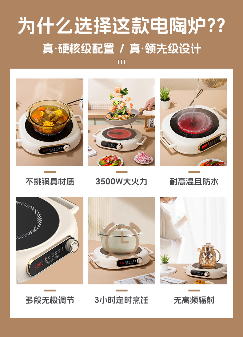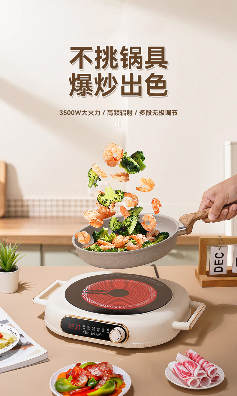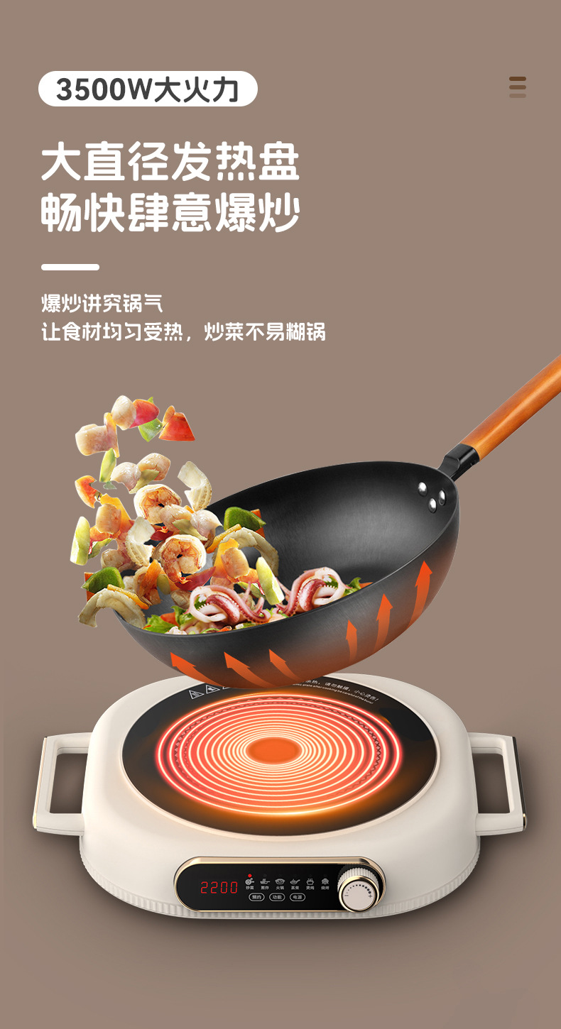 跨境公寓电陶炉家用3500W大功率不挑锅电茶炉光波炉批发代发工厂