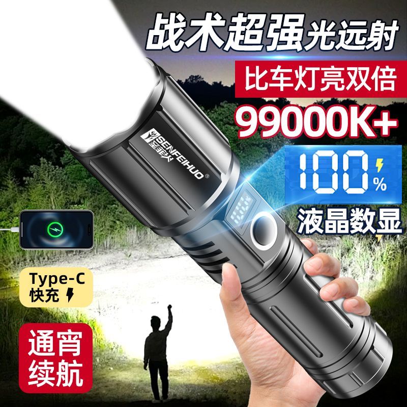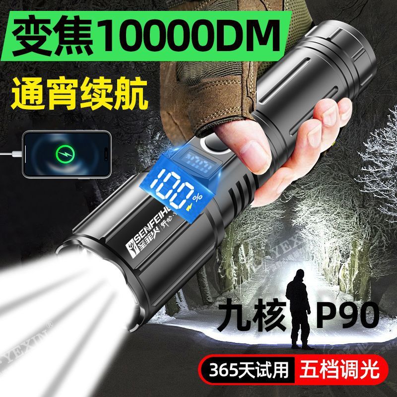特种兵户外P900强光手电筒便携充电超亮疝气灯变焦远射聚光LED灯