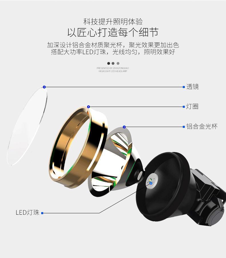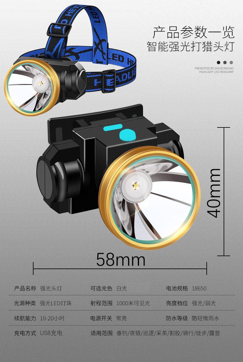 头灯强光超亮头戴式手电筒户外家用远射充电夜钓鱼小氙气矿灯