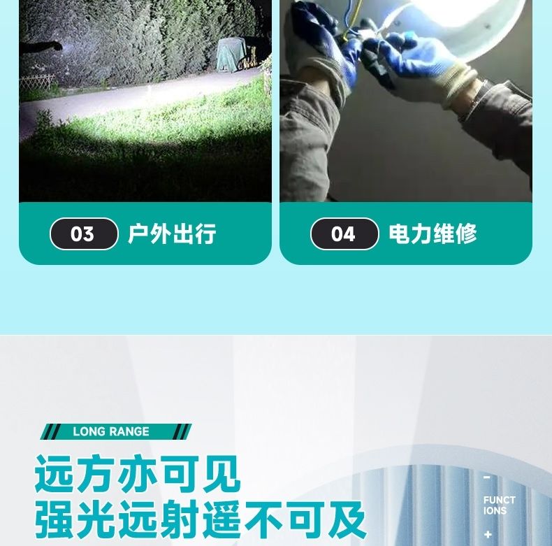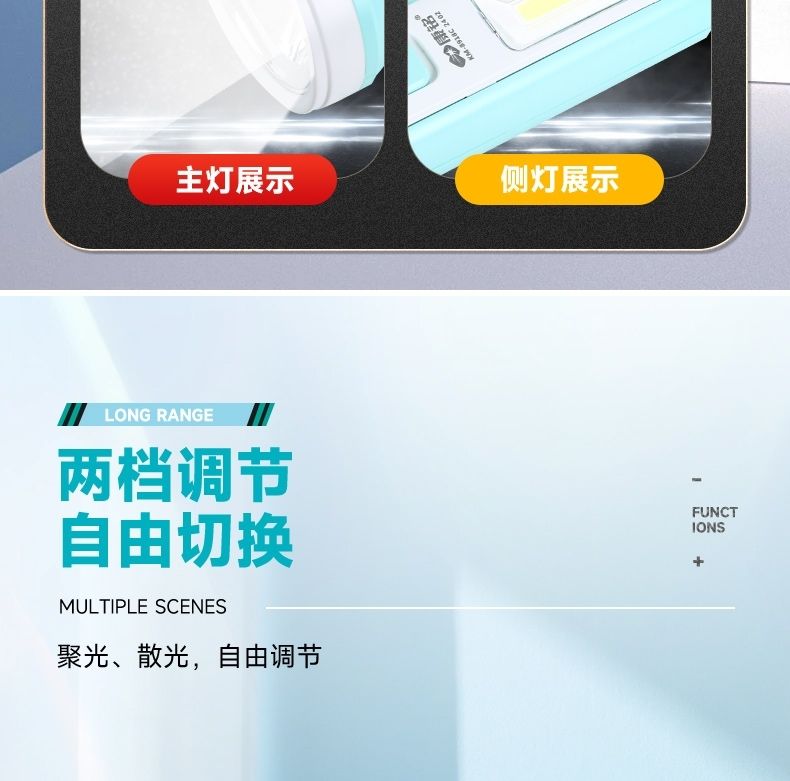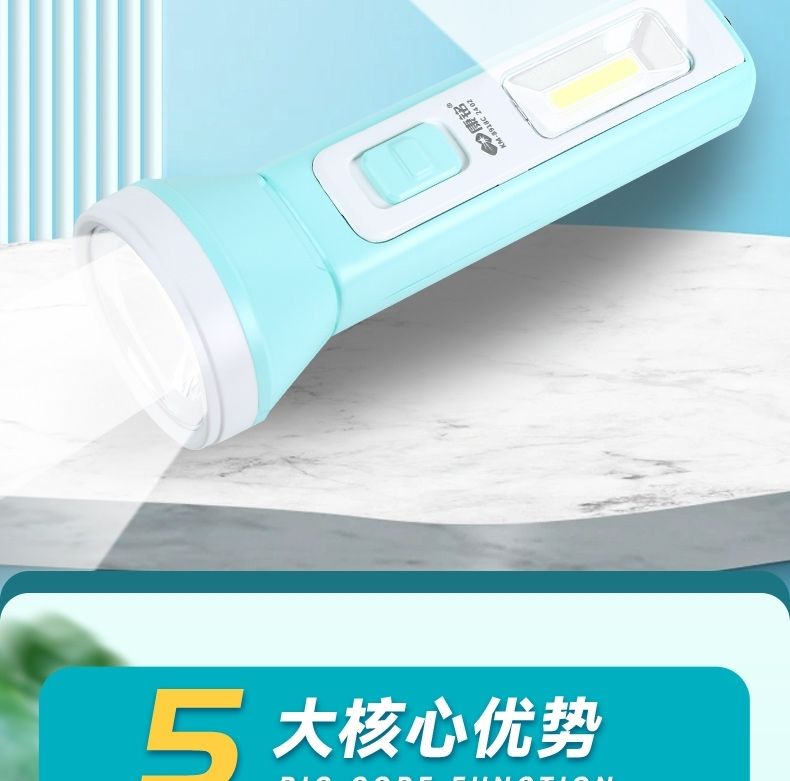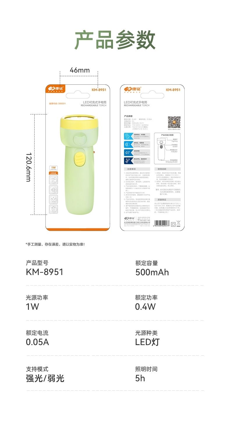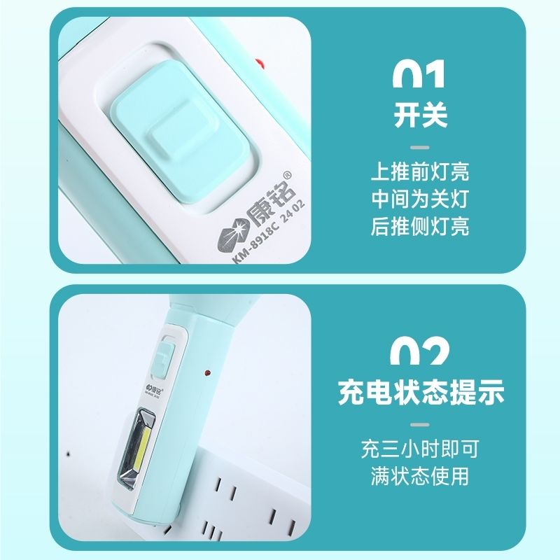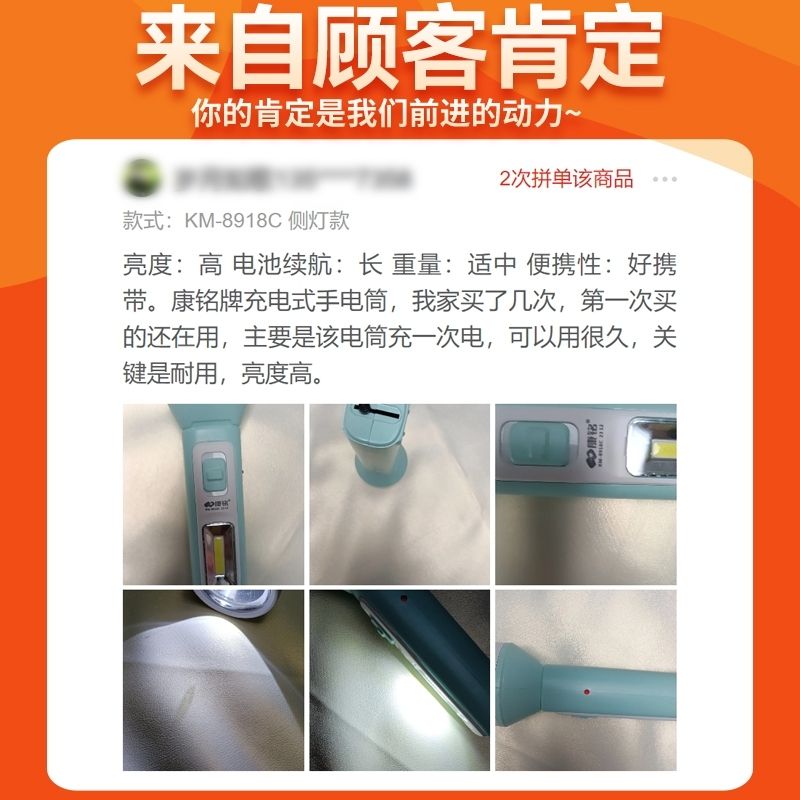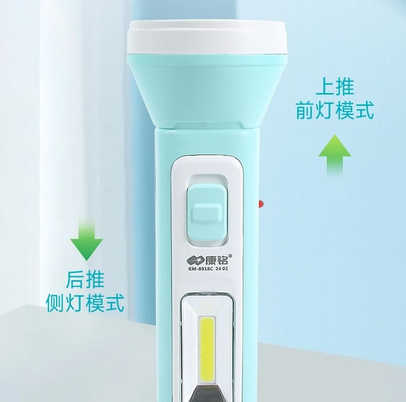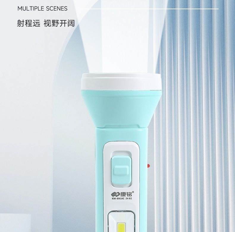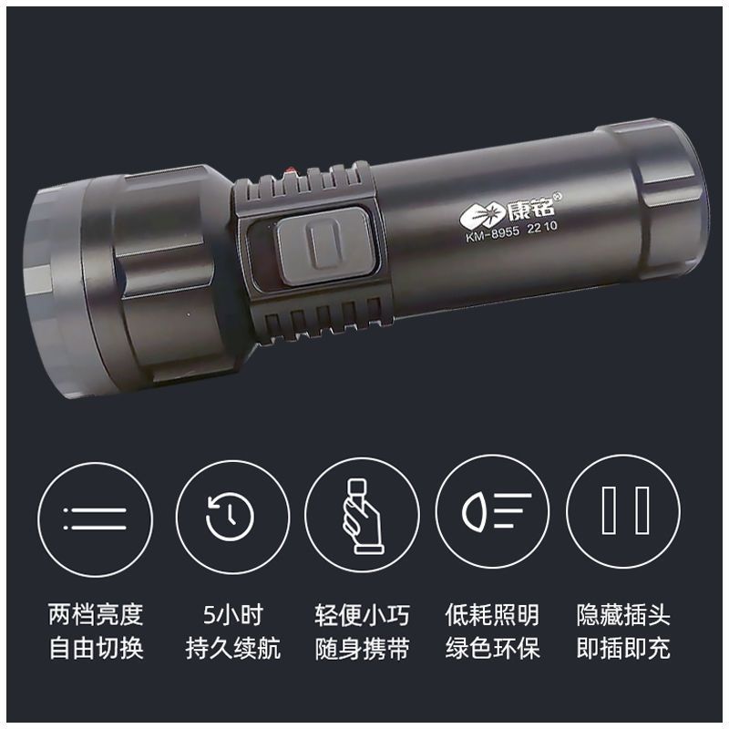 康铭KM-8918强光手电筒家用可充电侧灯带led