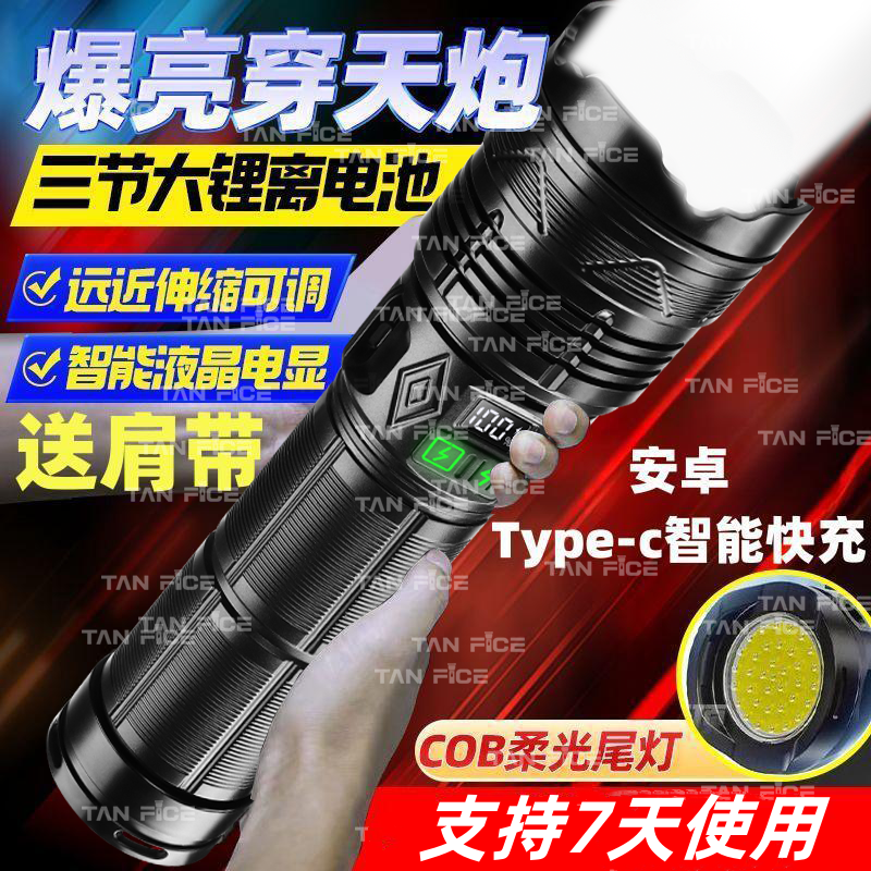 超大镭射炮强光手电筒户外便携战术照明灯可充电长续航远射氙气灯