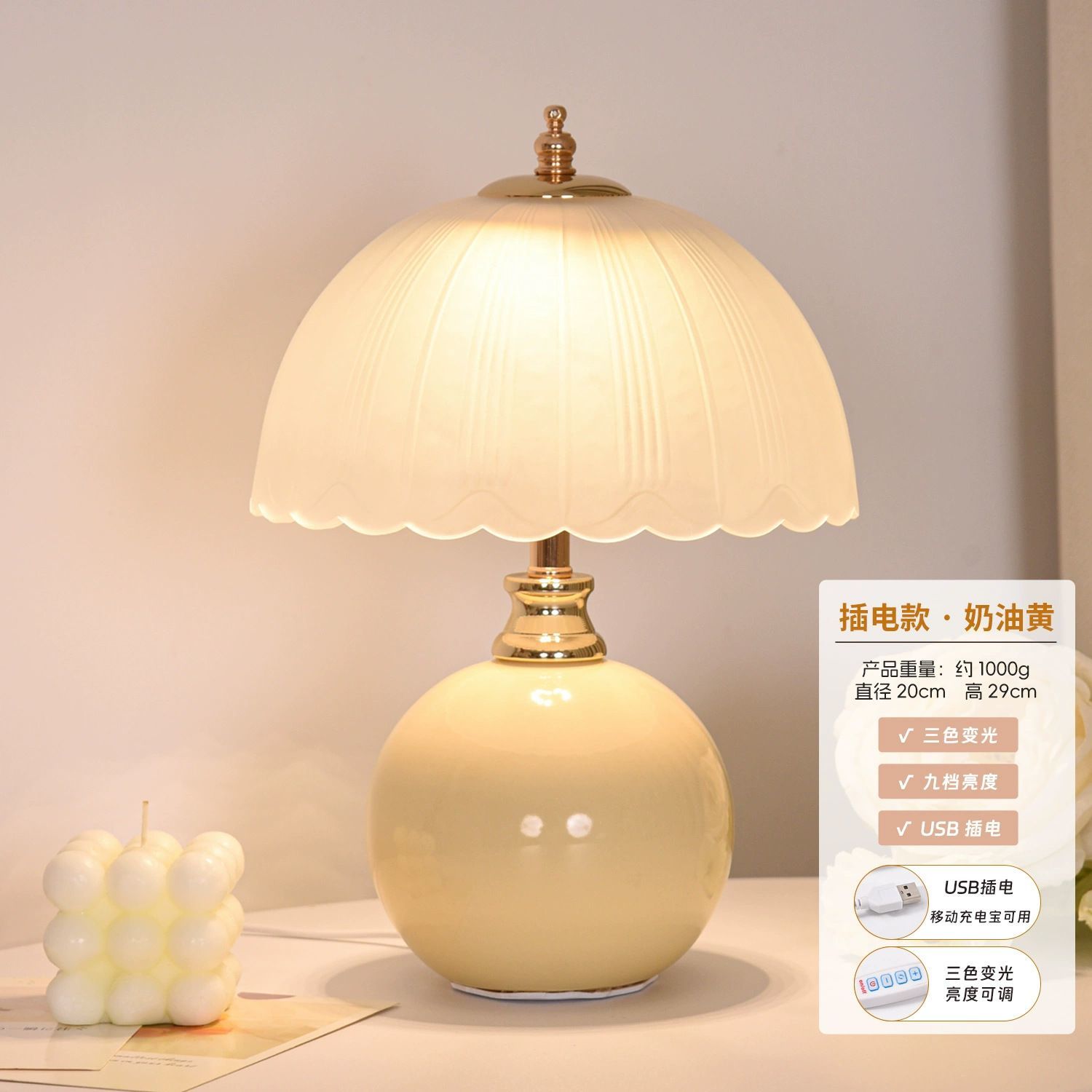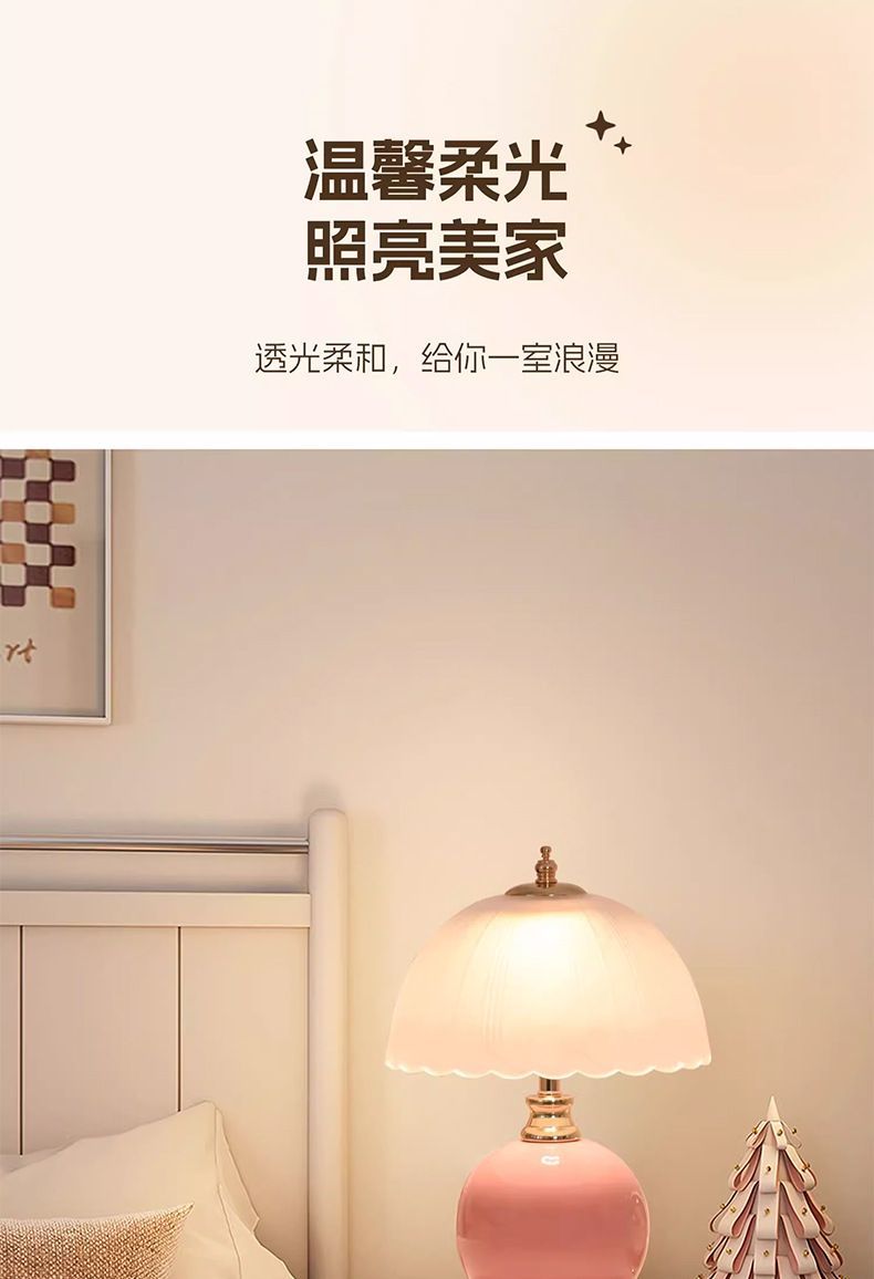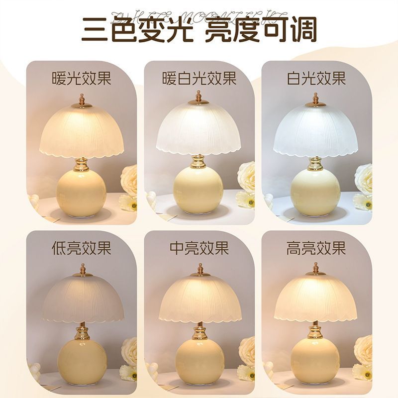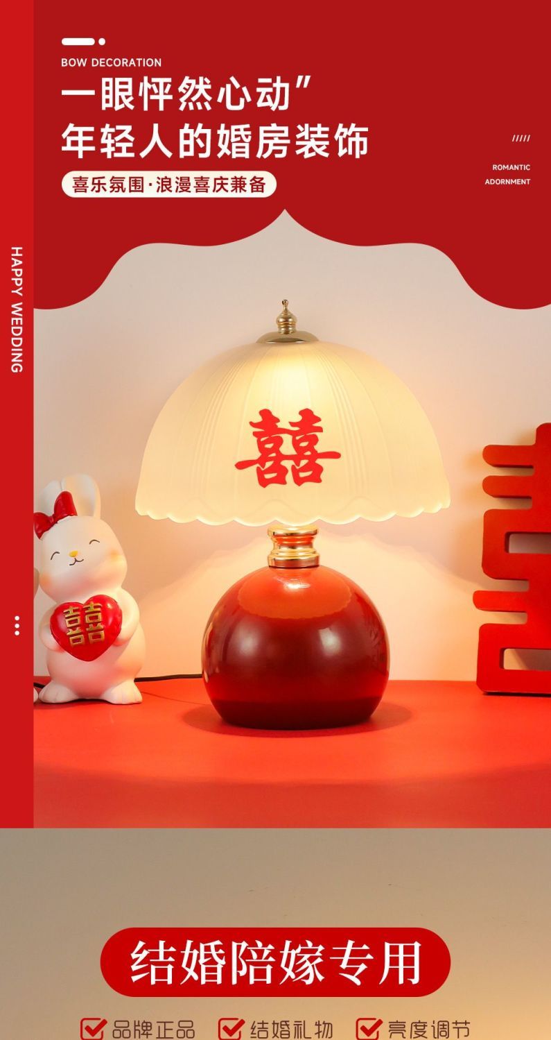 奶油风高级感轻奢台灯卧室2025床头柜氛围灯结婚喜创意温馨小夜灯