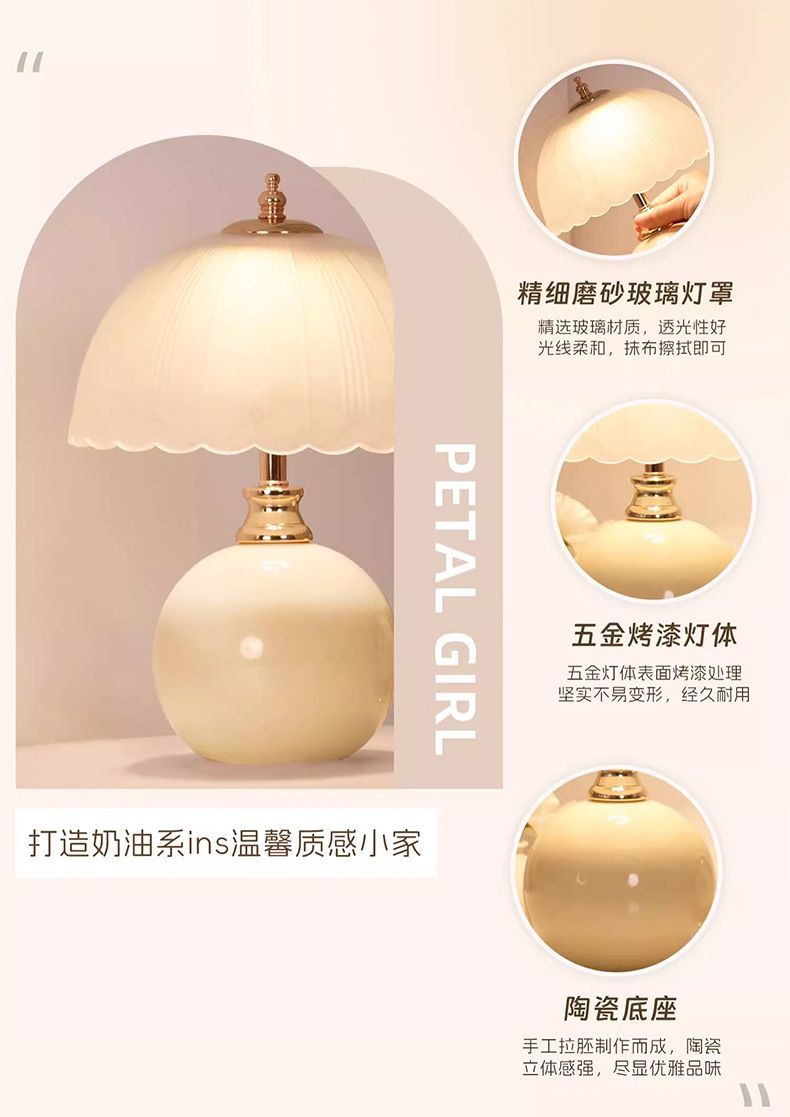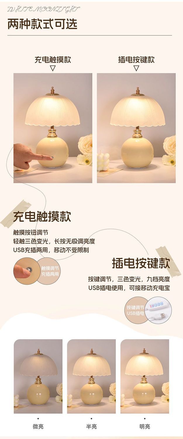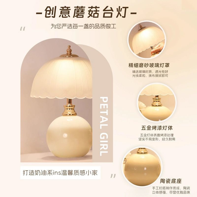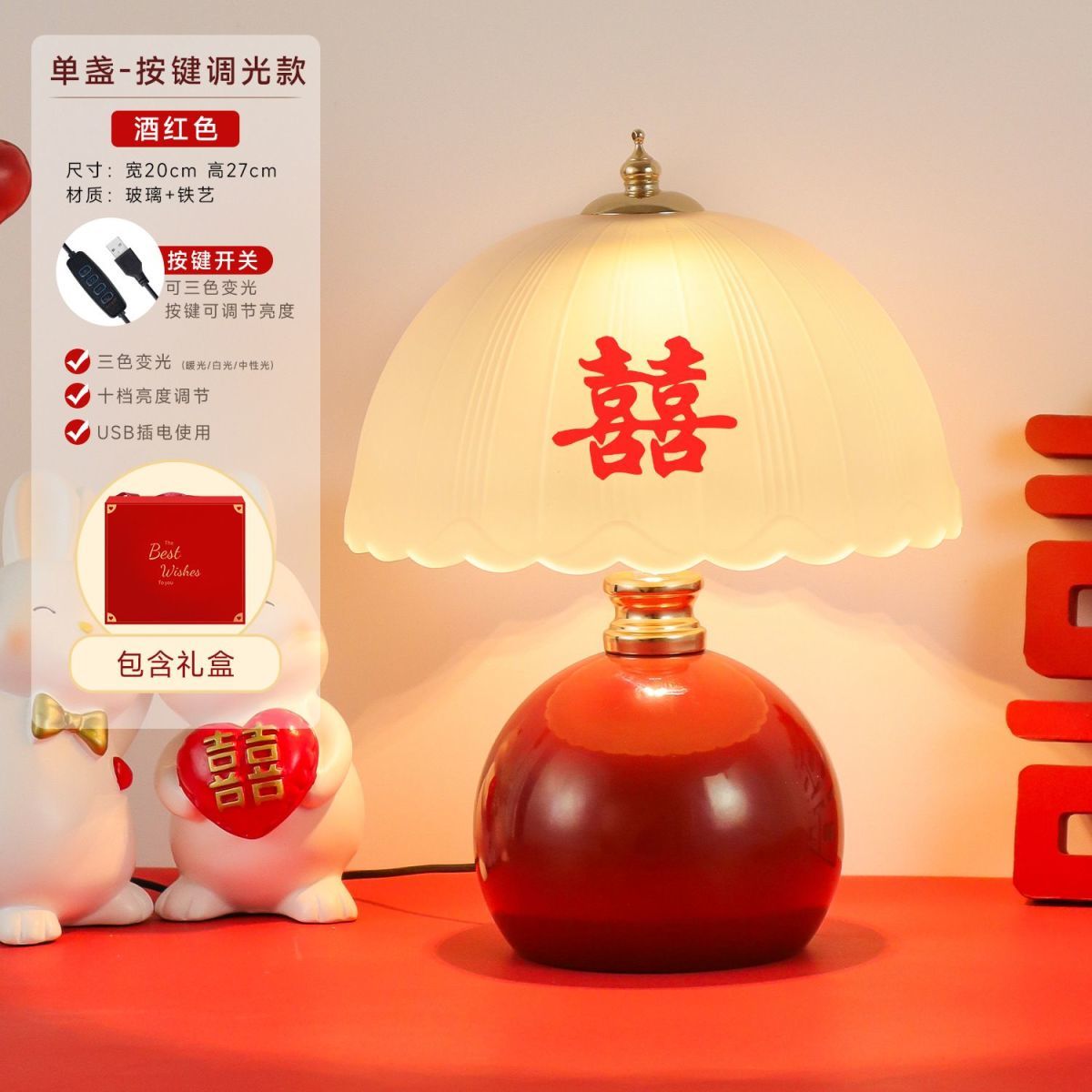 奶油风高级感轻奢台灯卧室2025床头柜氛围灯结婚喜创意温馨小夜灯