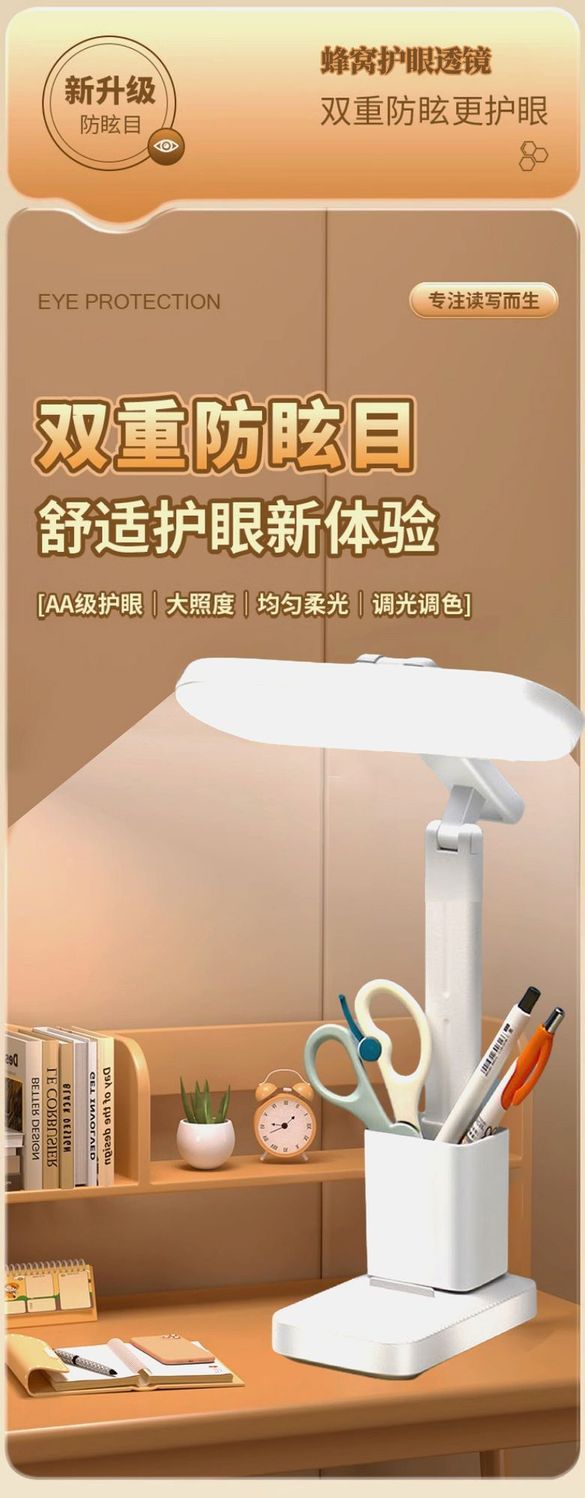 台灯护眼大学生学习儿童作业阅读充电插电宿舍卧室LED折叠超亮