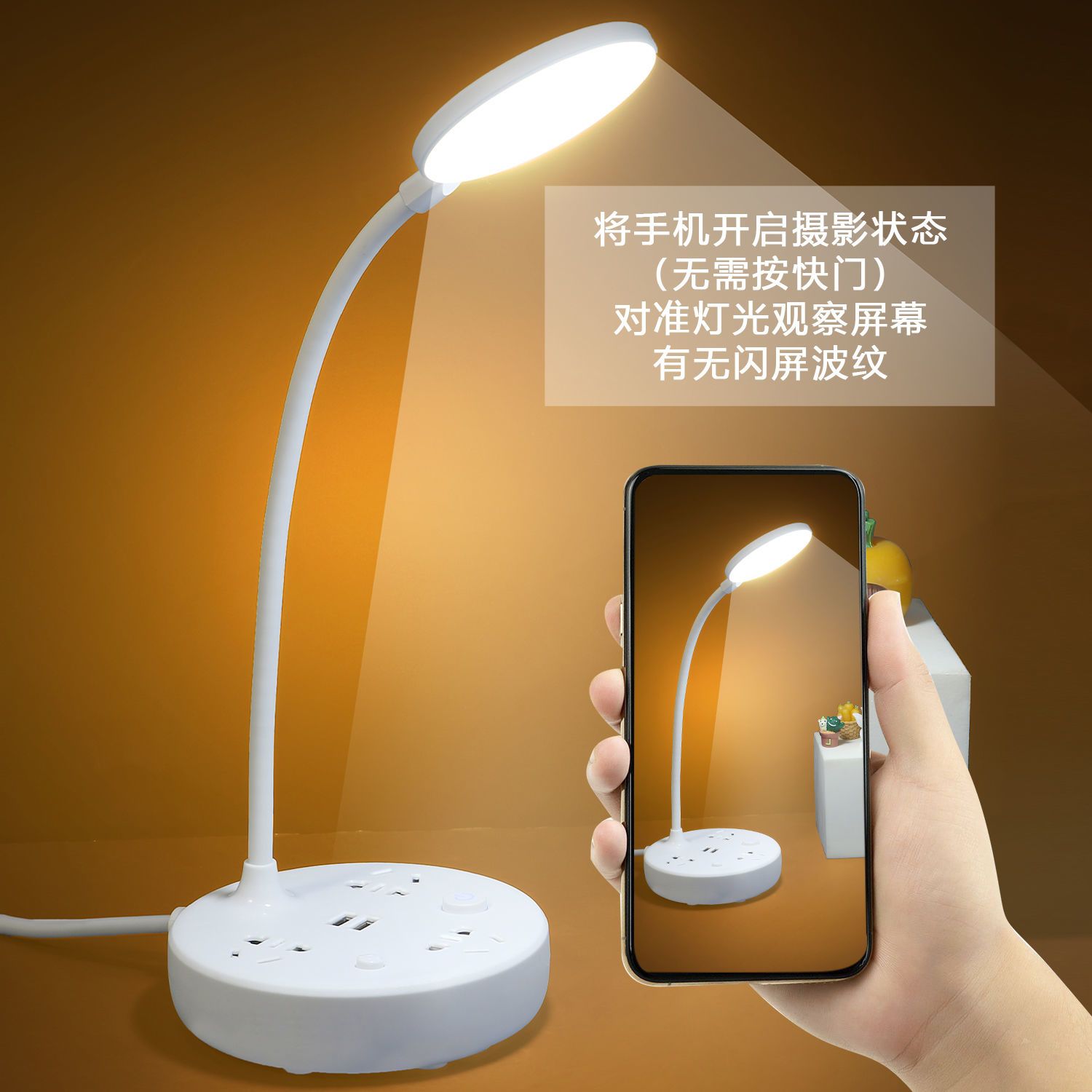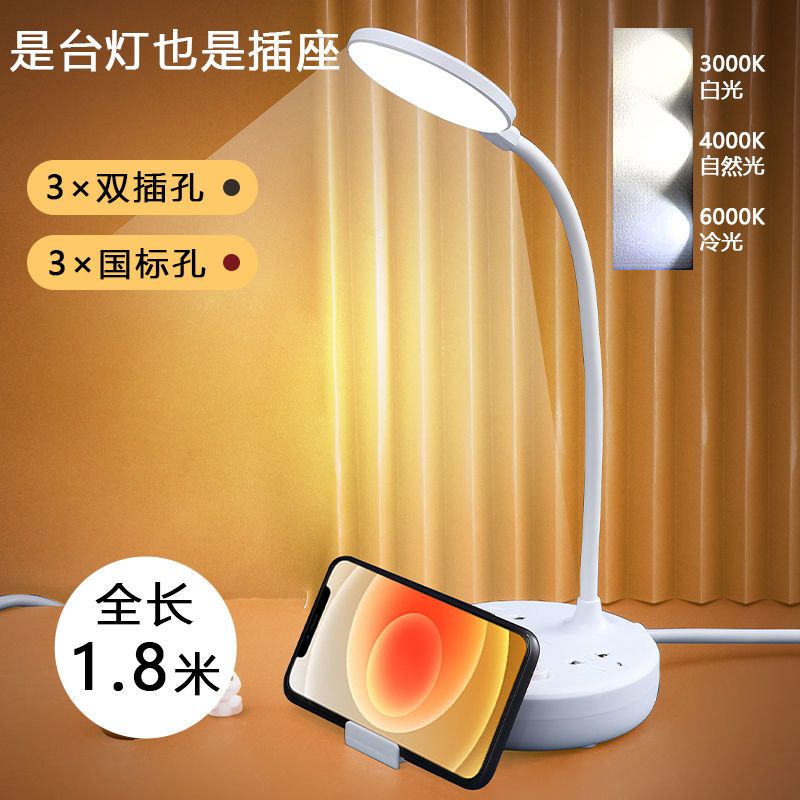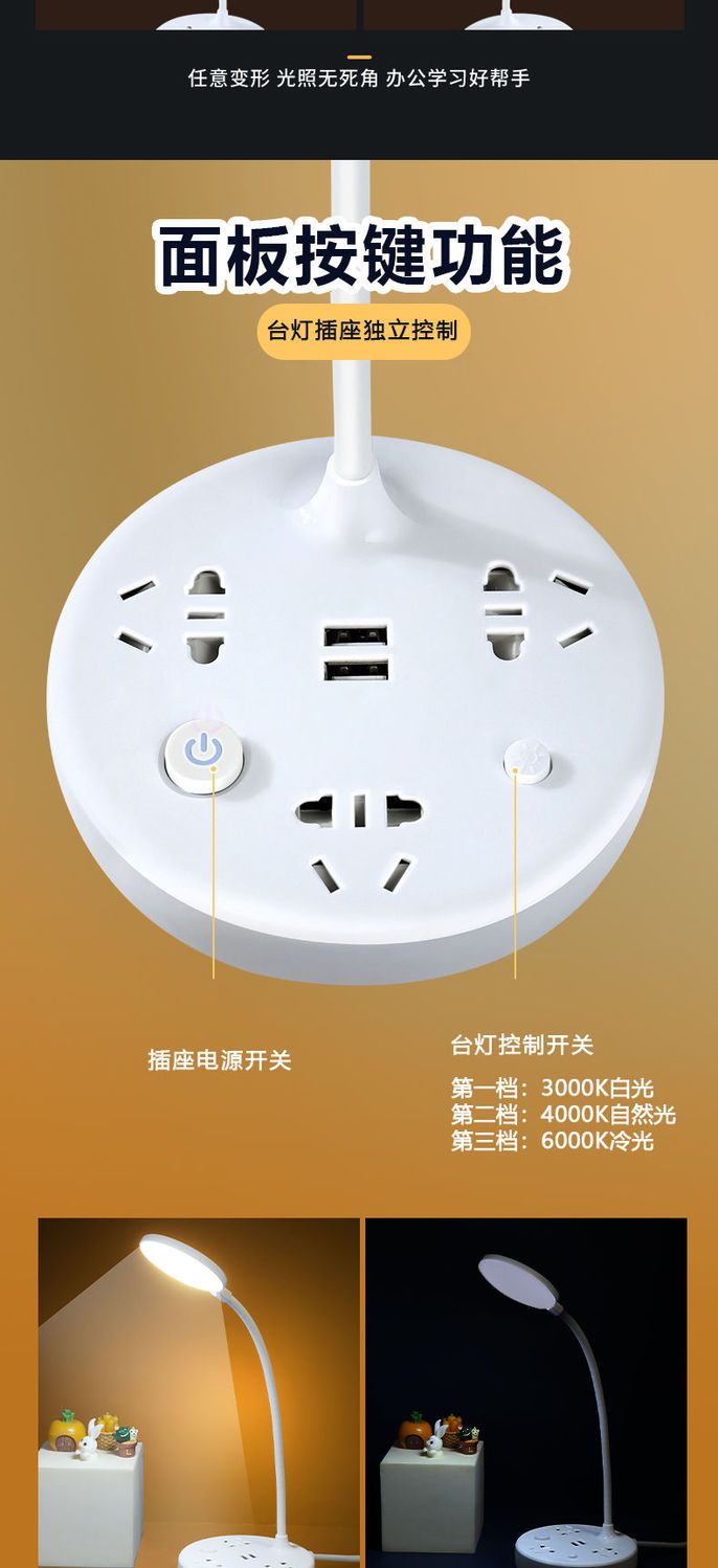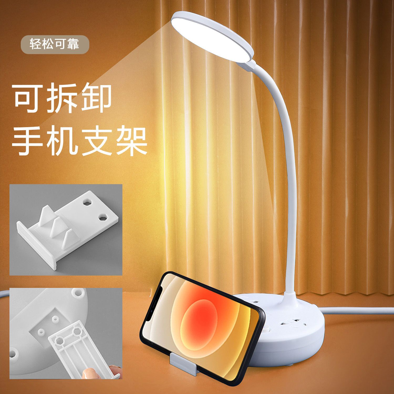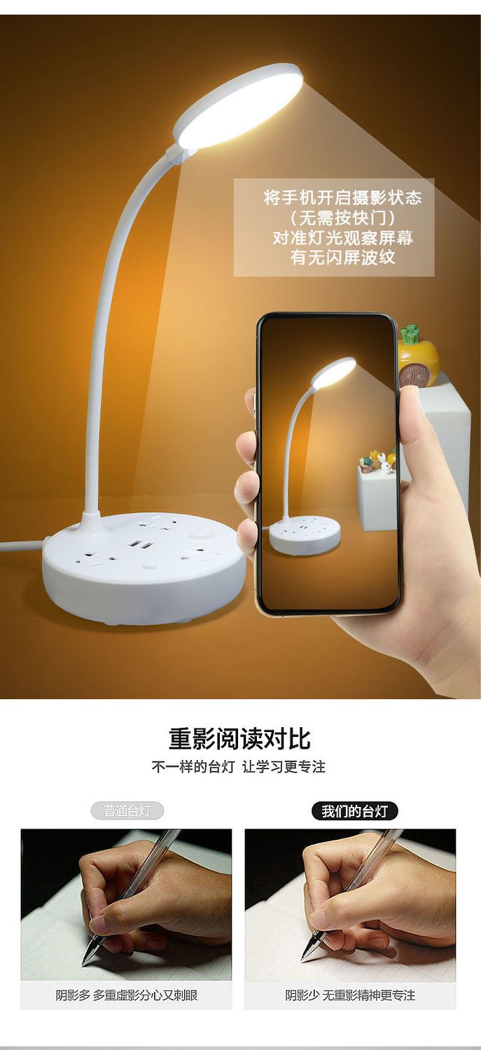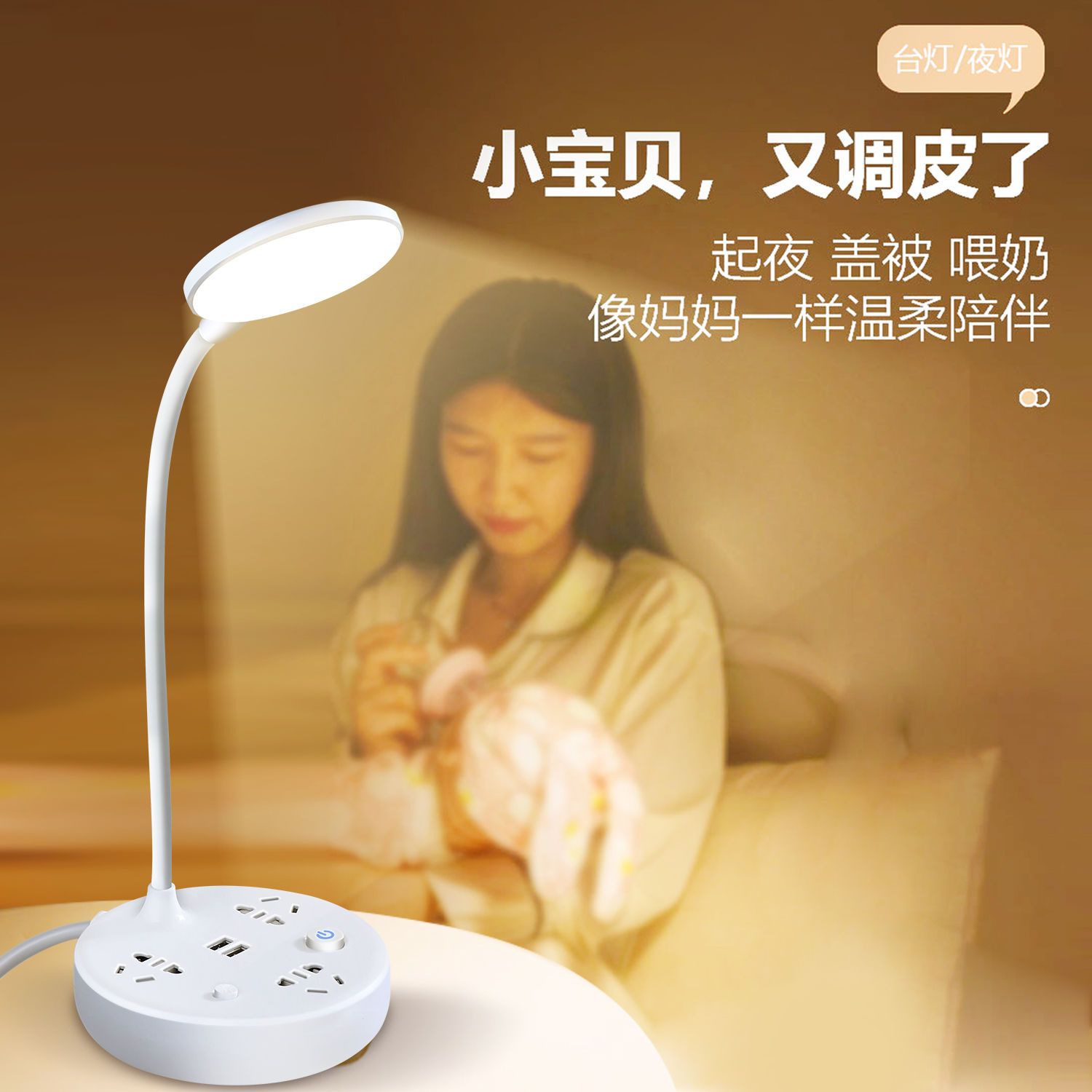 新款台灯三档调光LED台灯学习护眼USB插座长线家用多孔排插床头灯