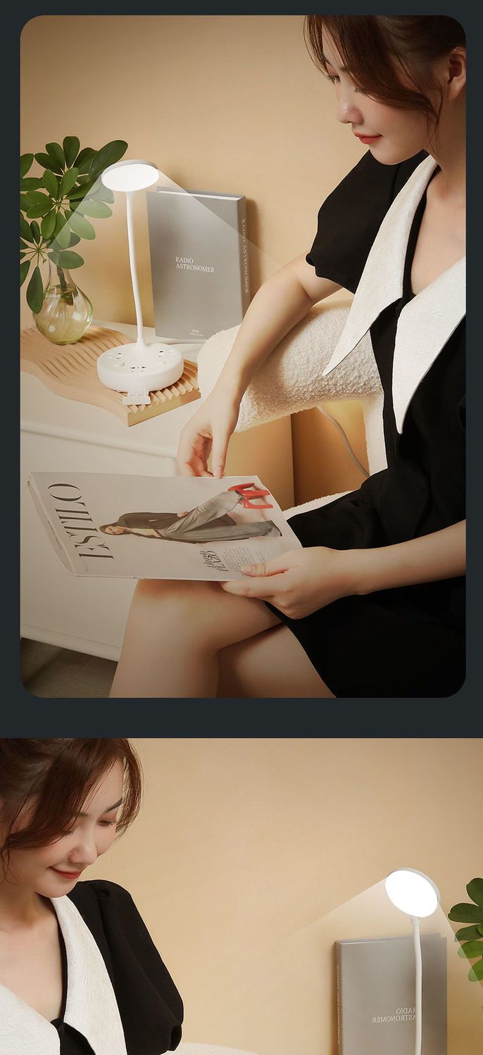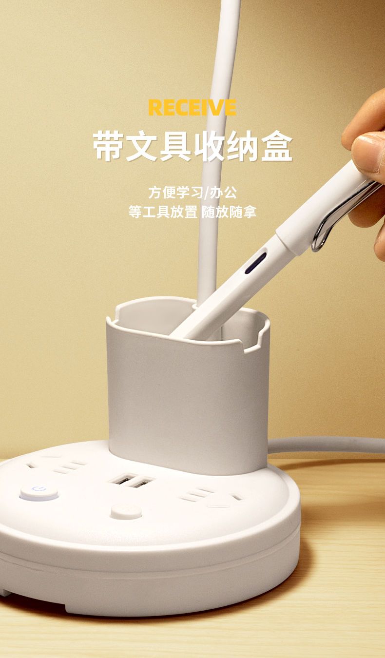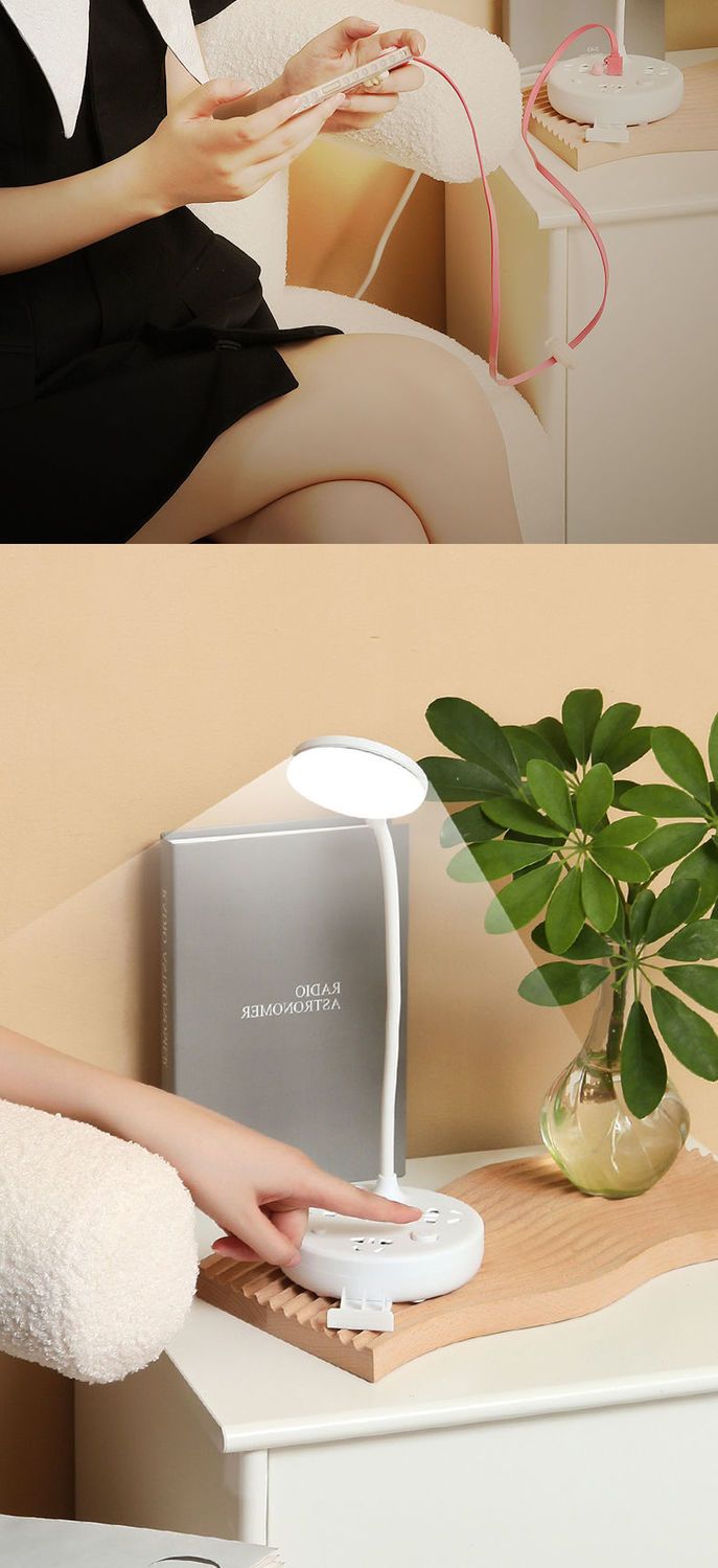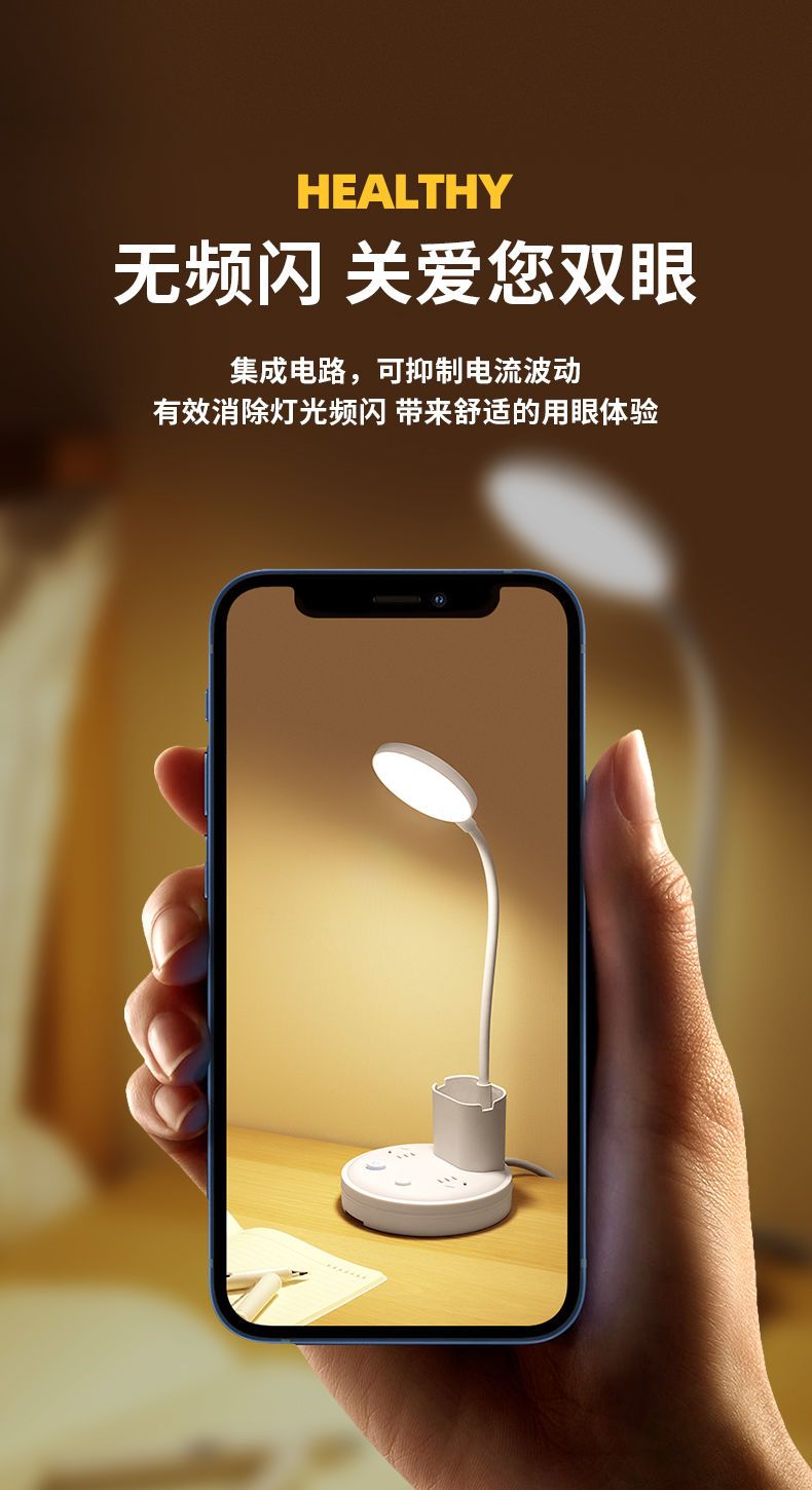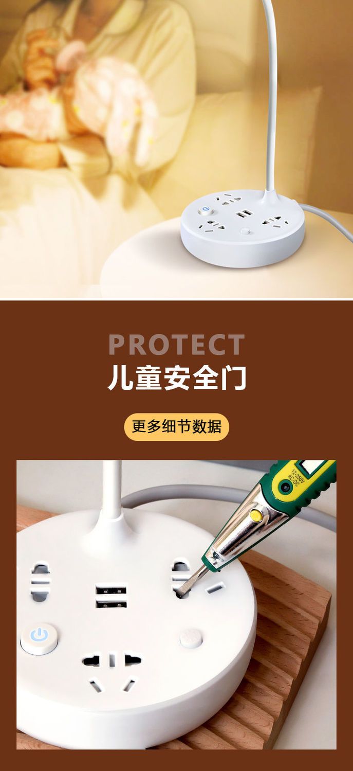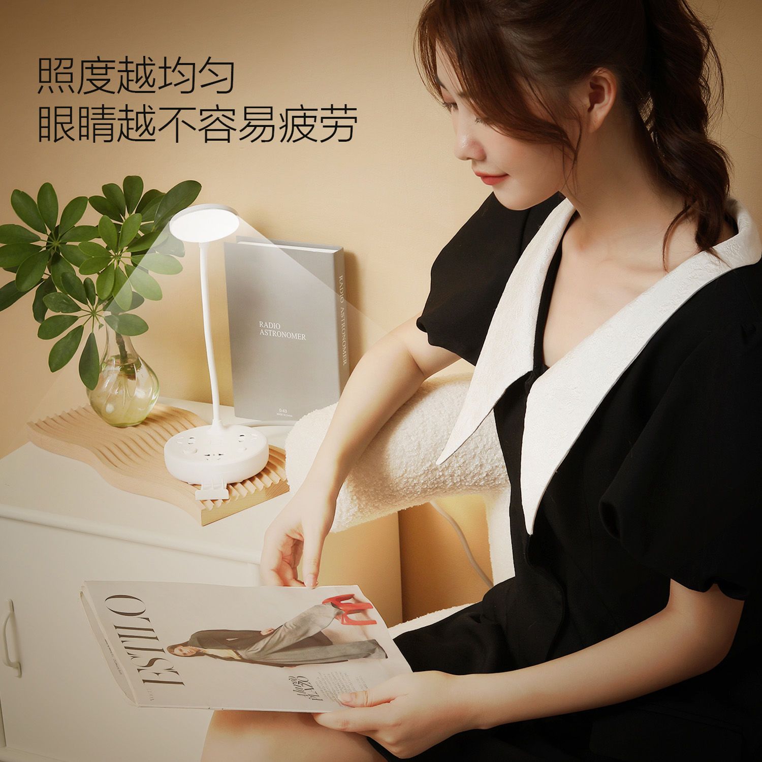 新款台灯三档调光LED台灯学习护眼USB插座长线家用多孔排插床头灯
