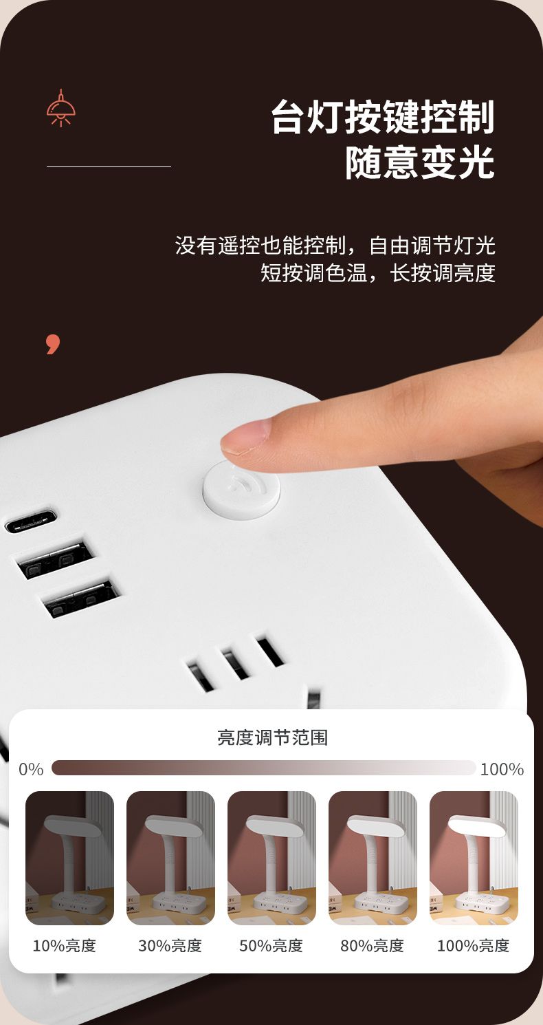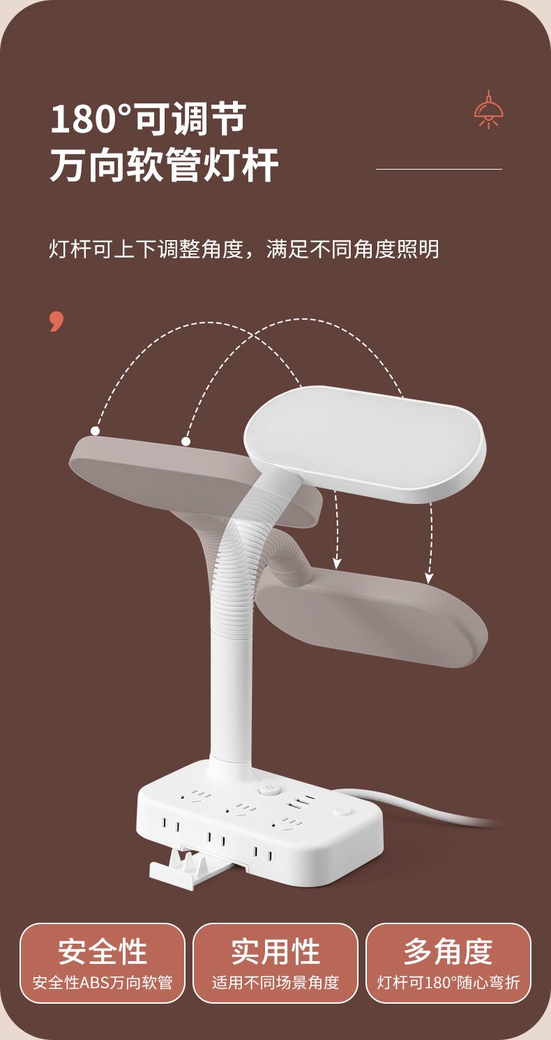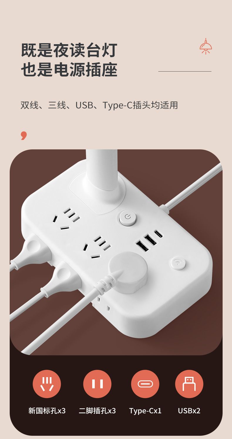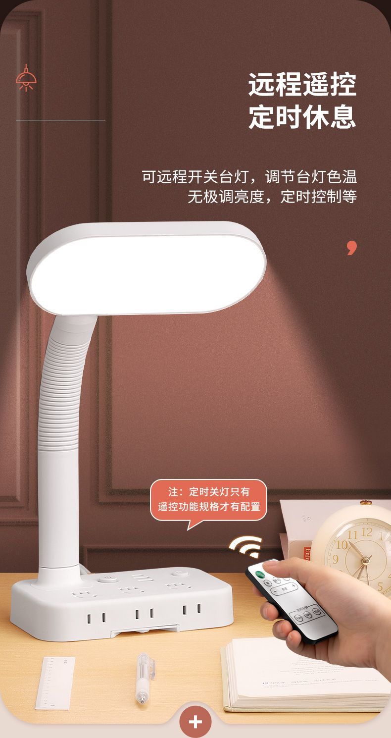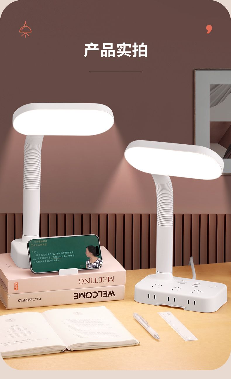 护眼大学生学习LED阅读台灯家用插排卧室床头灯USB插座宿舍客厅灯