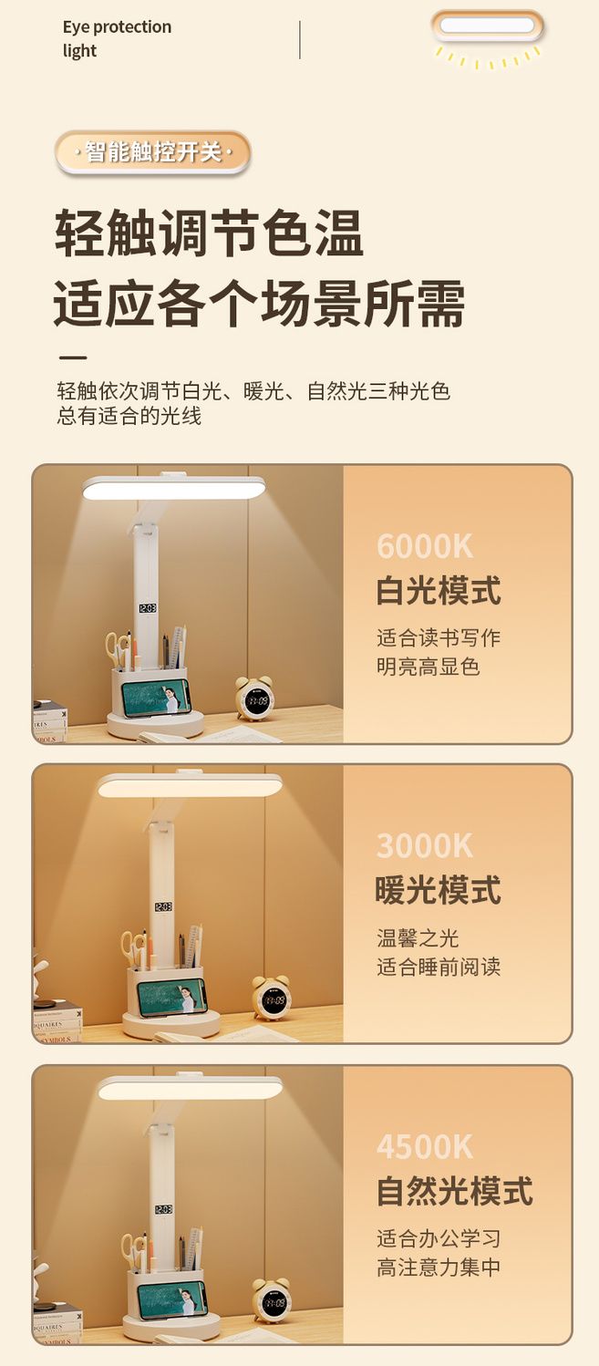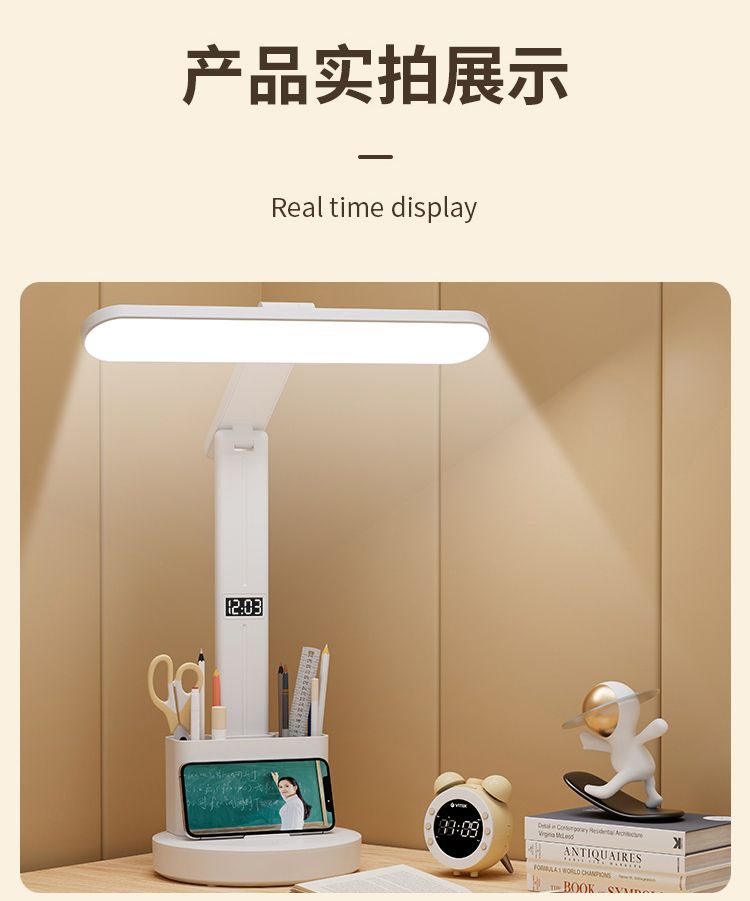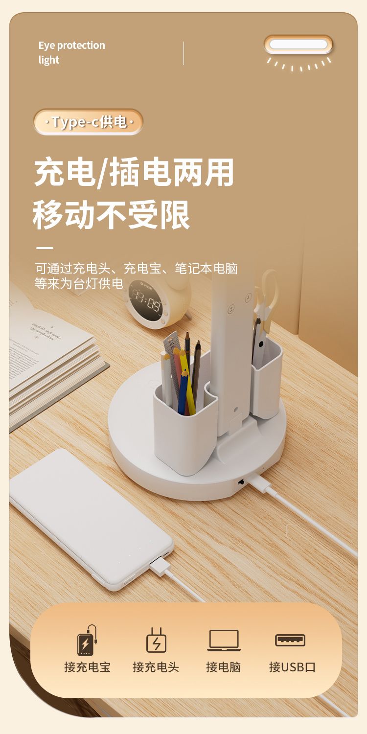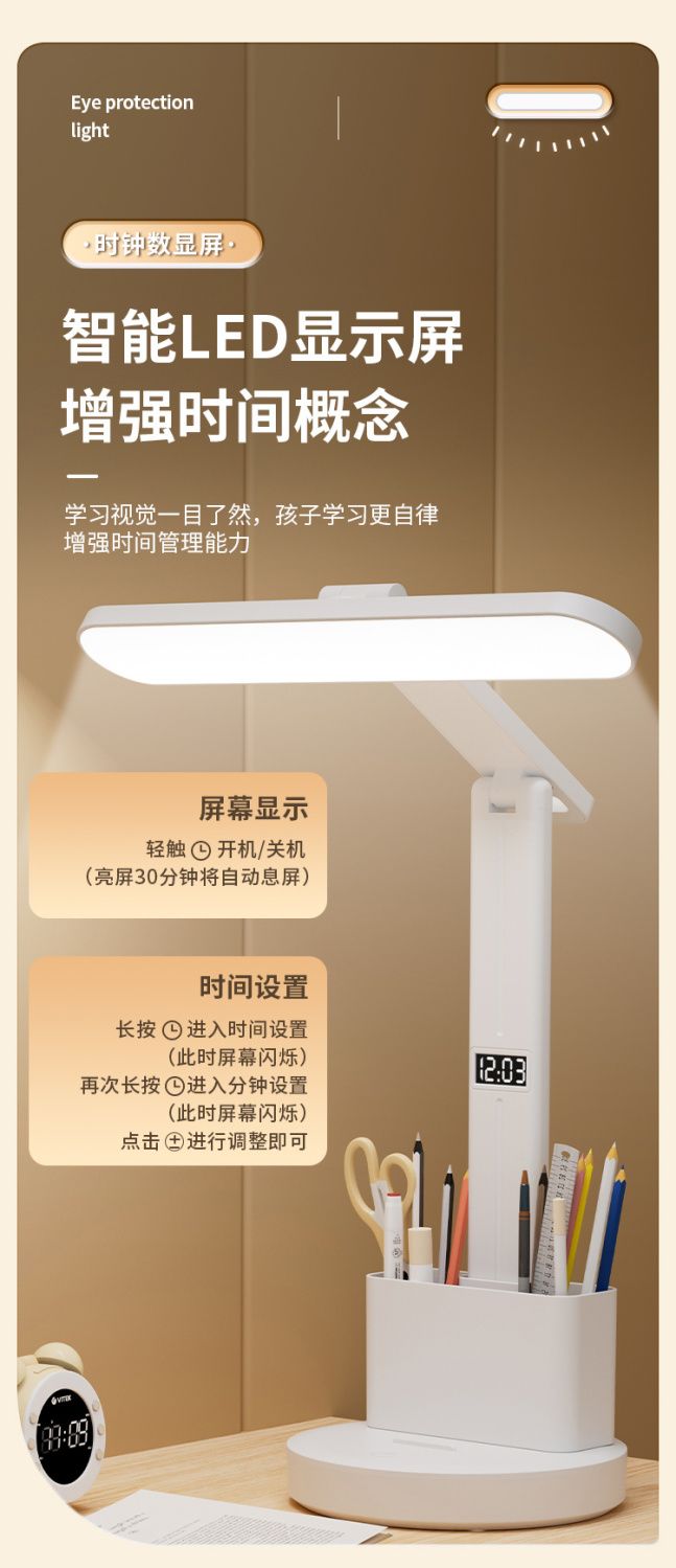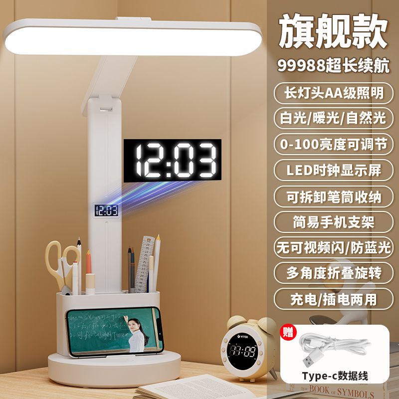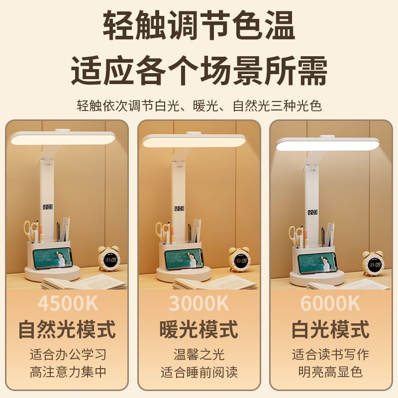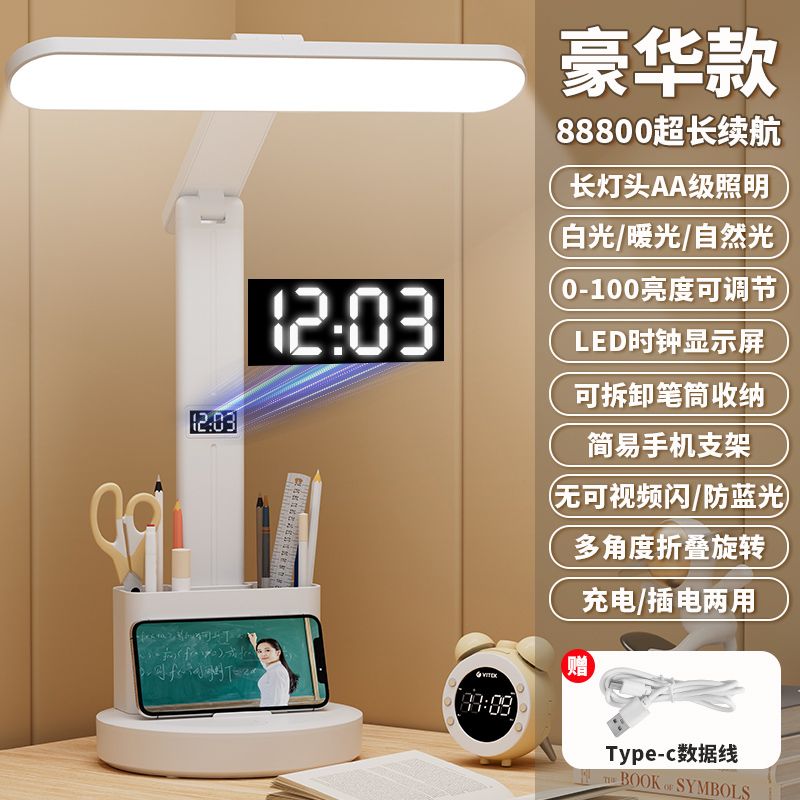 超劲典智能时钟台灯LED大学生宿舍阅读灯充电儿童卧室护眼床头灯