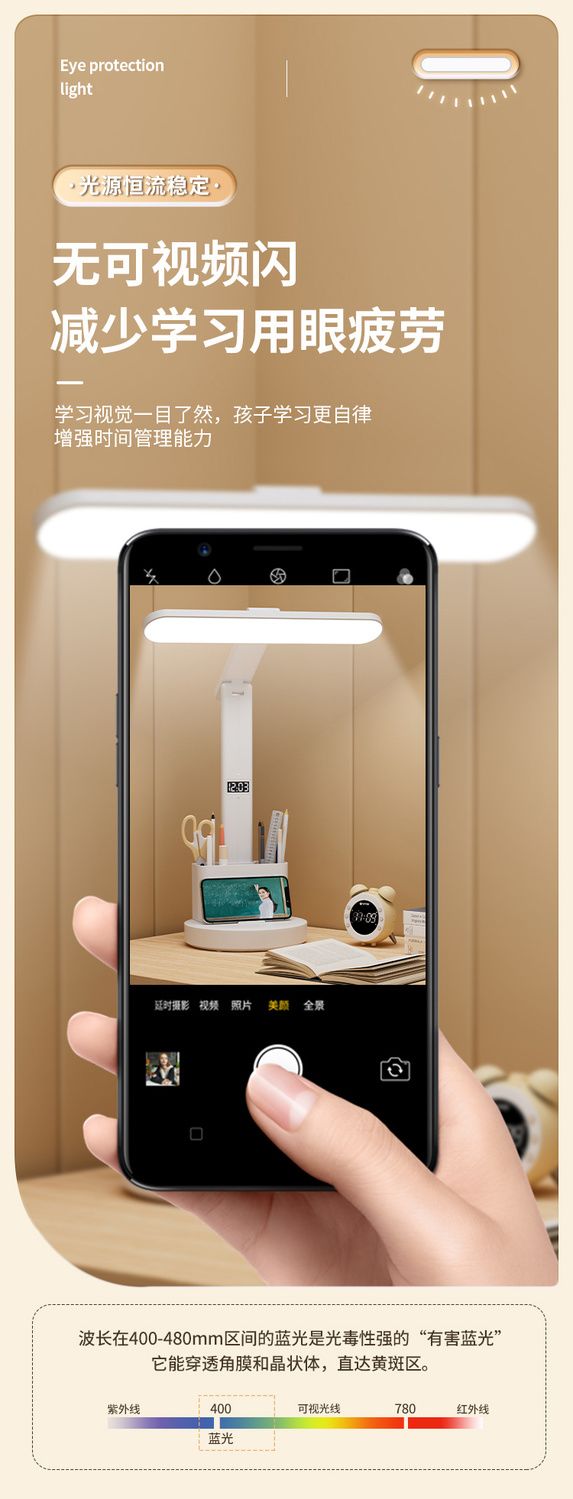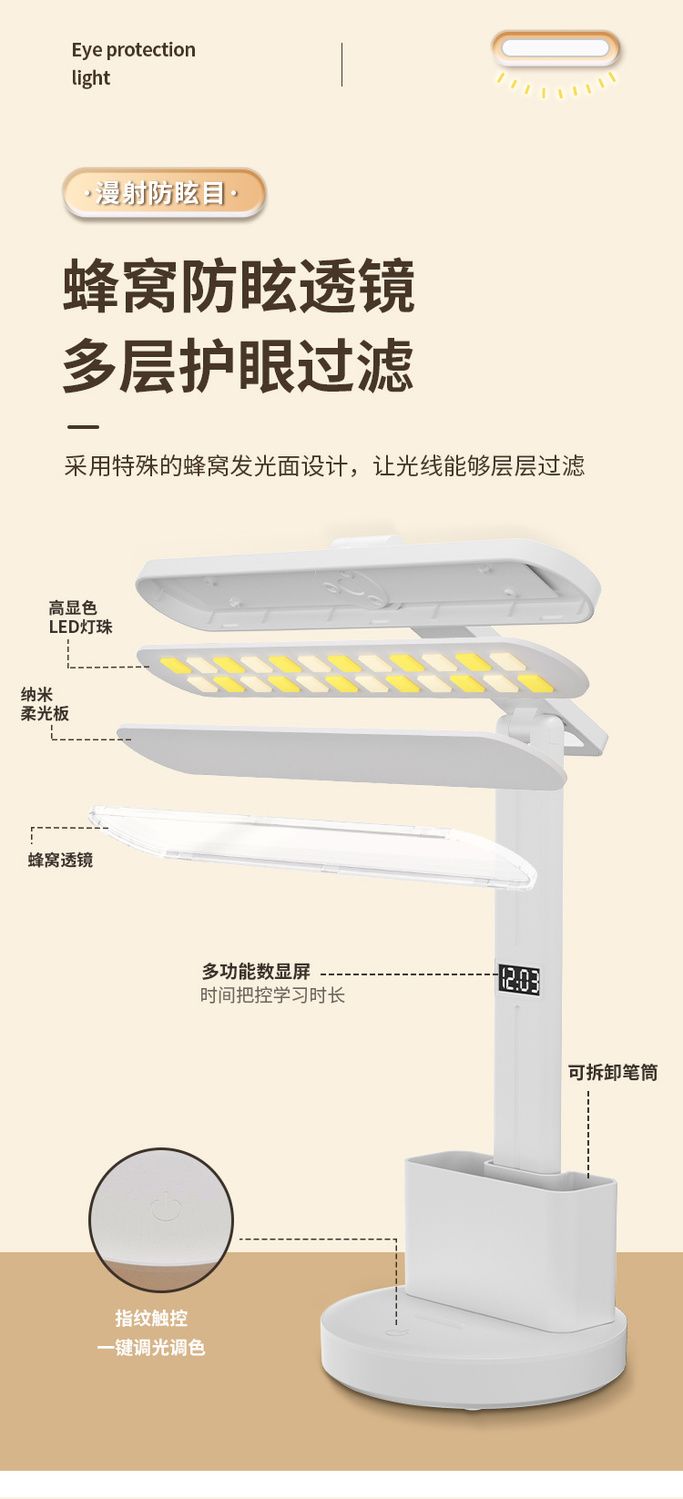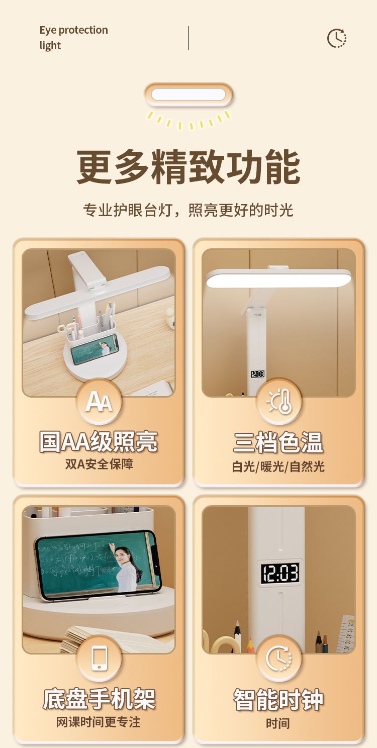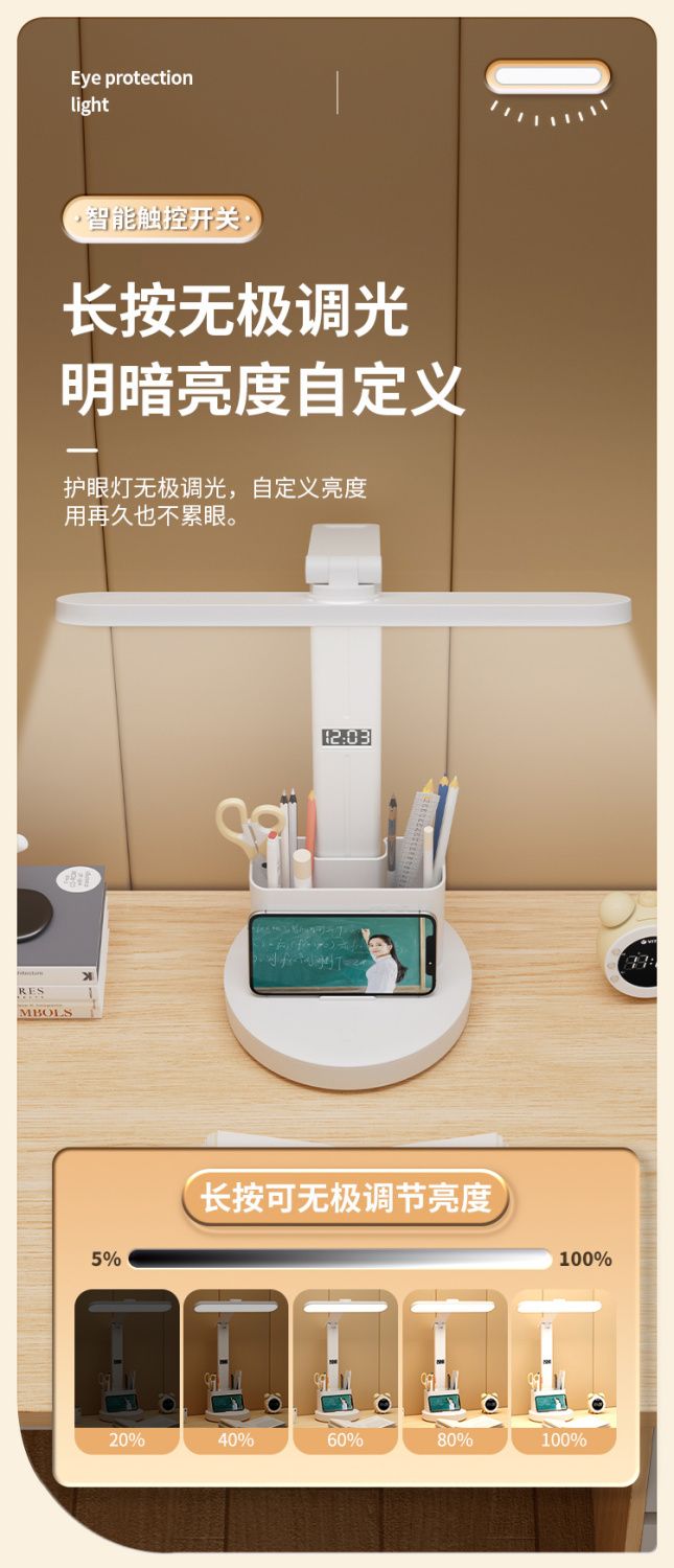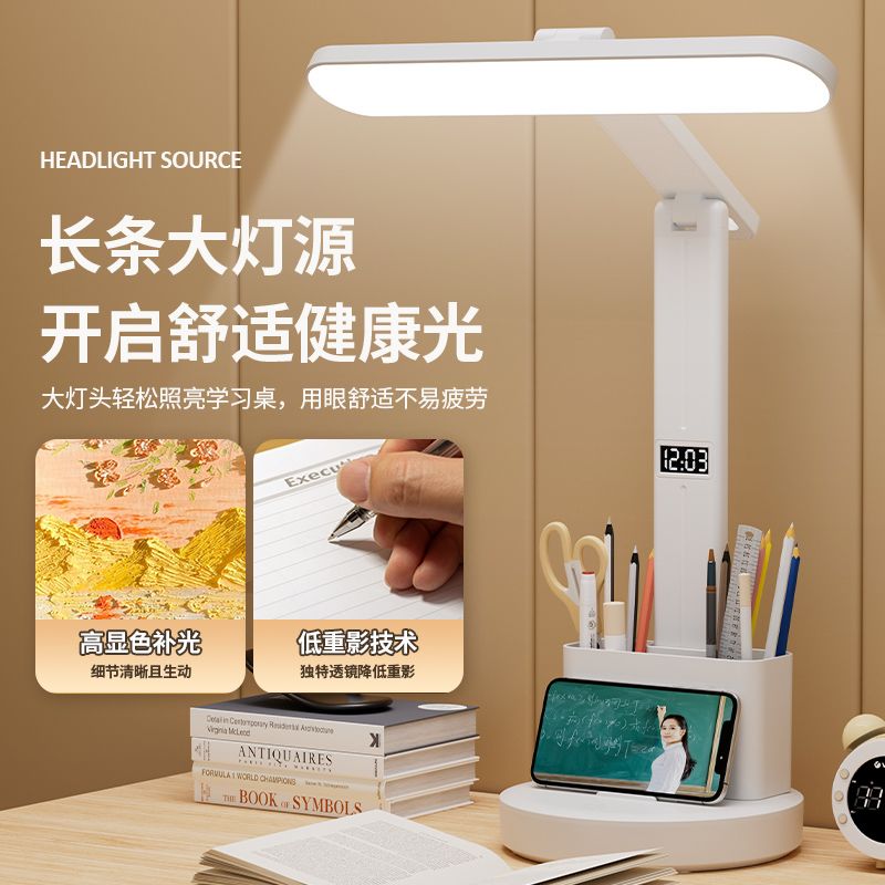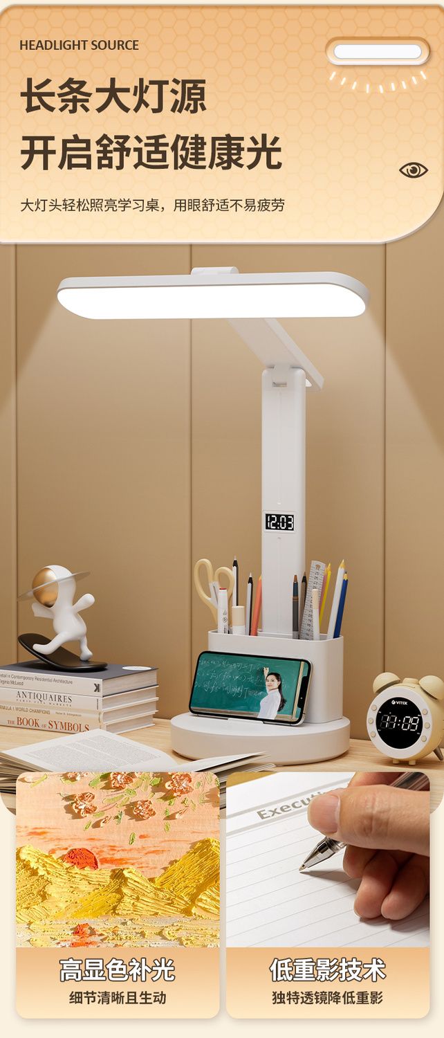 超劲典智能时钟台灯LED大学生宿舍阅读灯充电儿童卧室护眼床头灯