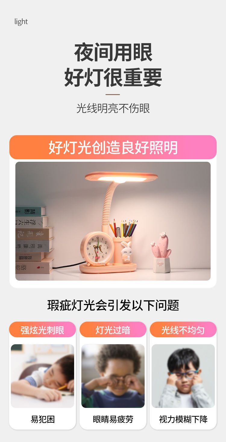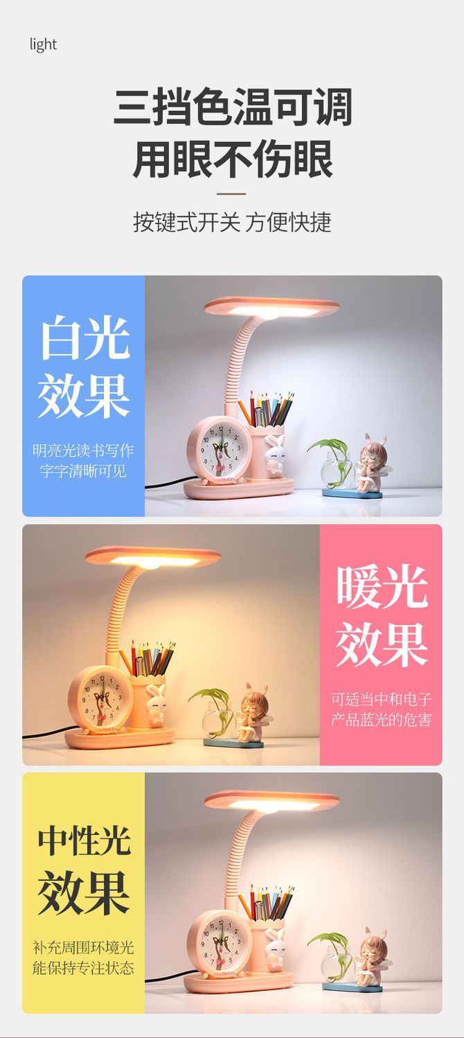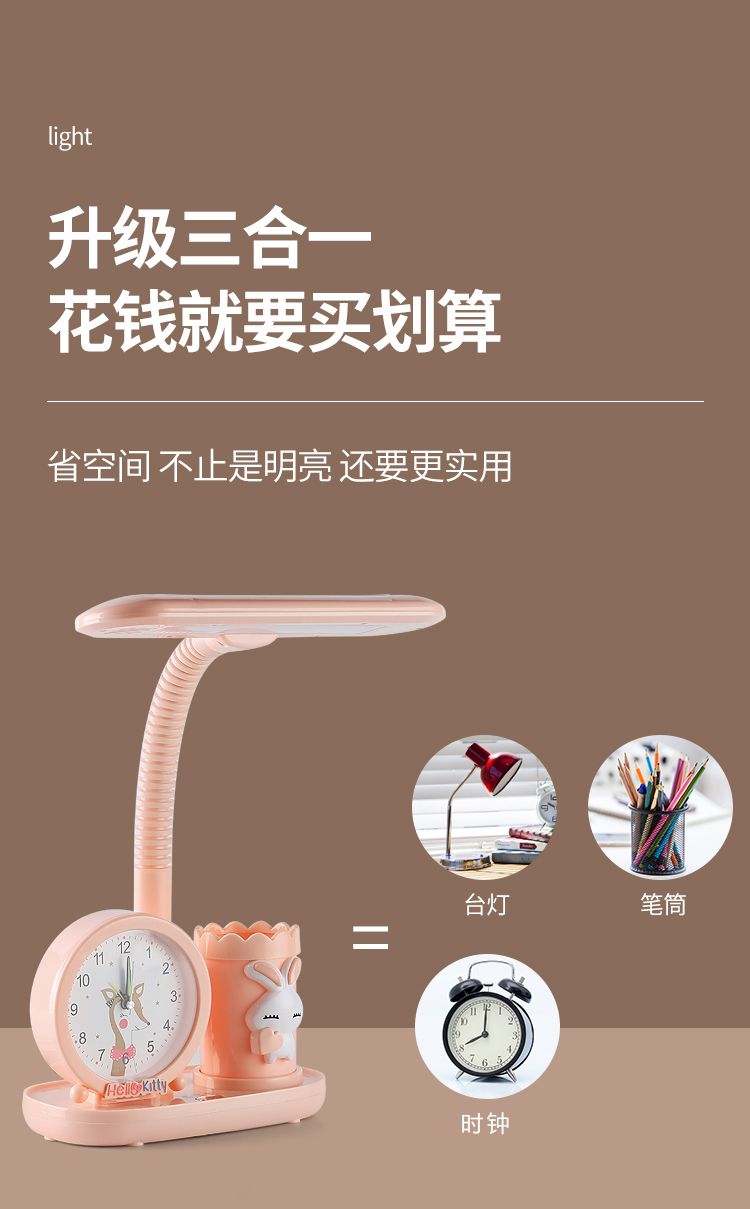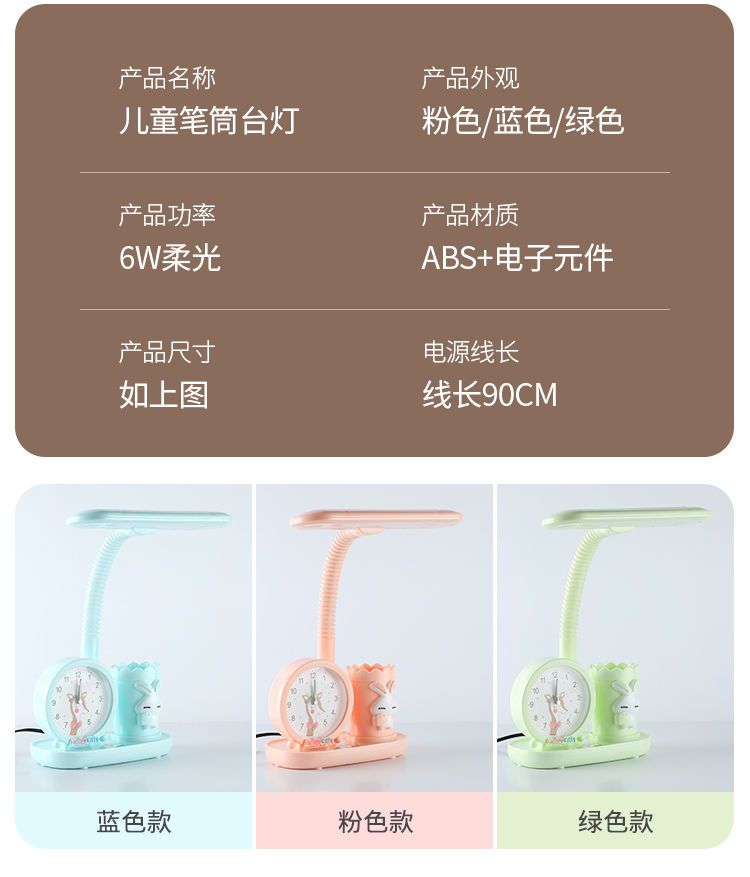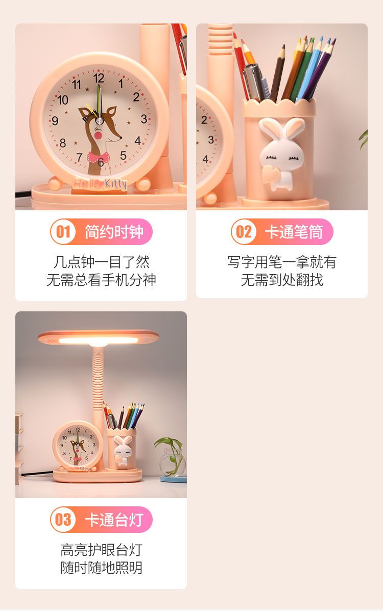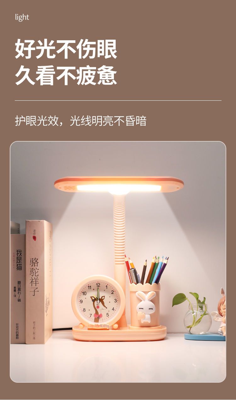 LED护眼学习台灯小学生写字灯卧室可爱时钟卡通台灯宿舍儿童台灯