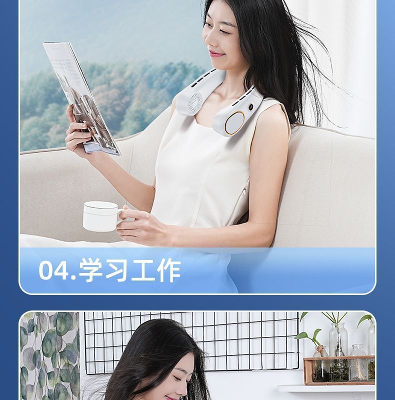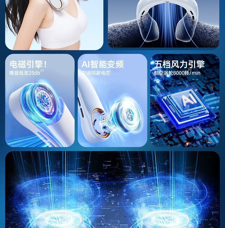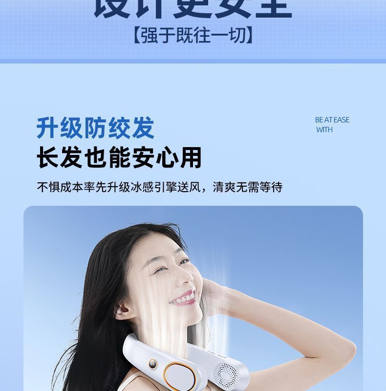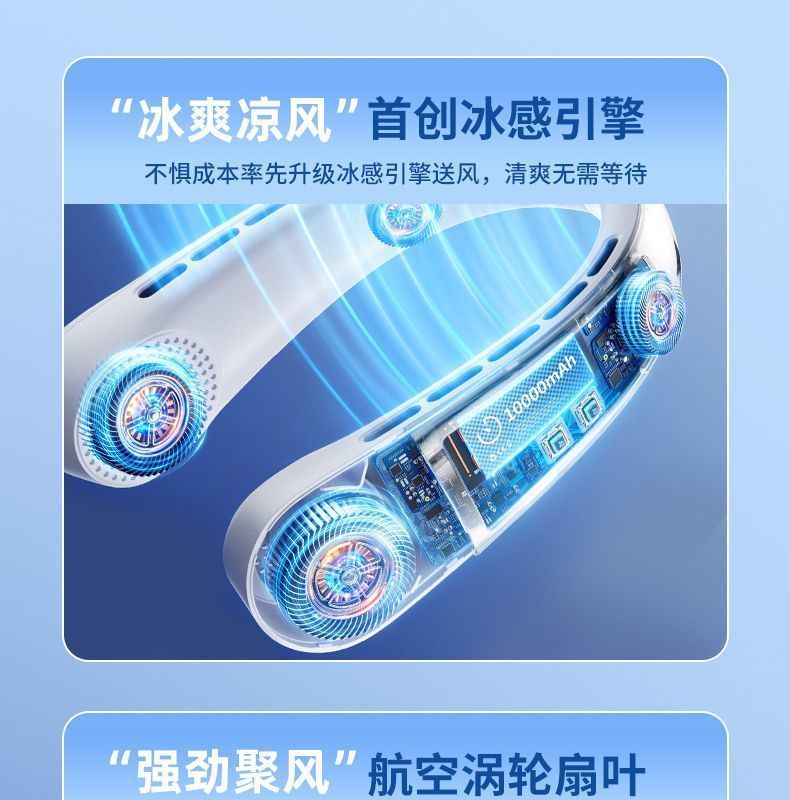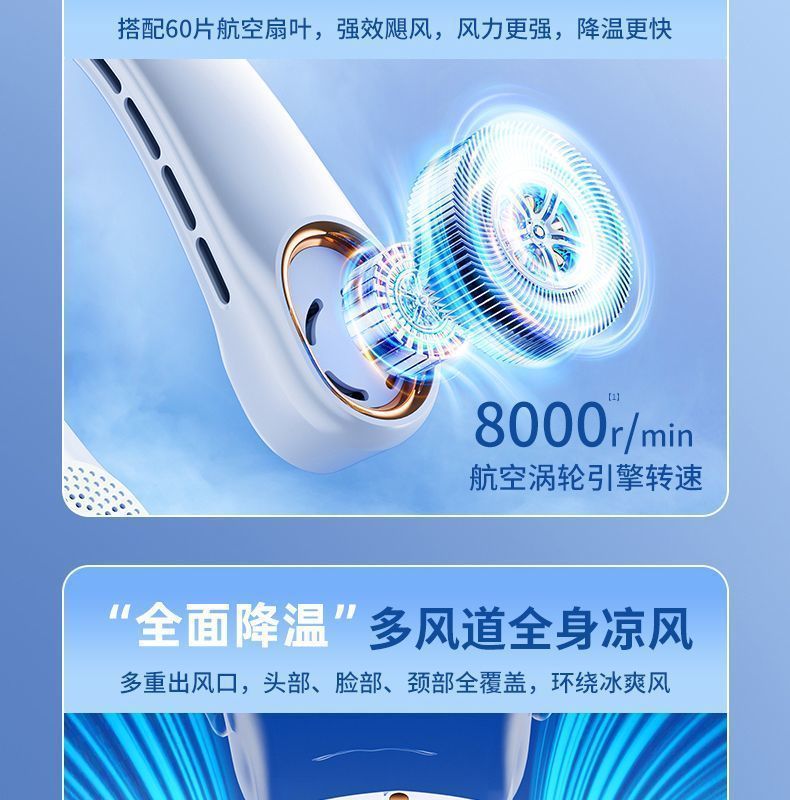 挂脖风扇高颜值懒人挂脖式制冷风扇无叶静音usb充电学生随身携带
