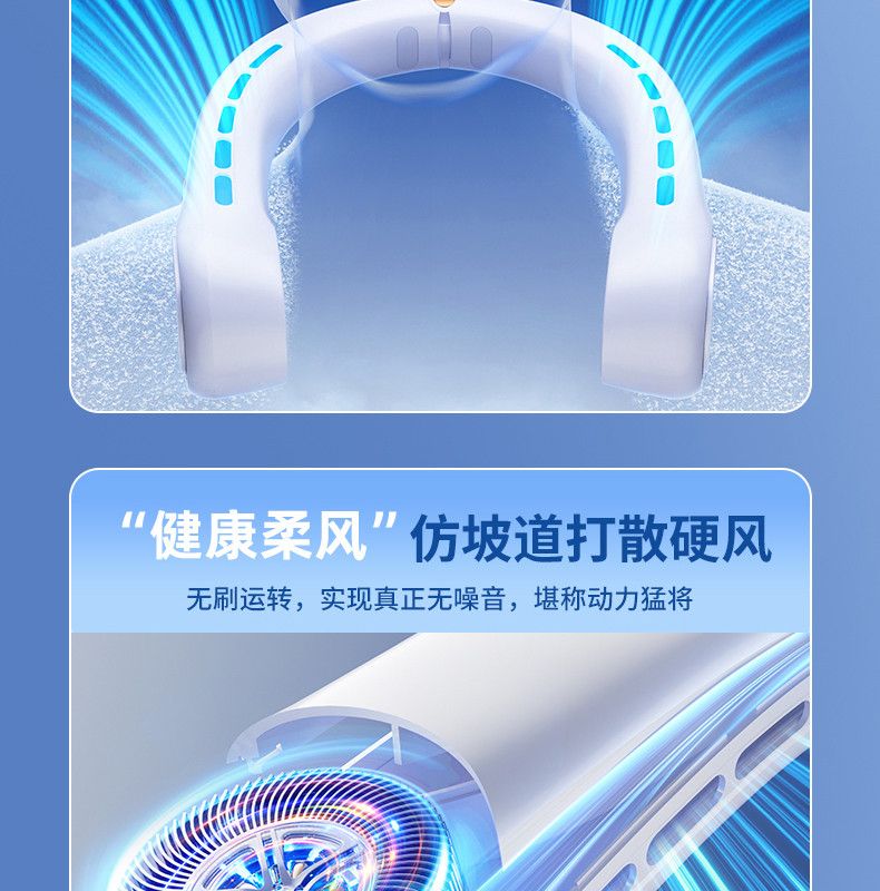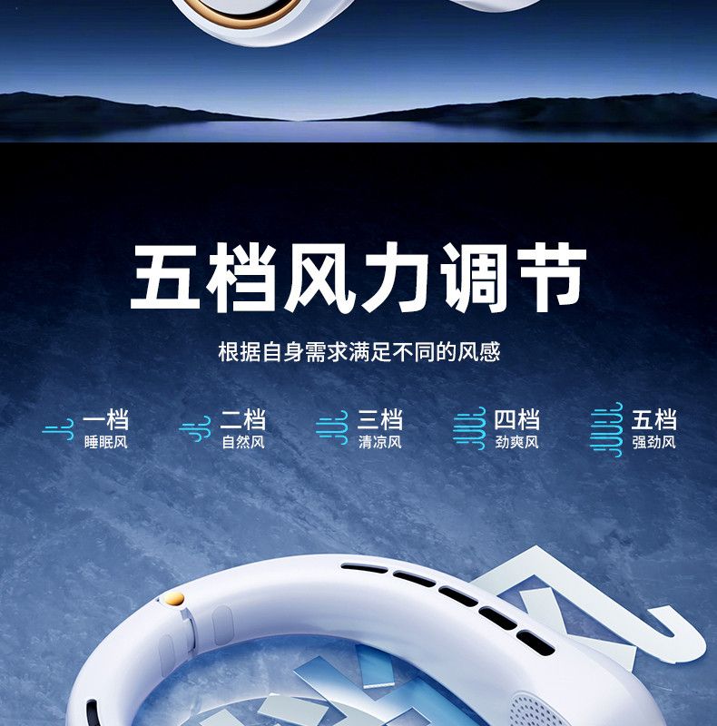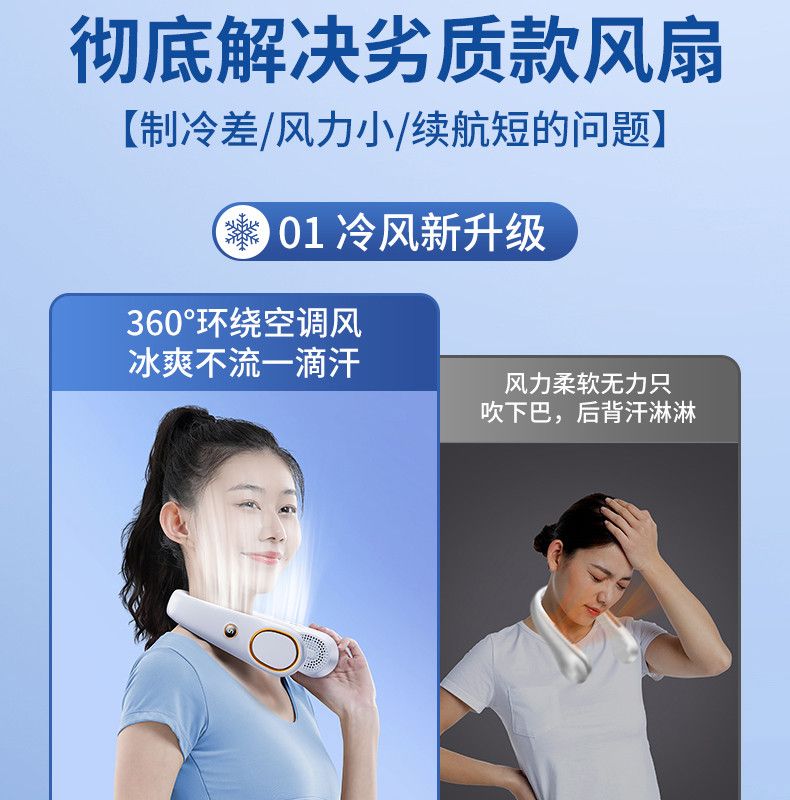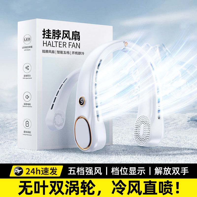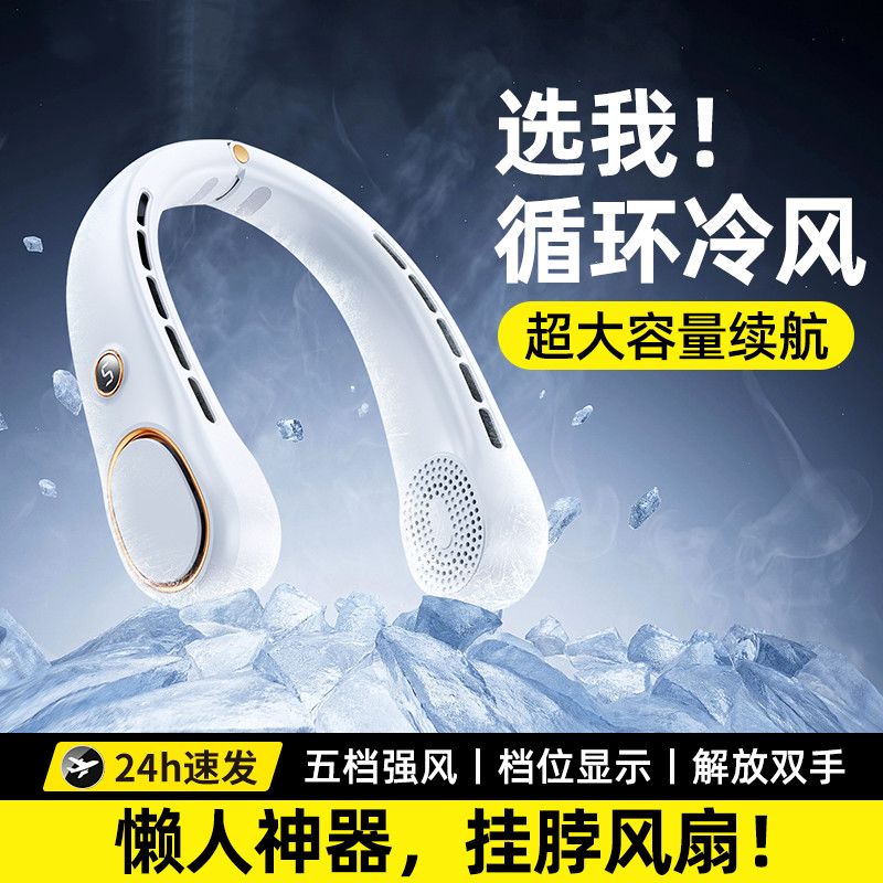 新款无叶挂脖式风扇懒人户外便携迷你USB充电式超静音大风力学生
