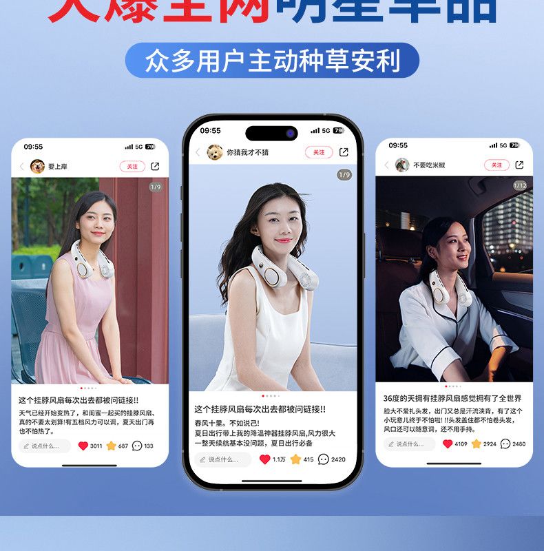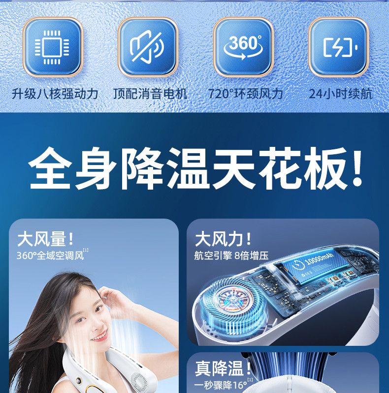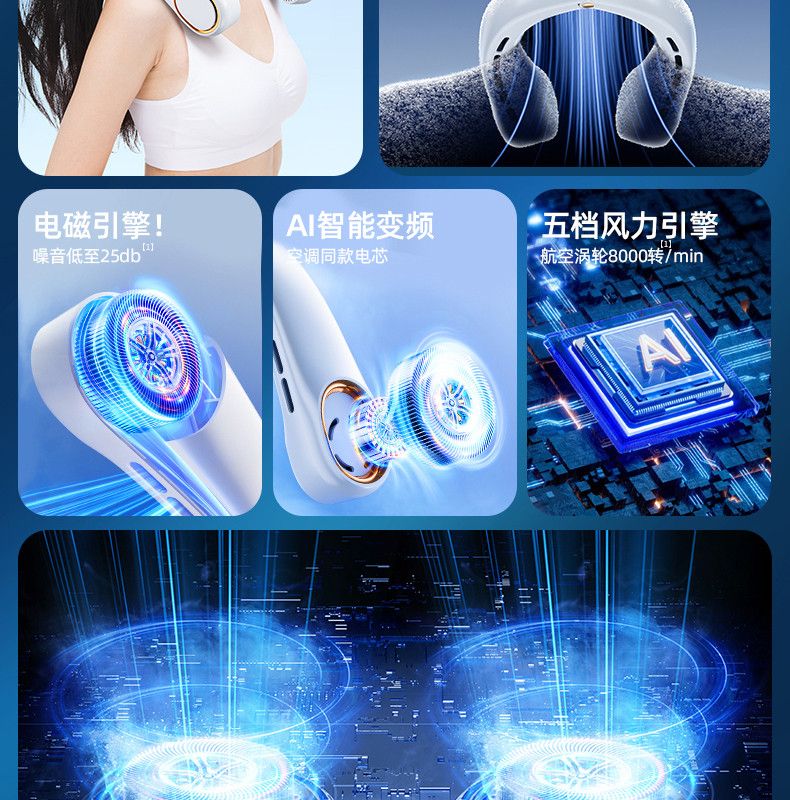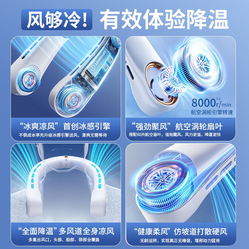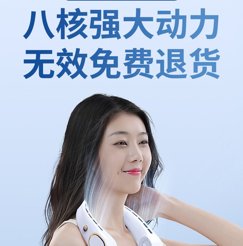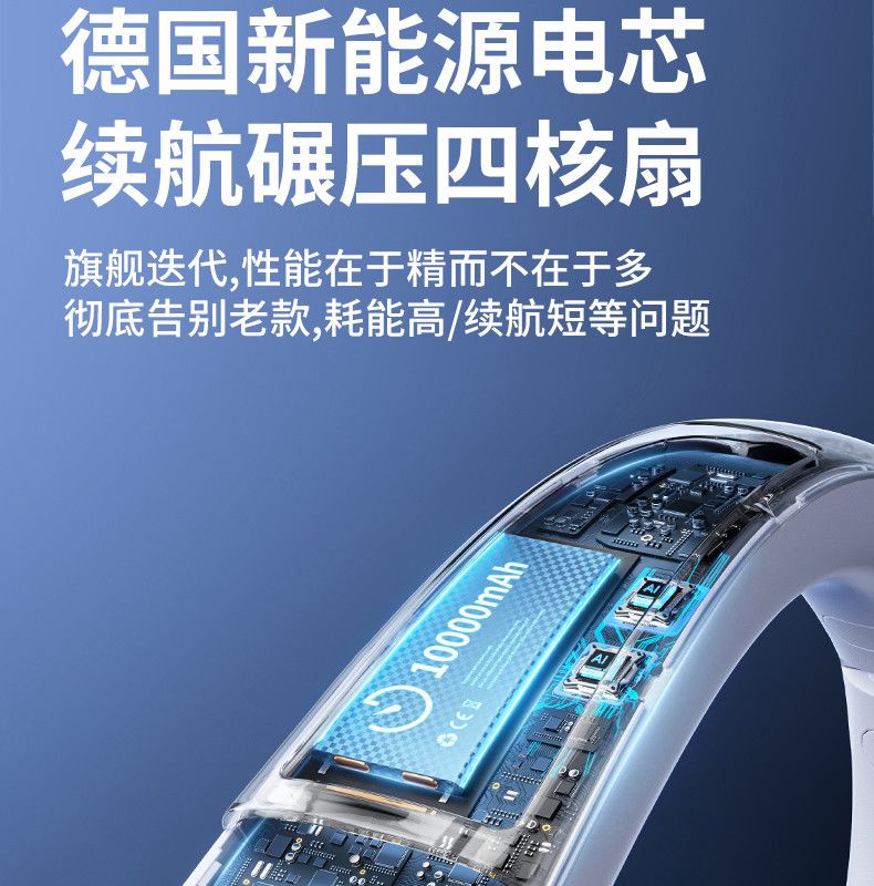 新款无叶挂脖式风扇懒人户外便携迷你USB充电式超静音大风力学生