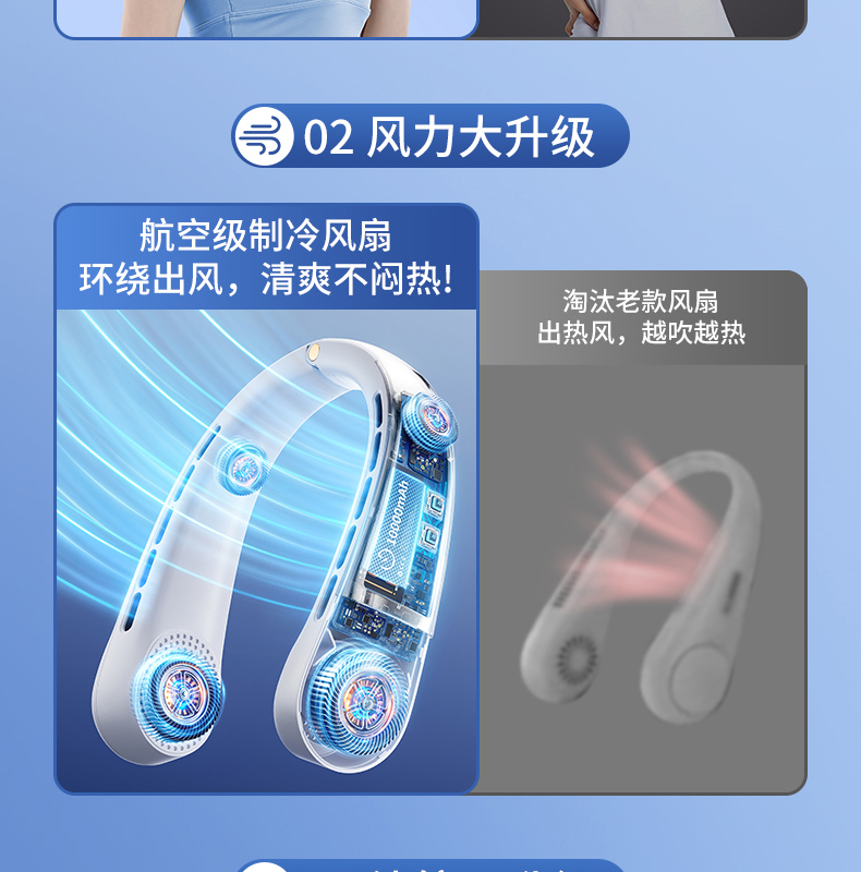 2025新款挂脖式小风扇可充电学生上课懒人随身携带挂颈上降温神器