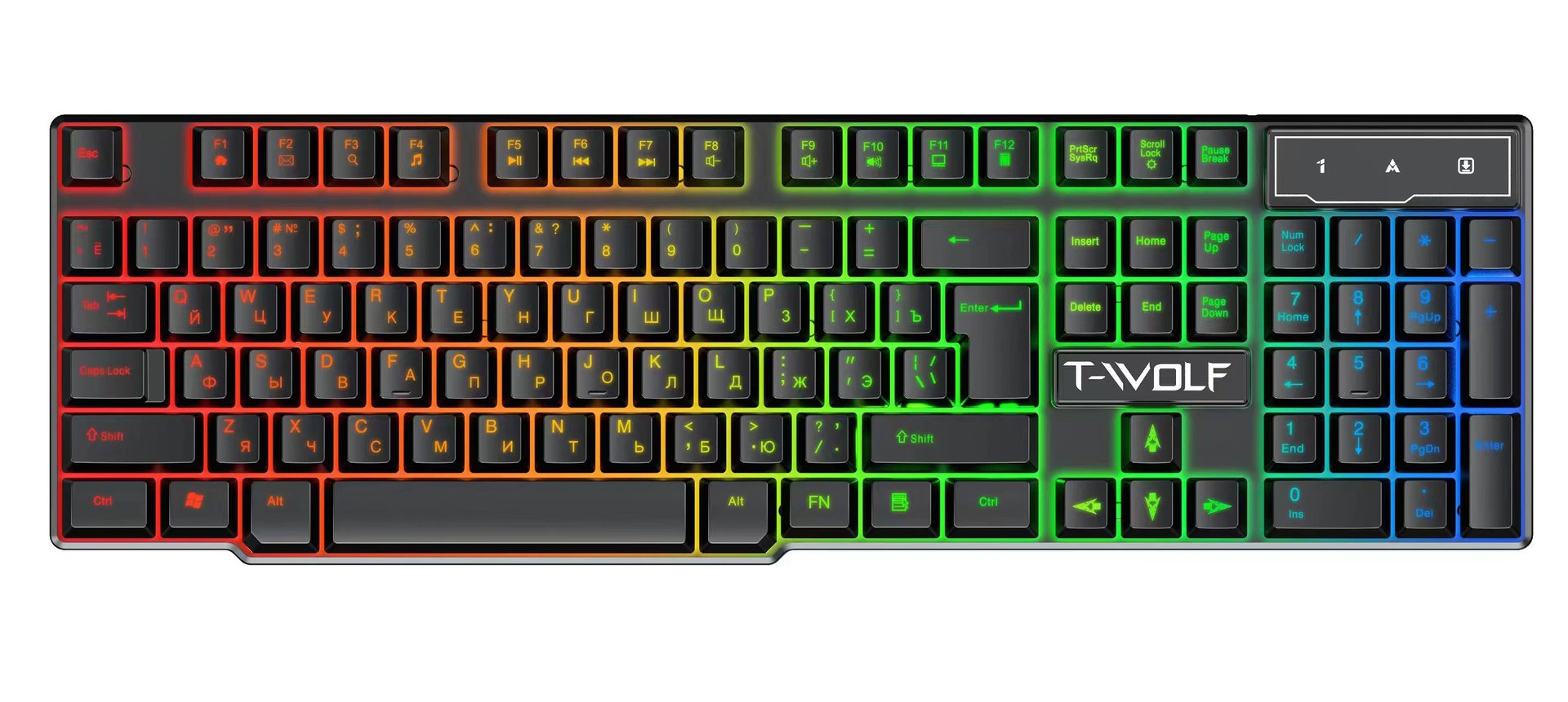 T-WOLF雷狼T20游戏键盘发光电竞有线USB机械手感阿拉伯西班牙俄文