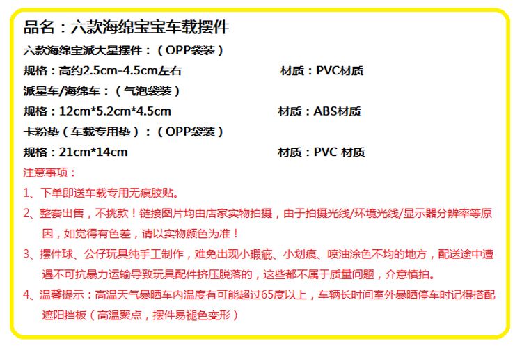 | 6 haibao combination + colorful incense ball + sponge car + card powder pad(6海宝组合+彩香球+海绵车+卡粉垫) | USD $6.51 | 999999 piece available |