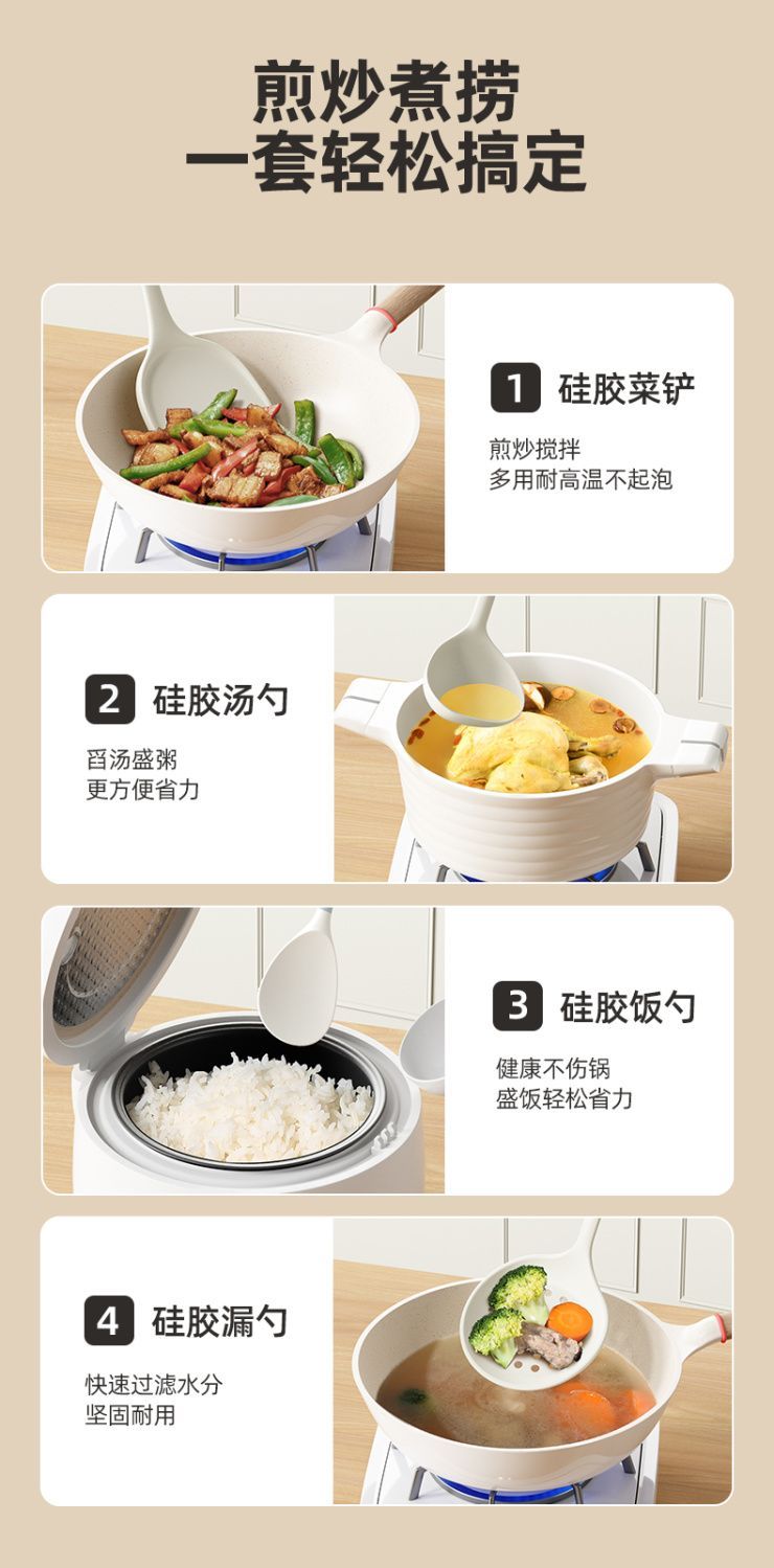 | [four-piece set] spatula + soup spoon + spatula + meal spoon(【四件套】锅铲+汤勺+煎铲+饭勺) | USD $7.04 | 999999 piece available |