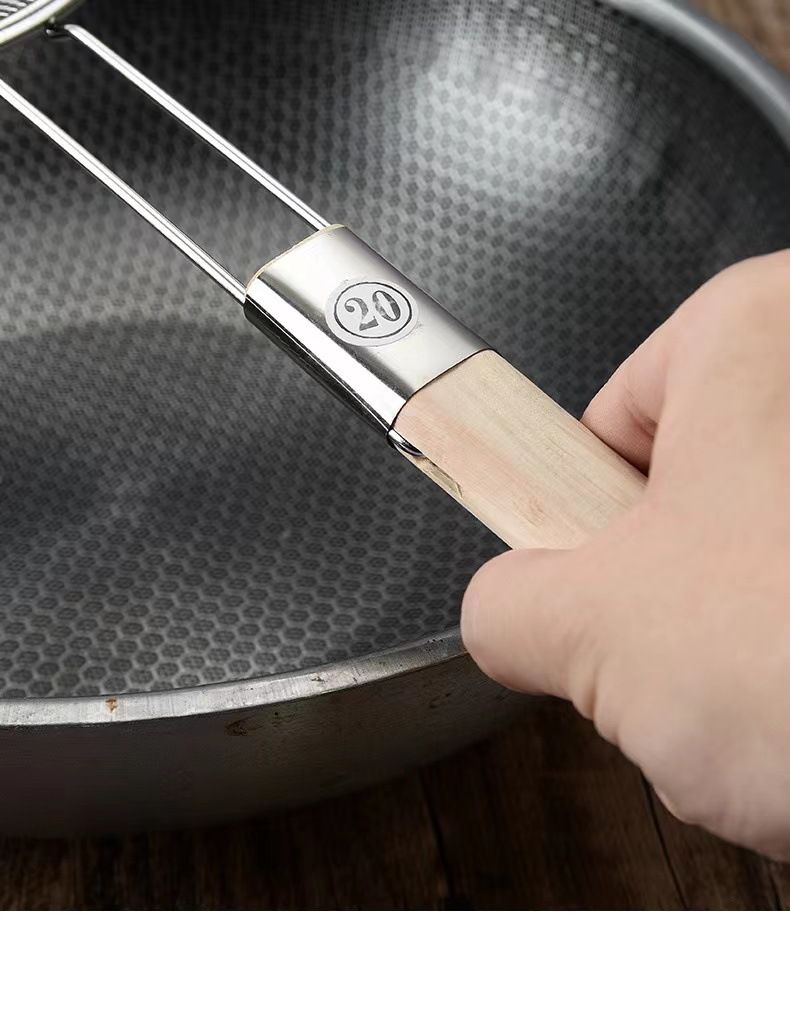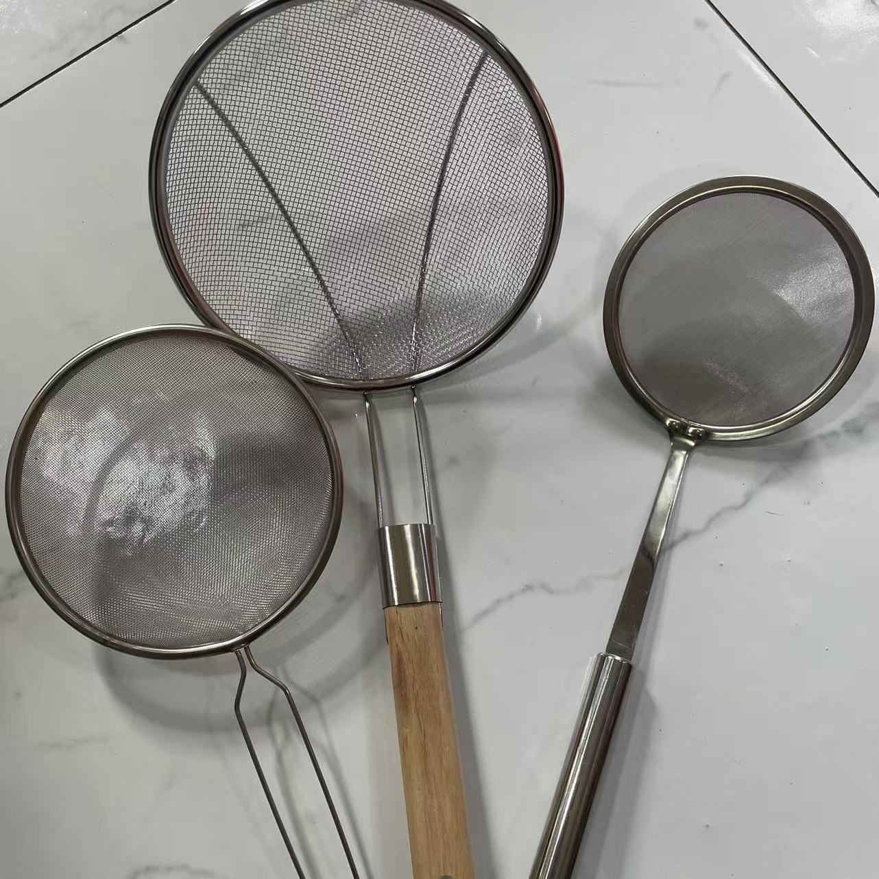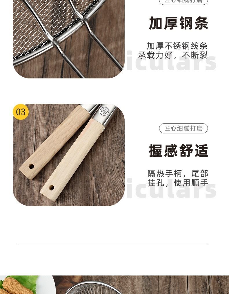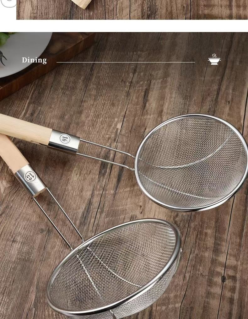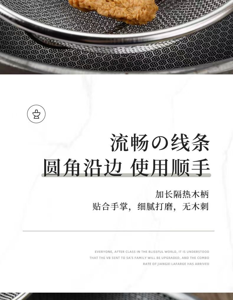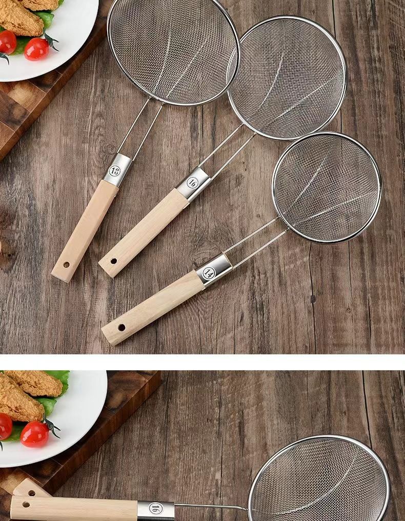 不锈钢漏勺油勺家用 木柄防烫捞篱大号捞面网勺网漏漏勺