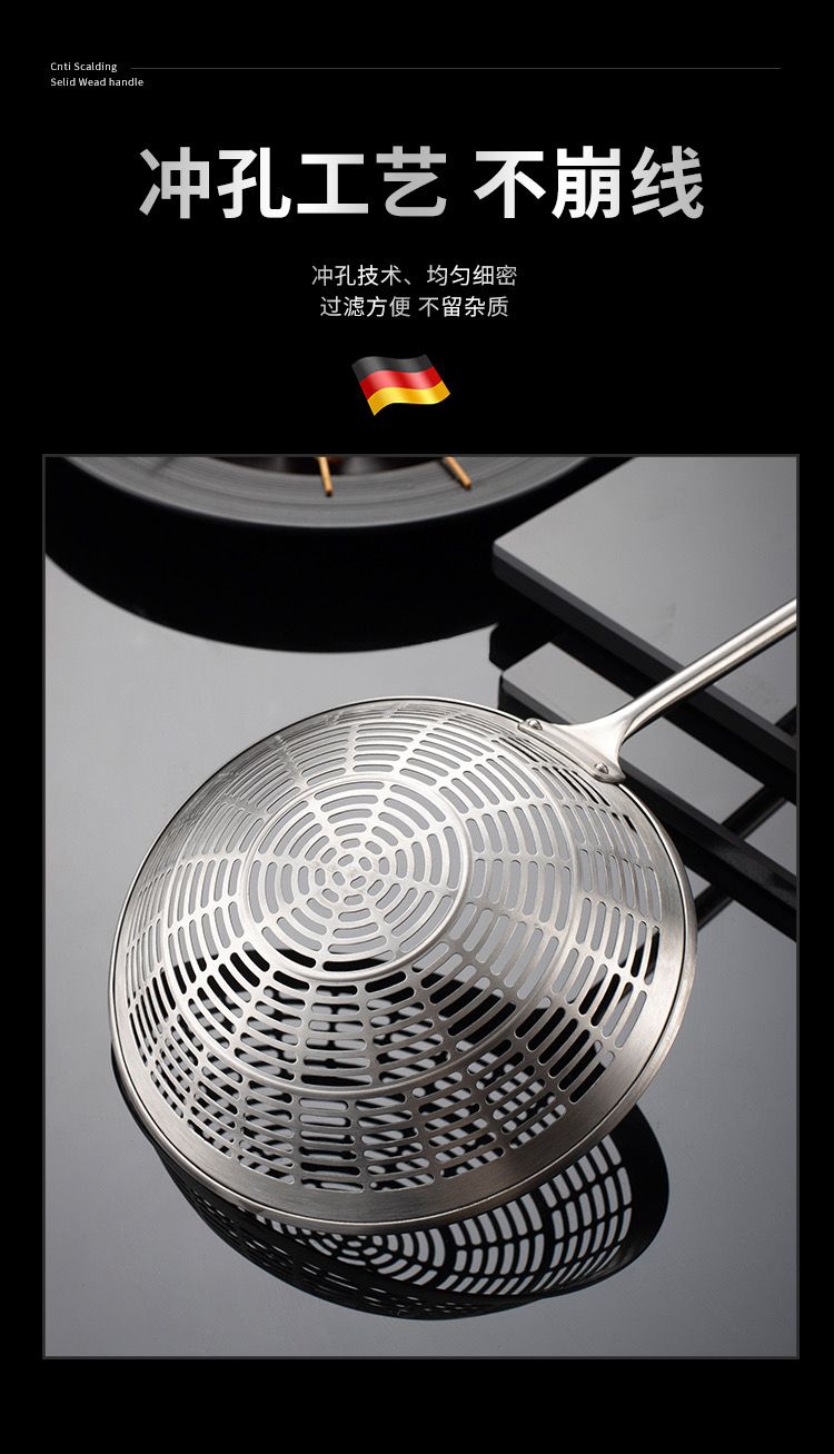 德国304不锈钢大号食品级油炸漏勺家用漏网捞面长柄捞勺沥水笊篱