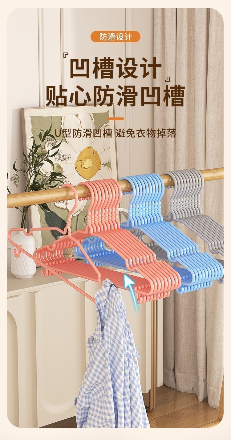 日用北欧衣架子加粗便宜衣撑家用出生婴儿超厚衣挂学生凹槽晾衣架