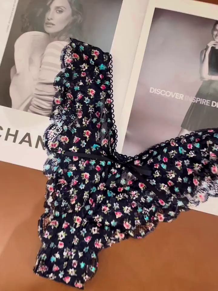 法式丁字裤纯欲性感丁字裤印花情趣碎花薄款波点无痕少女士三角裤